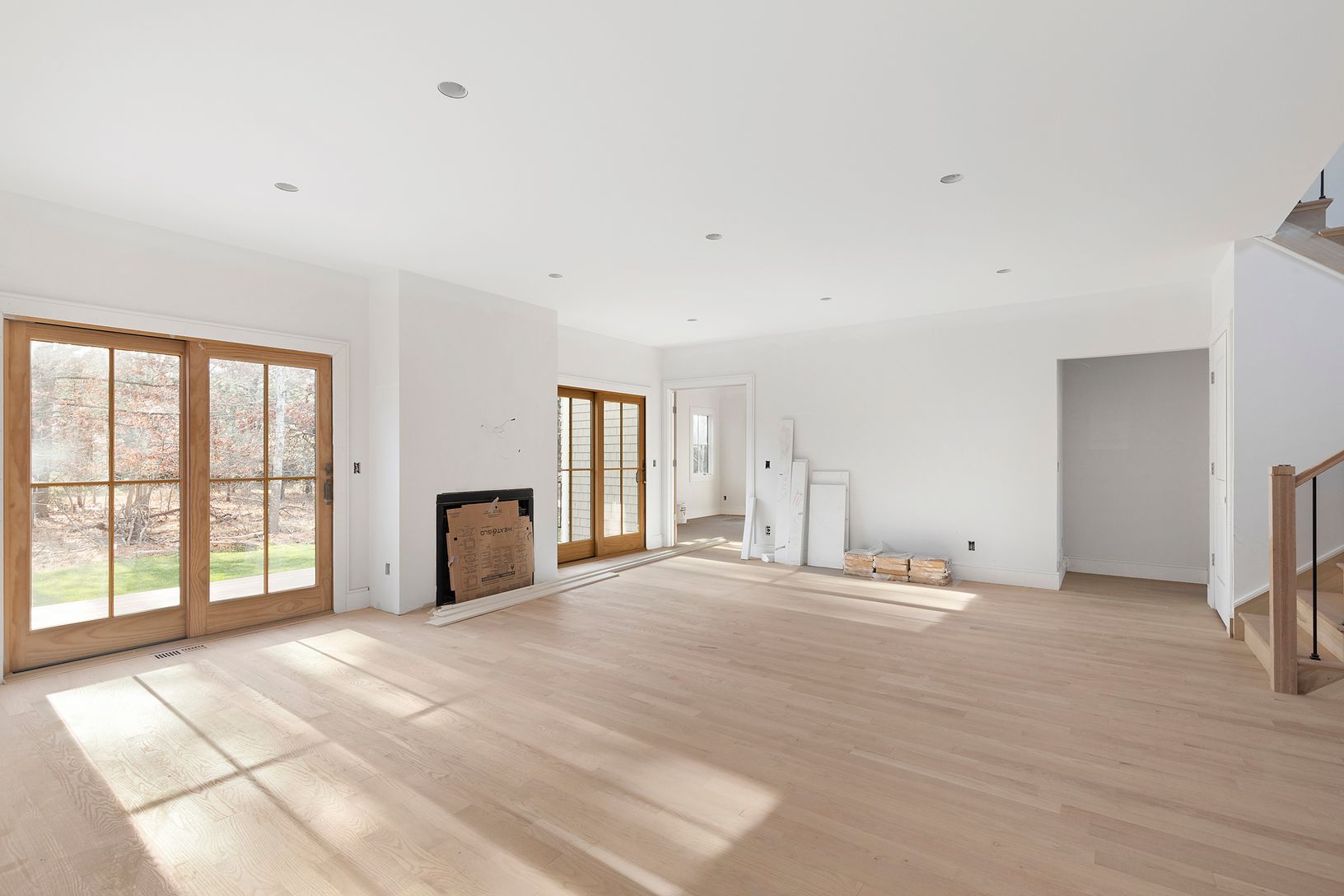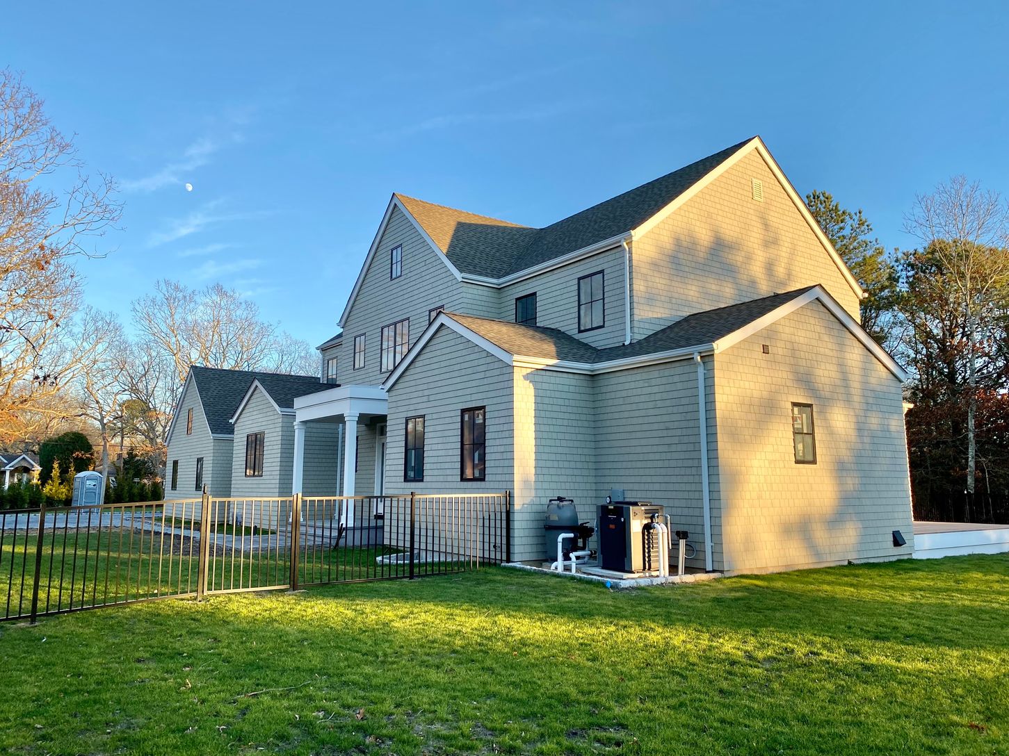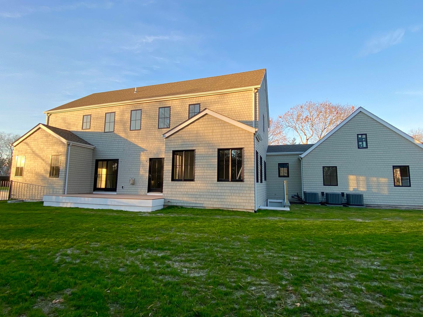 This spectacular 4 BR, 4.5 BA shingle-style home on a quiet street in Quogue offers the ideal mix of traditional and contemporary design. The spacious open floor plan flows easily from an airy foyer into a grand living room, with a central fireplace and sliding glass doors opening out to a cedar deck. Off the main living room is a chef's kitchen, adjoining dining area, and an elegant sunroom. On the other side, a bright library opens out to an