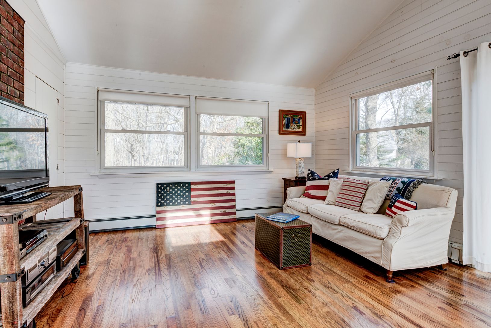 Delightful beach house in Laughing Waters community is nestled on a beautifully landscaped property and ideally situated just a short distance from the private association sandy beach and marina overlooking Moyle Cove, Corey Creek, And Little Peconic Bay making this the perfect North Fork escape. This wonderful home features 3 bedrooms, 2 baths, open floor plan living area with fireplace and sliding doors to paver patio that is the perfect spo