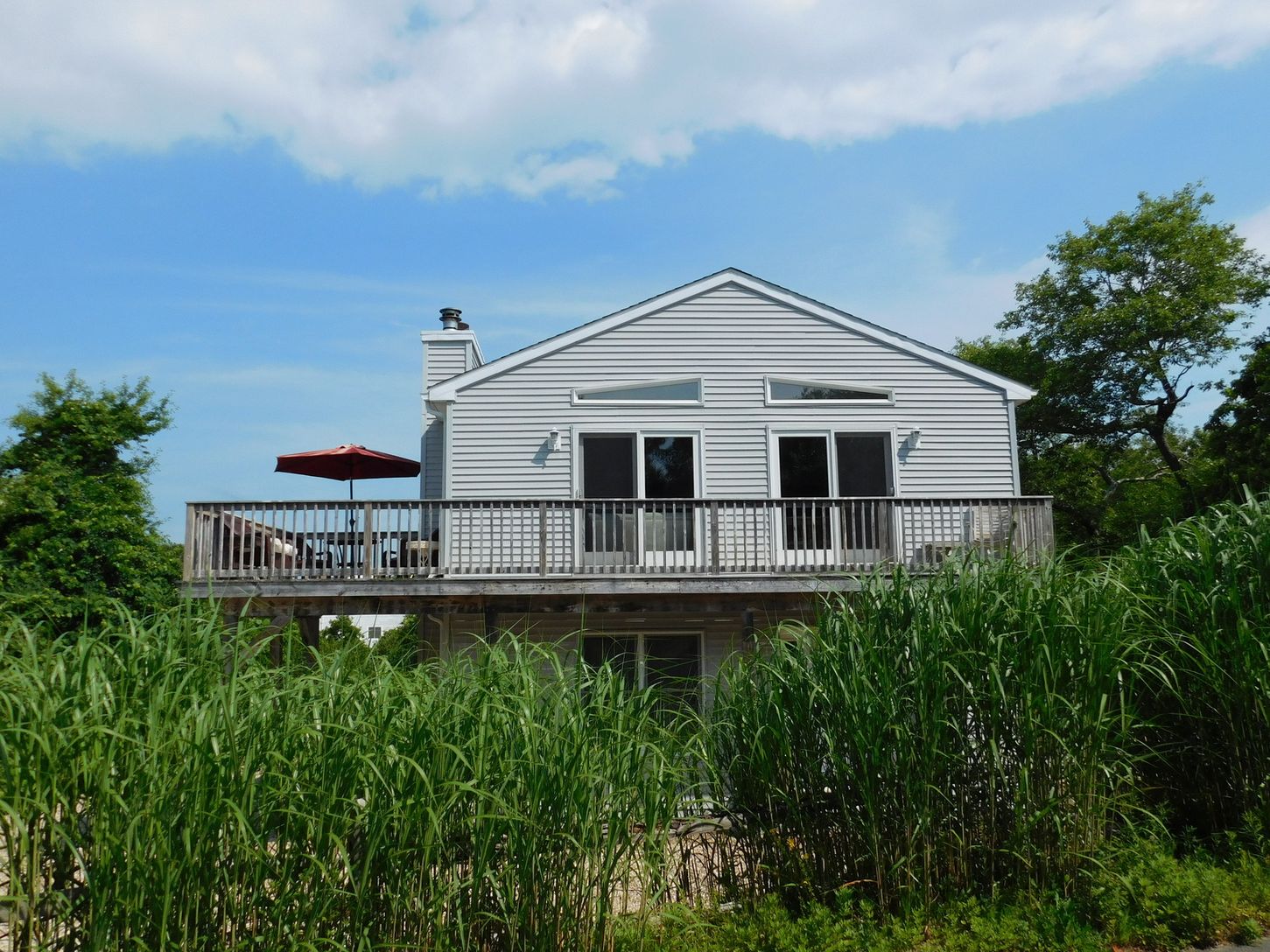 Settle into this immaculate turnkey home with plenty of privacy located close to all that Montauk has to offer! This 4 bedroom, 2 bath high quality custom modular home with an upside down layout was built in 2006 by Future Home Technology with maintenance free vinyl siding. The main entrance leads you into a warm welcoming foyer. Three of the four bedrooms and an oversized bath with a jacuzzi tub sit comfortably on the main level of this home.