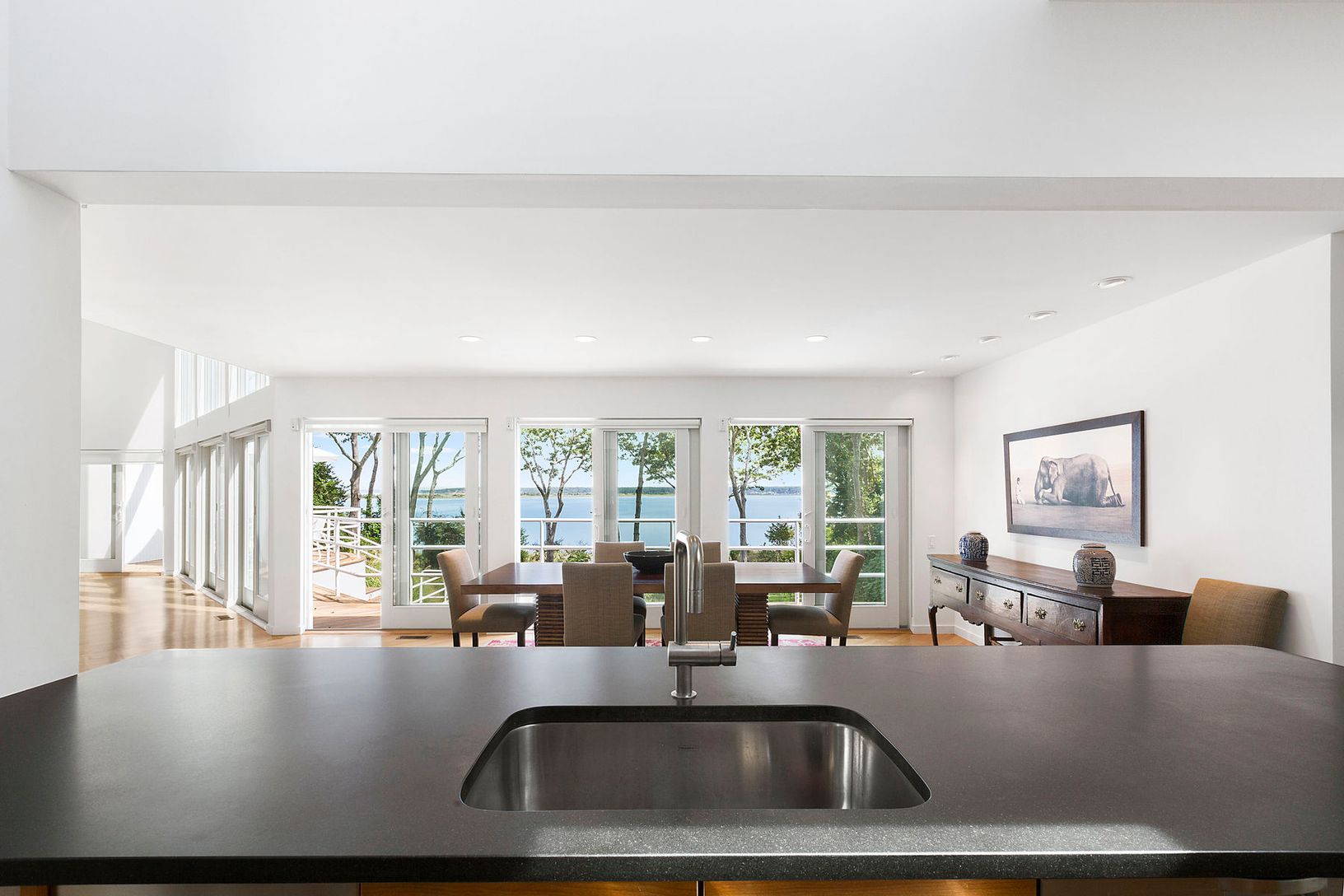 This bright contemporary home has undergone a complete modern renovation using clean lines, modern furnishings, open spaces to enhance the dramatic interior. The 3,000 sq. ft. of living space is designed to embrace the dynamic harbor views, visible from virtually every room of the house. With five bedrooms including a spacious master suite with spa-like bath, a stylish modern kitchen and solar heated pool, the home offers every convenience to