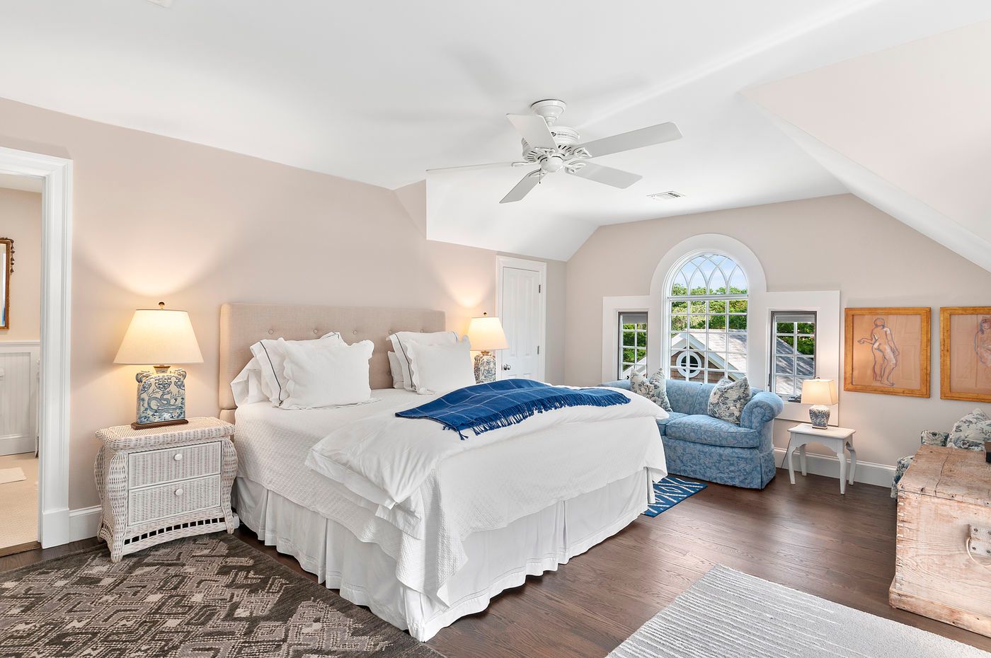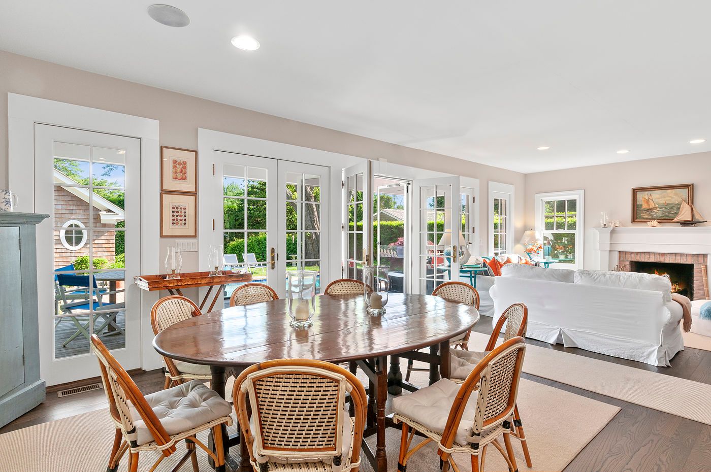 Recently renovated and spacious two-story traditional features a great room with fireplace, dining area, eat-in kitchen, den, four bedrooms (including master suite), four baths. Additional offerings include a second fireplace, central air conditioning, cable television, covered porch, garage, outdoor shower, brick terrace and a Gunite swimming pool.