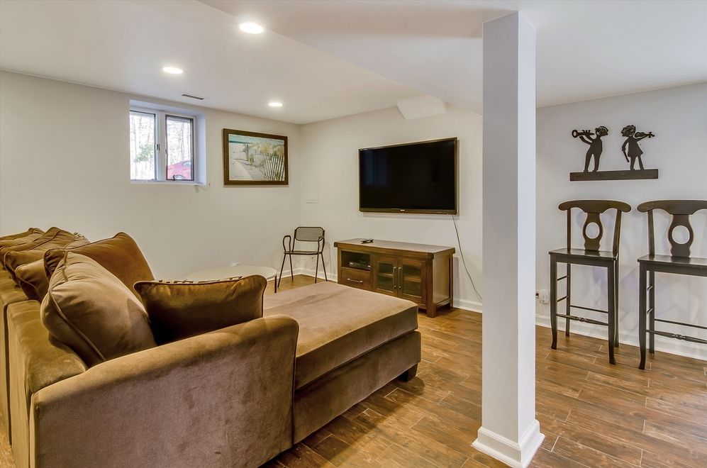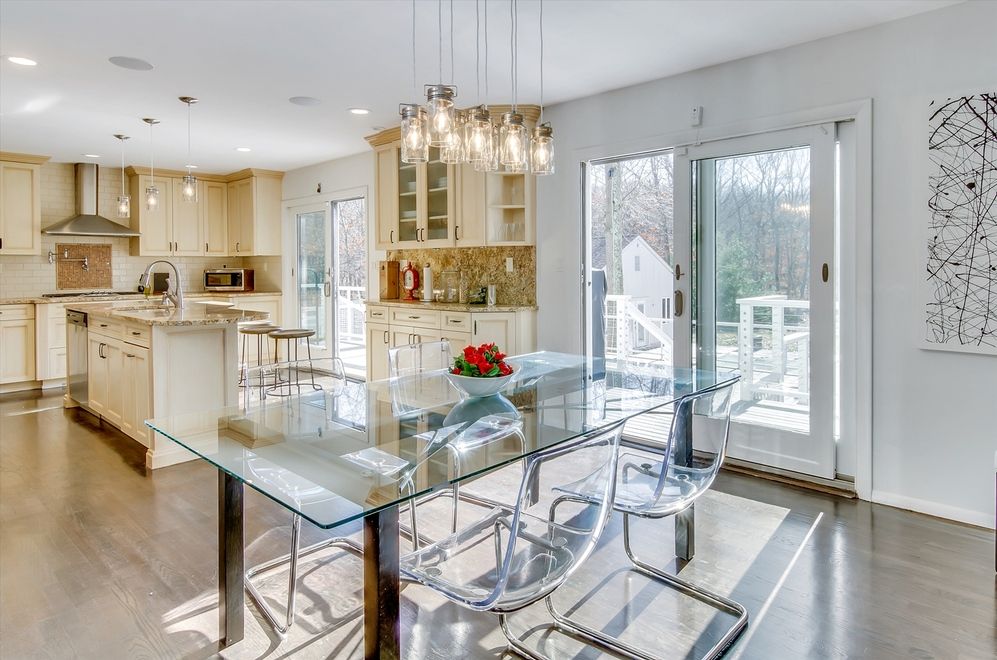 Stunning modern renovation just reduced for best sale. Dramatic cathedral ceiling living room with sky lights and fireplace. 4 Bedrooms, 3 new full baths. Semi open kitchen with every convenience. Walk-out basement with bar, family room and gym. Terraced south facing back yard with pool, hot-tub spa and large pool house. Expansion options. Easy access to sandy bay beaches. Convenient to Southampton and Sag Harbor villages.