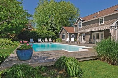 Bike to the ocean or stroll to the village from this pristine Bridgehampton South home. The four-bedroom, three-and-a-half bath residence is on just over a half acre, and it borders a seven acre reserve for ultimate privacy. The house has an open floor plan, generously sized first floor master suite, and three guest bedrooms, plus renovated eat-in kitchen, great room, formal living room, two fireplaces, home office, full basement suitable for