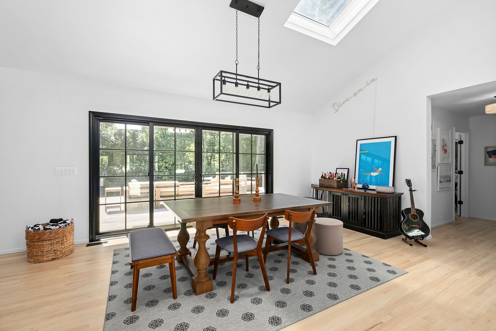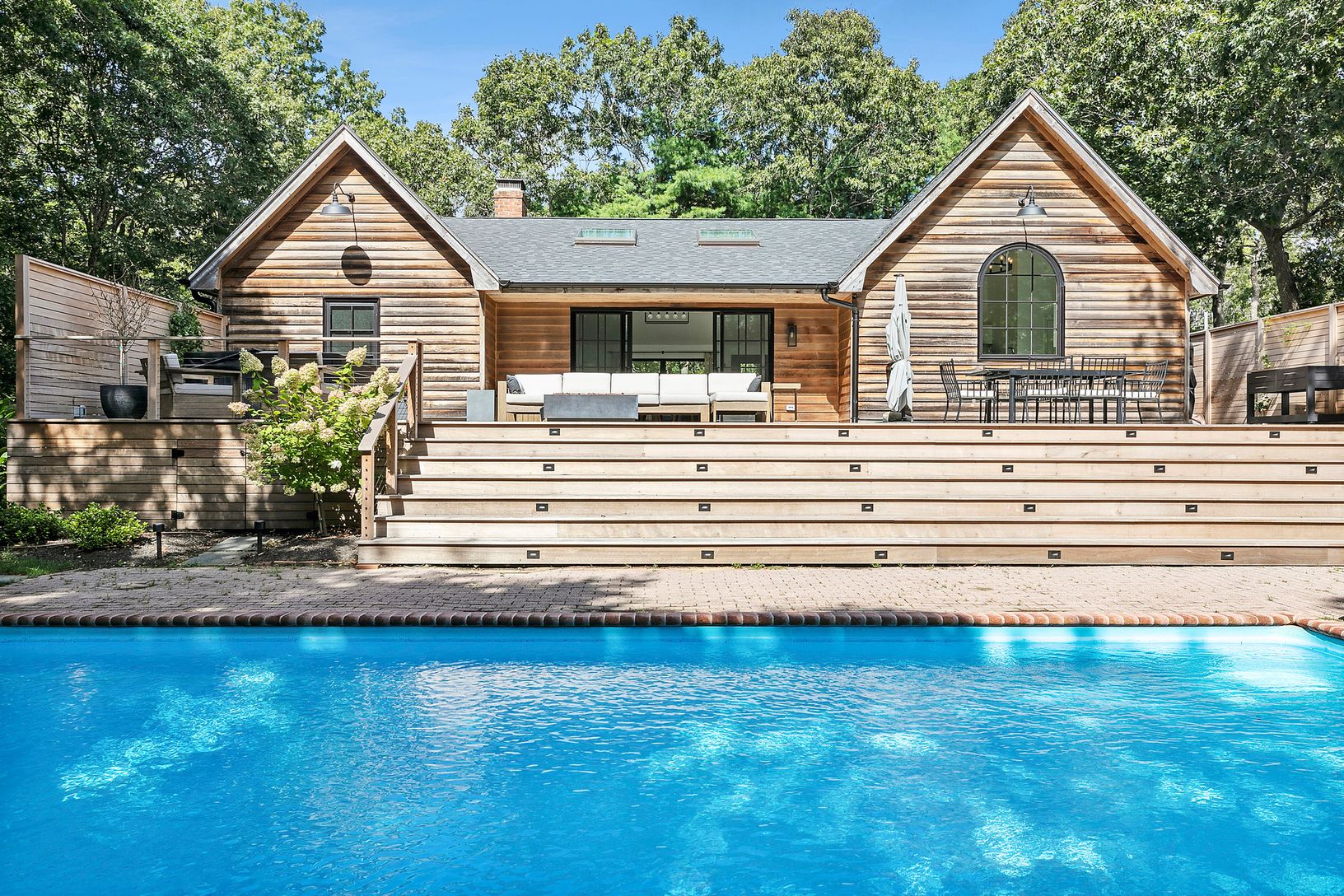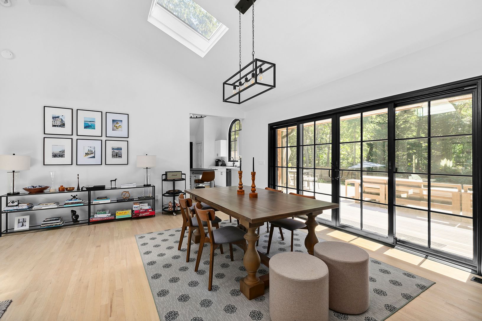 Drenched in natural light, this home welcomes you to stylish comfort all within a convenient distance to the best of everything East Hampton offers. An open floor plan with soaring ceilings provides casual common space while the primary suite and two guestrooms located at opposite ends of the house allow you to retreat to intimate settings when looking to unwind. Stepping outside onto the deck, you will find ample space to entertain. Whether