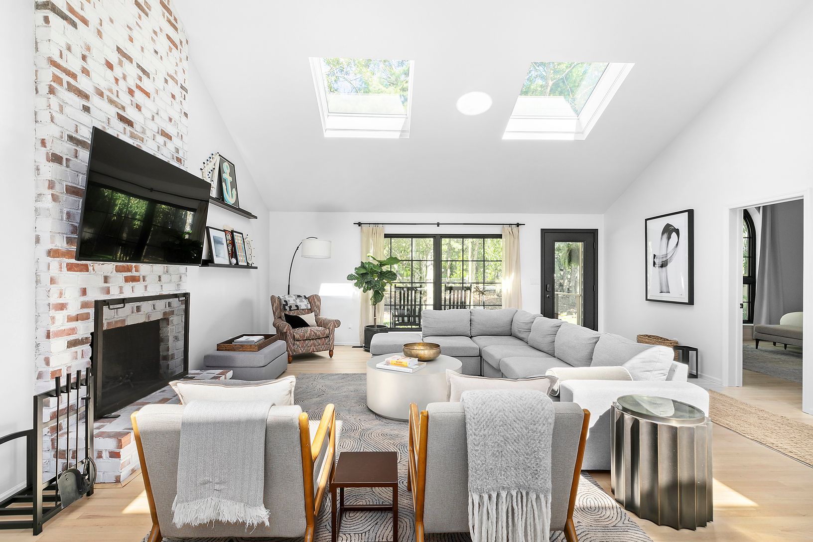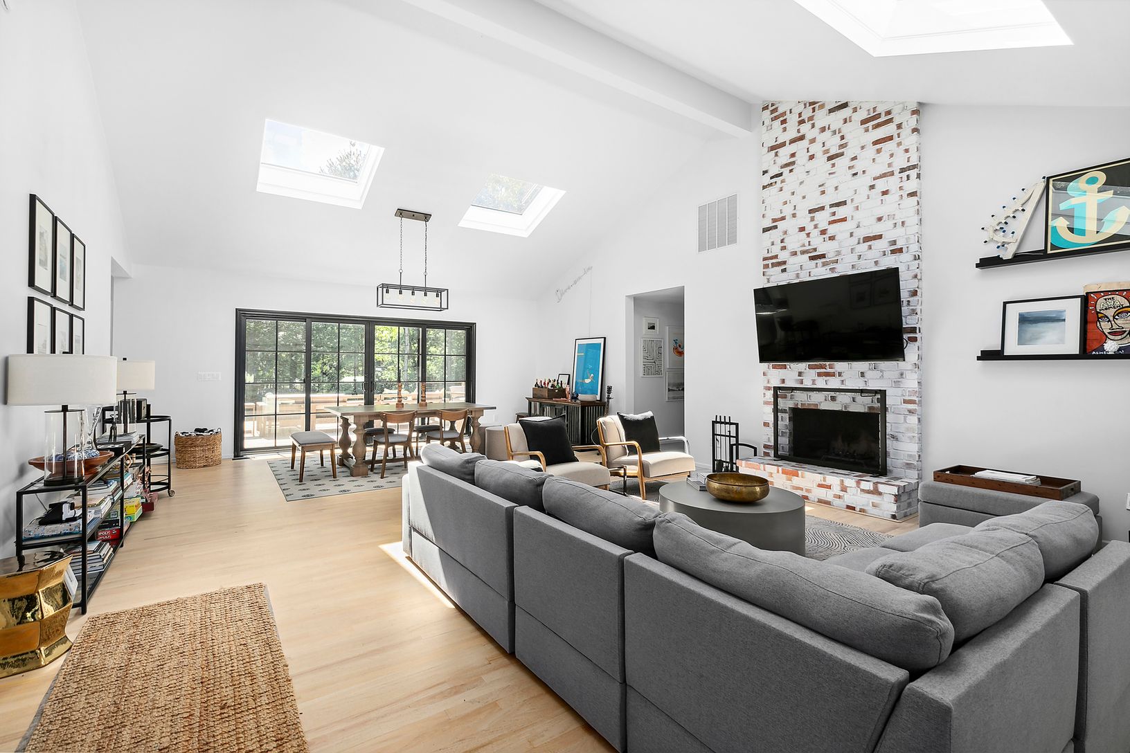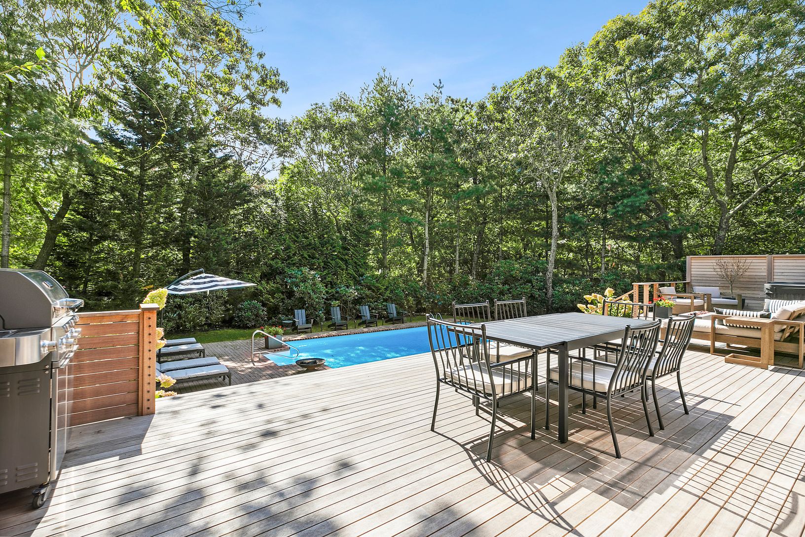 Drenched in natural light, this home welcomes you to stylish comfort all within a convenient distance to the best of everything East Hampton offers. An open floor plan with soaring ceilings provides casual common space while the primary suite and two guestrooms located at opposite ends of the house allow you to retreat to intimate settings when looking to unwind. Stepping outside onto the deck, you will find ample space to entertain. Whether