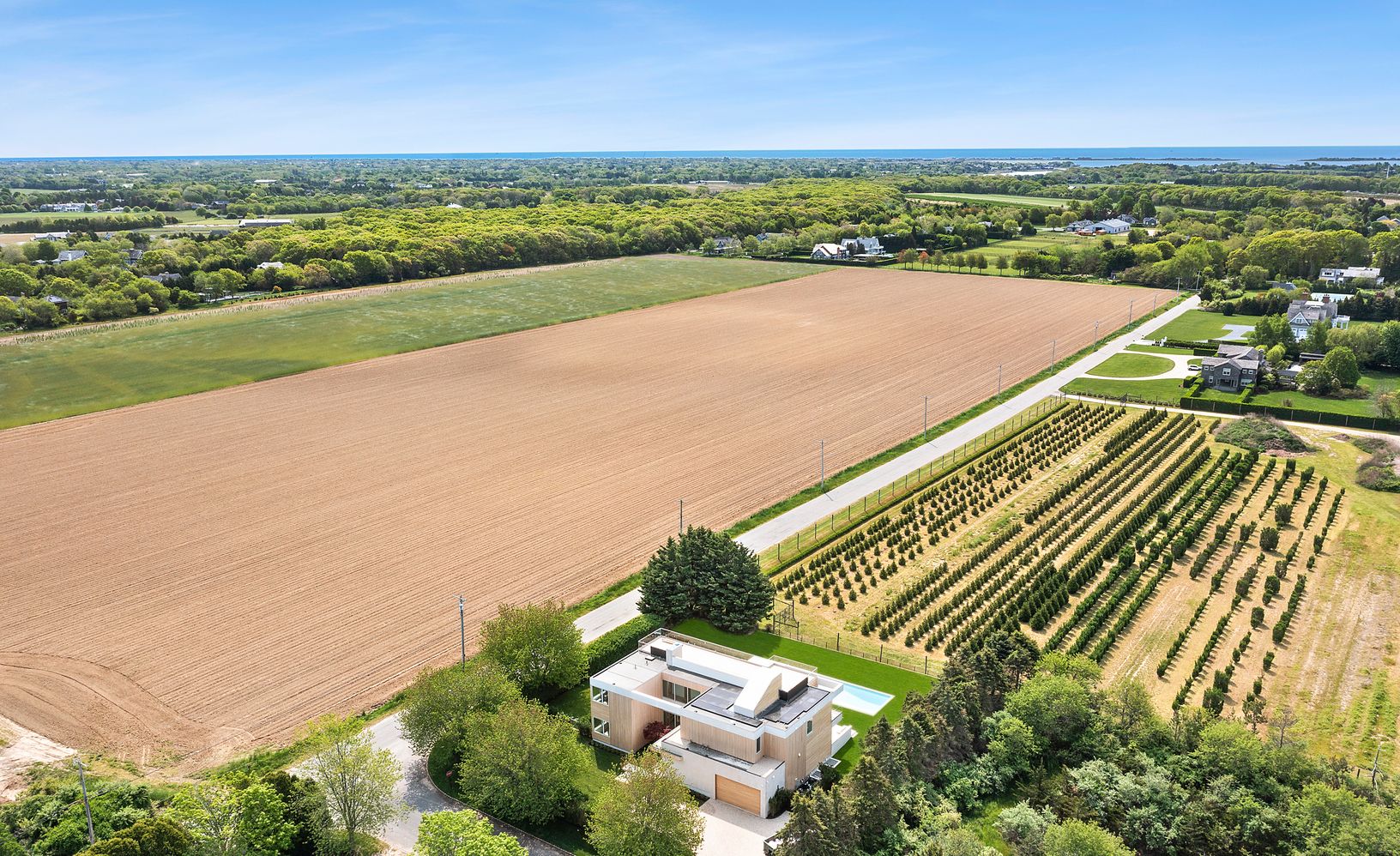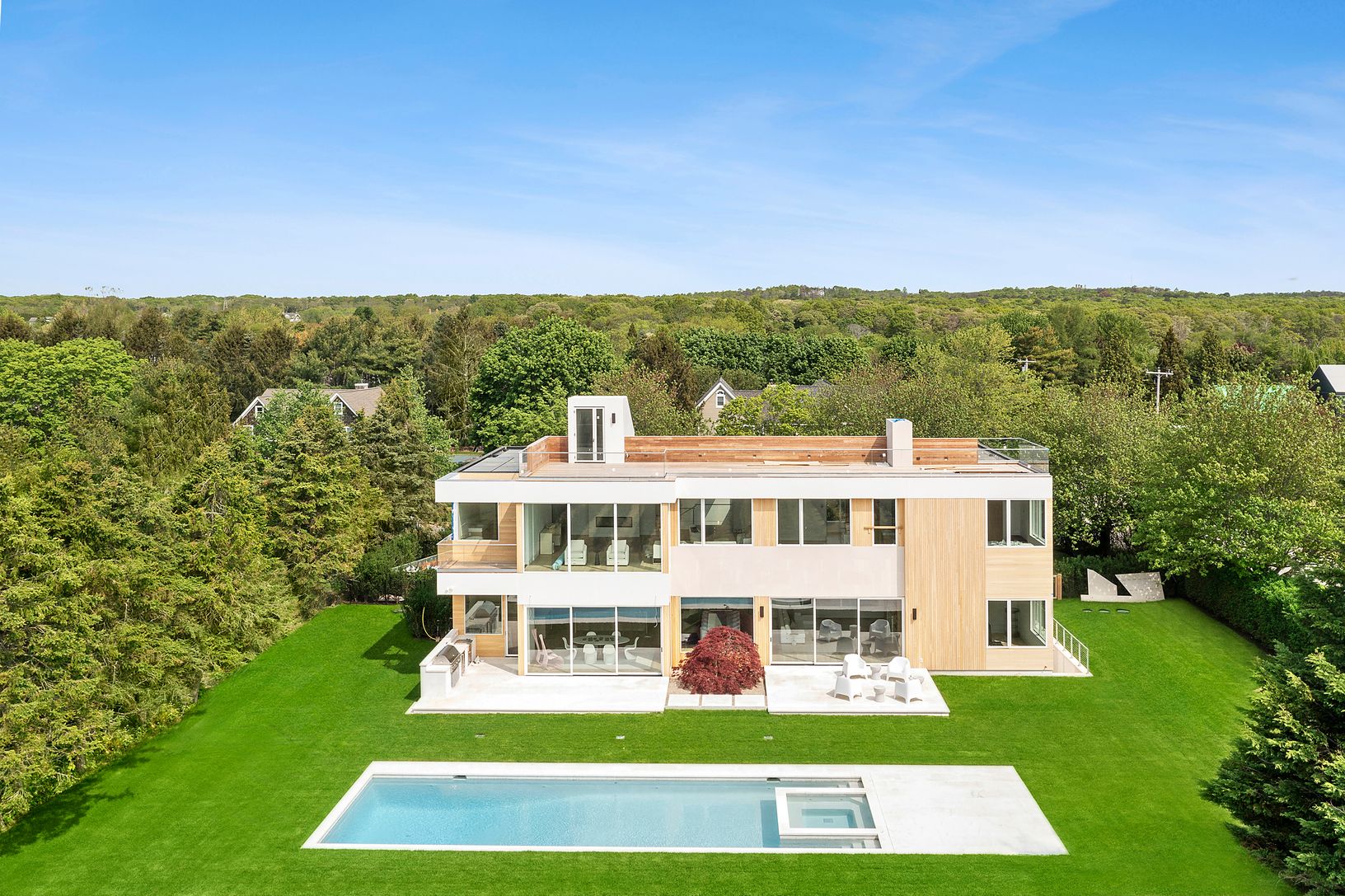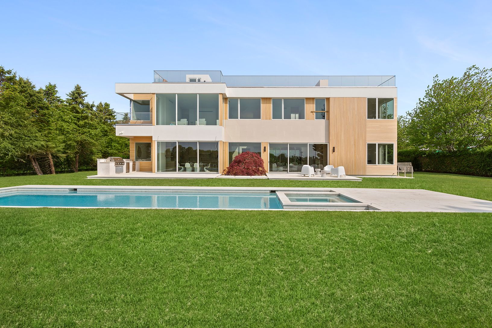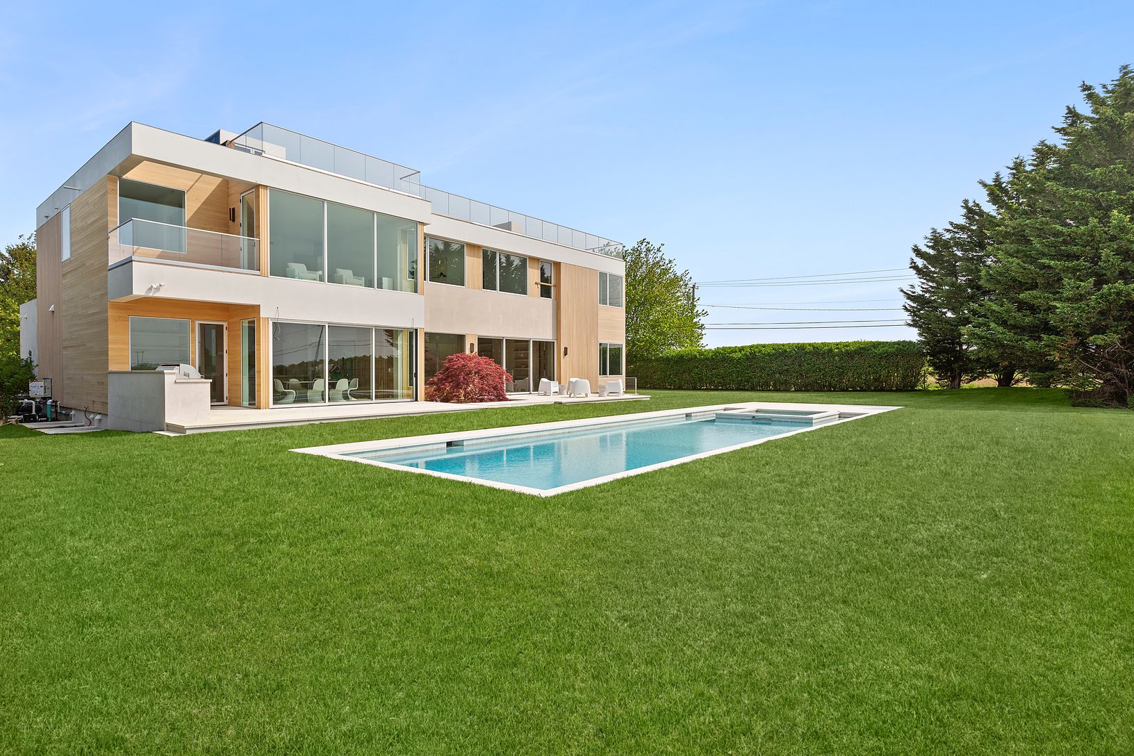 New Watermill Modern Residence- Endless Views Overlooking 50+ acre verdant farm reserve with unobstructed south- western views in Watermill, is the latest modern steel and glass masterpiece presented by luxury home builder, Breskin Development. Enjoy sunsets with 270 degrees of farm and reserve views from the roof-top deck. This 8,200 square foot estate features 7 bedrooms / 6 + 2 half baths, heated 16 x 50 gunite pool with spa. The glow of th