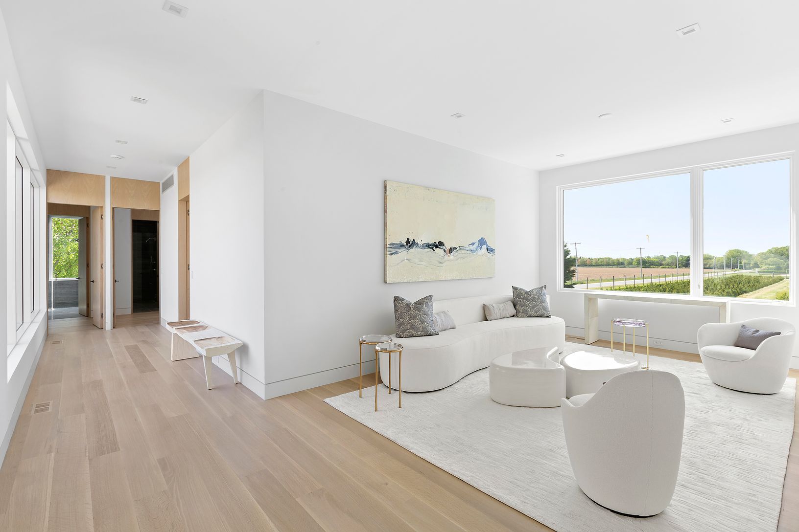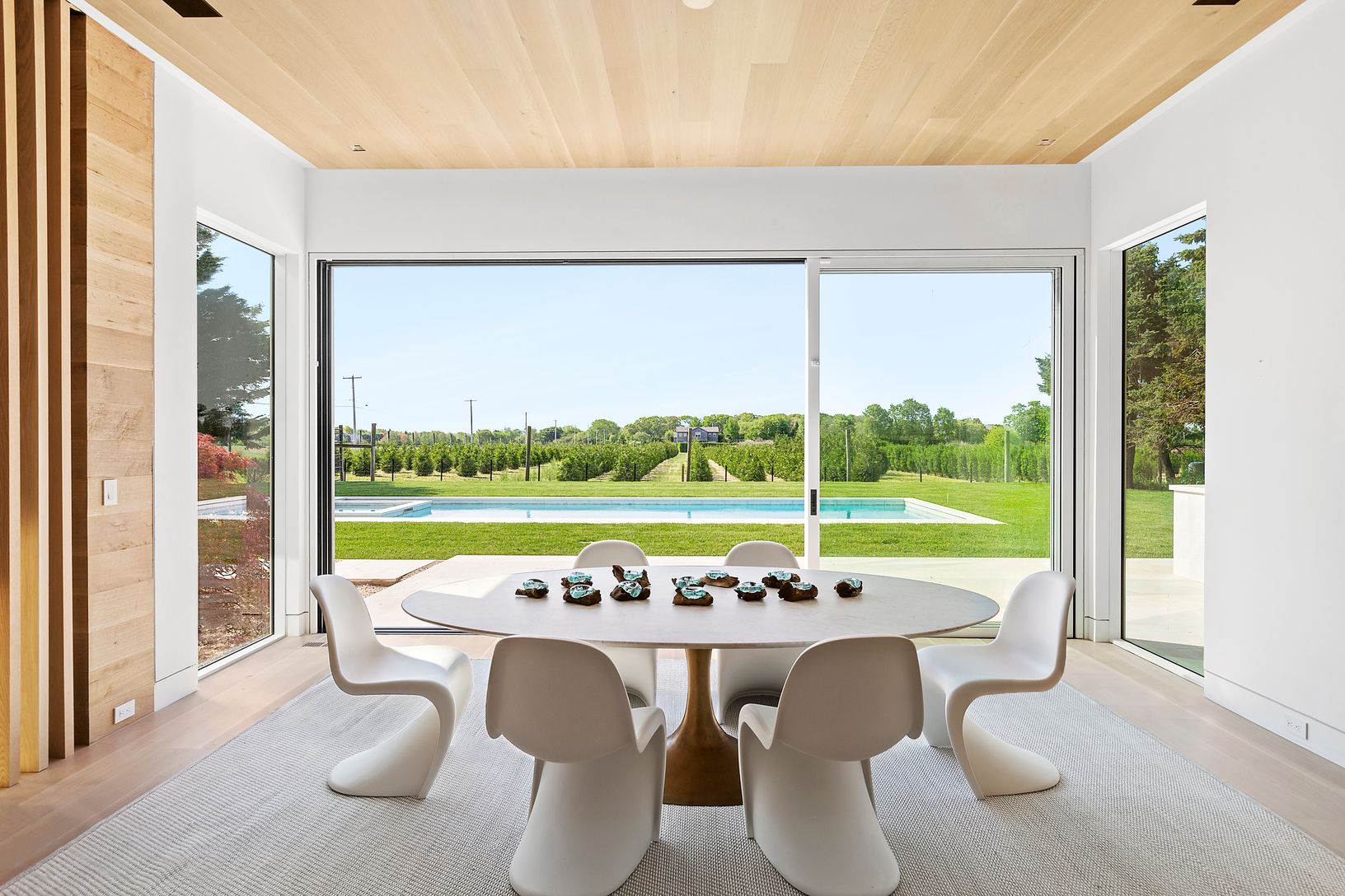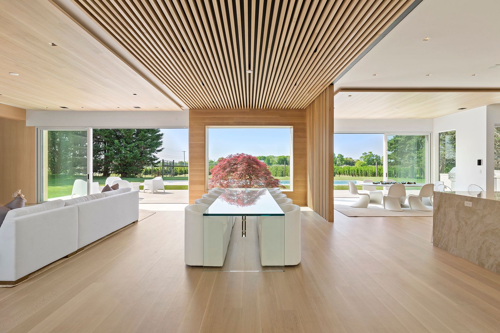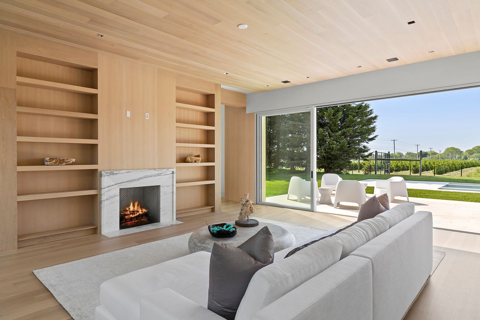 New Watermill Modern Residence- Endless Views Overlooking 50+ acre verdant farm reserve with unobstructed south- western views in Watermill, is the latest modern steel and glass masterpiece presented by luxury home builder, Breskin Development. Enjoy sunsets with 270 degrees of farm and reserve views from the roof-top deck. This 8,200 square foot estate features 7 bedrooms / 6 + 2 half baths, heated 16 x 50 gunite pool with spa. The glow of th