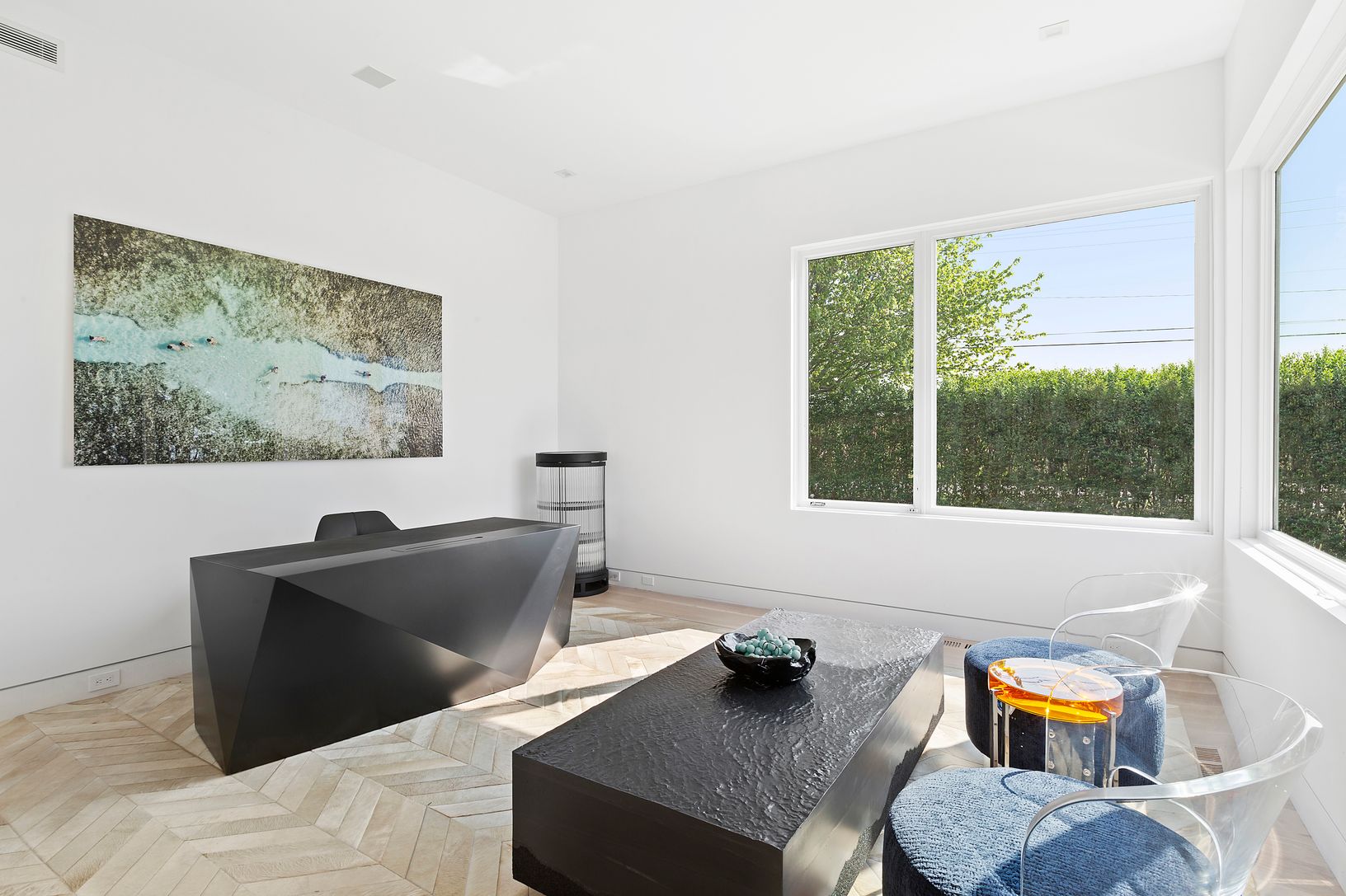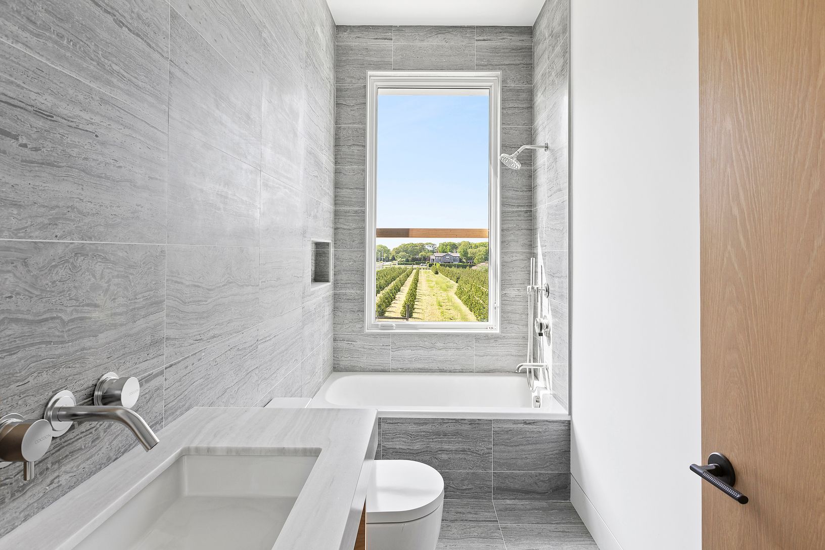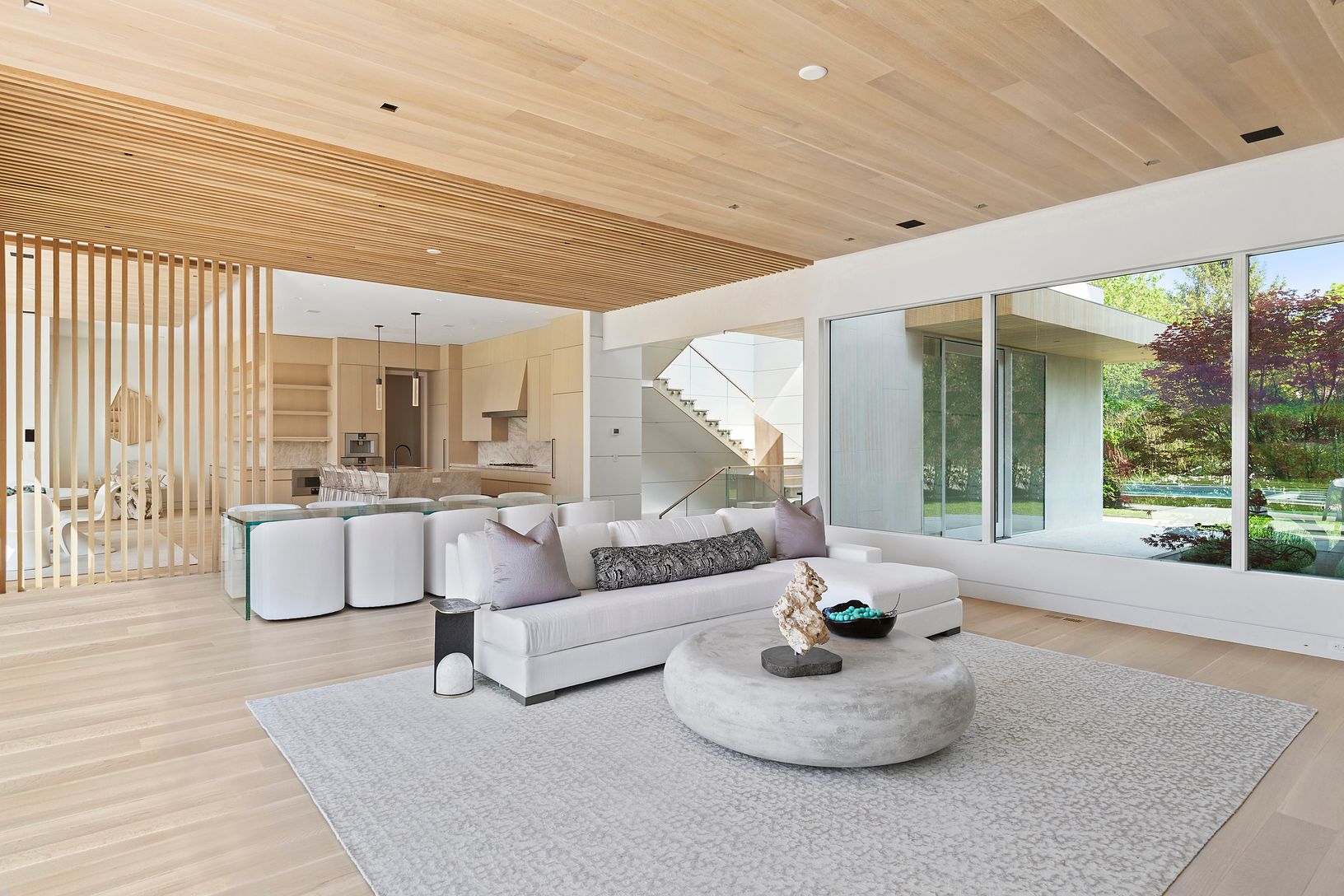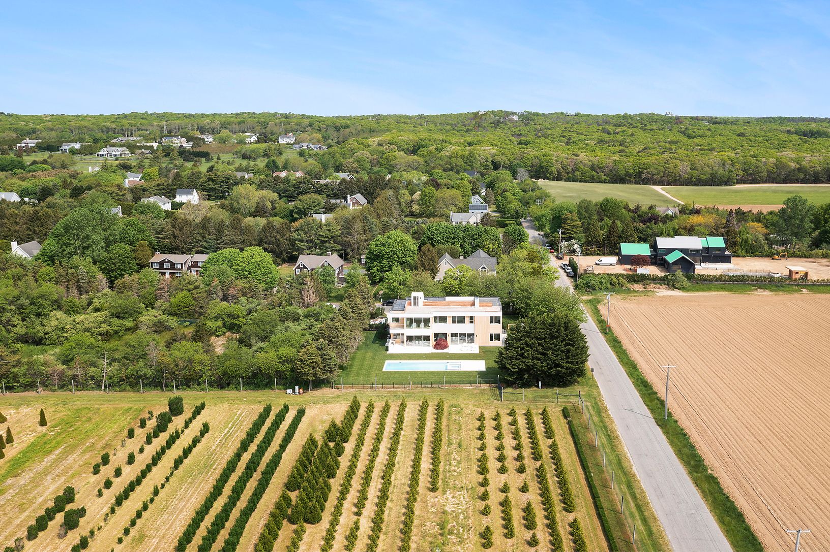New Watermill Modern Residence- Endless Views Overlooking 50+ acre verdant farm reserve with unobstructed south- western views in Watermill, is the latest modern steel and glass masterpiece presented by luxury home builder, Breskin Development. Enjoy sunsets with 270 degrees of farm and reserve views from the roof-top deck. This 8,200 square foot estate features 7 bedrooms / 6 + 2 half baths, heated 16 x 50 gunite pool with spa. The glow of th