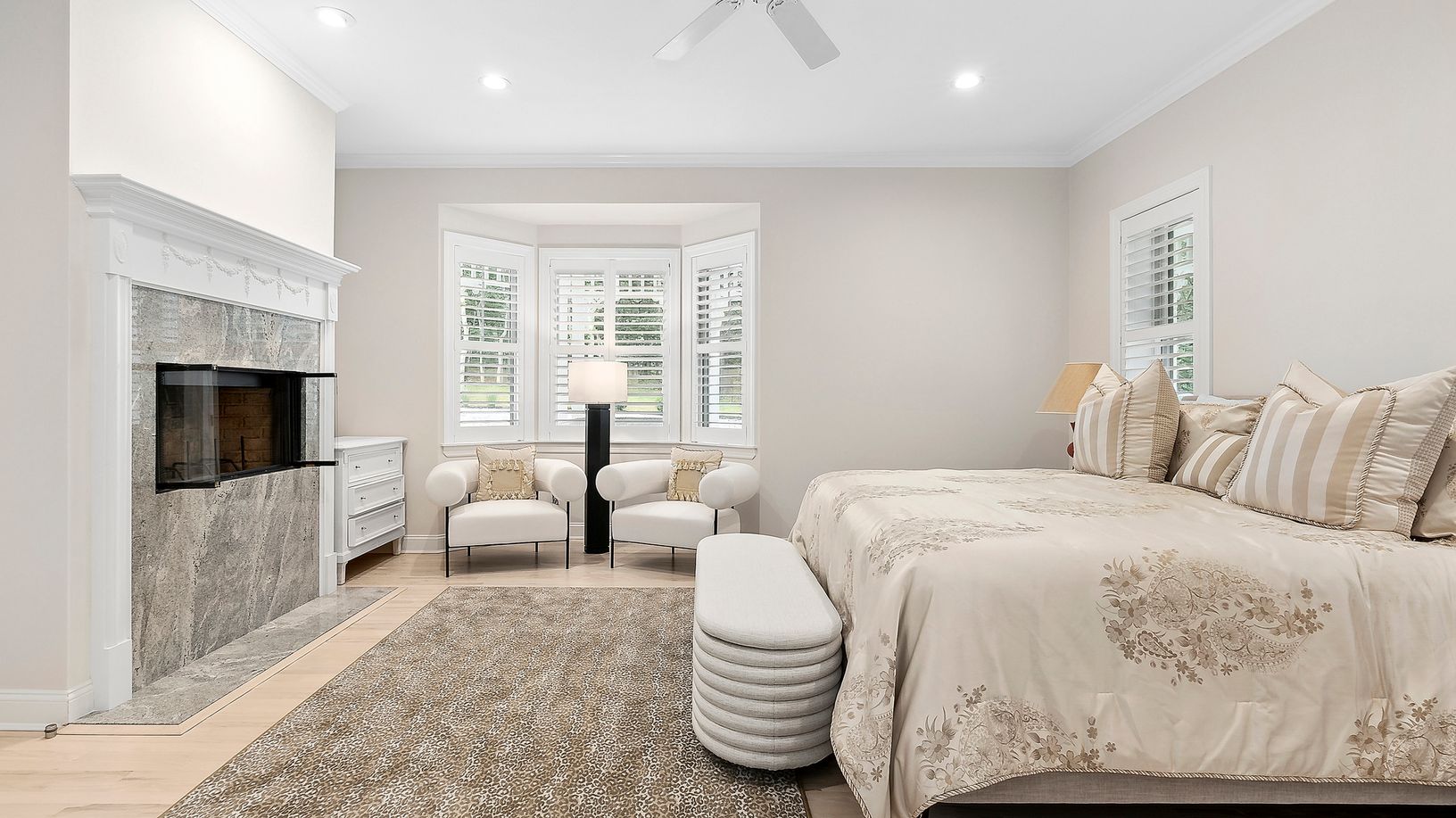Situated at the end of a long private lane approximately a quarter mile off the road with an automated driveway gated entrance, this beautifully renovated traditional home is situated on nearly 4 acres of pristine land. Surrounded by a welcoming wraparound porch, the property features a spacious great room with a cozy fireplace, a dining area, a sunny breakfast nook, and a chef's dream kitchen. The formal living room, also boasting a fireplace