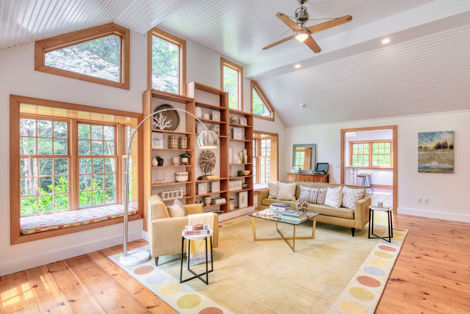 A rare opportunity to purchase this special shingled residence well located in the Stony Hill area of Amagansett only 1 mile to village and 2 miles to the ocean beaches. Across from Peconic Land Trust and surrounded on three sides by grand 11+ million dollar estates, all on large properties, this home was added on to and fully renovated in 2002 by Kudnicki Bernstein Architects. The cozy entrance foyer leads to a light filled great room with va