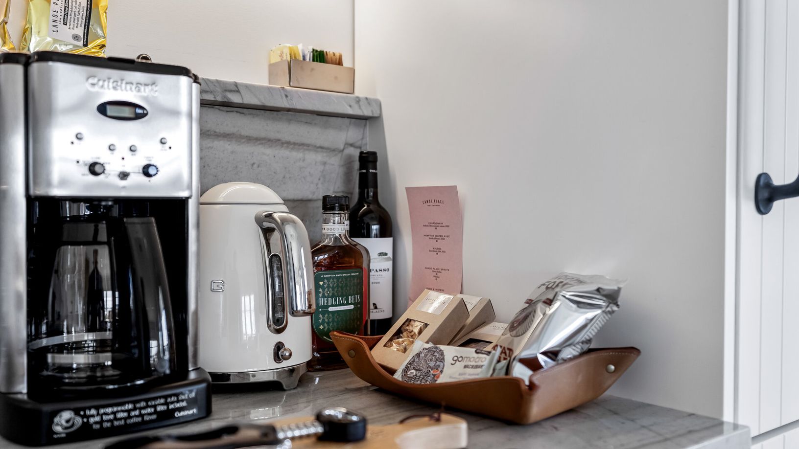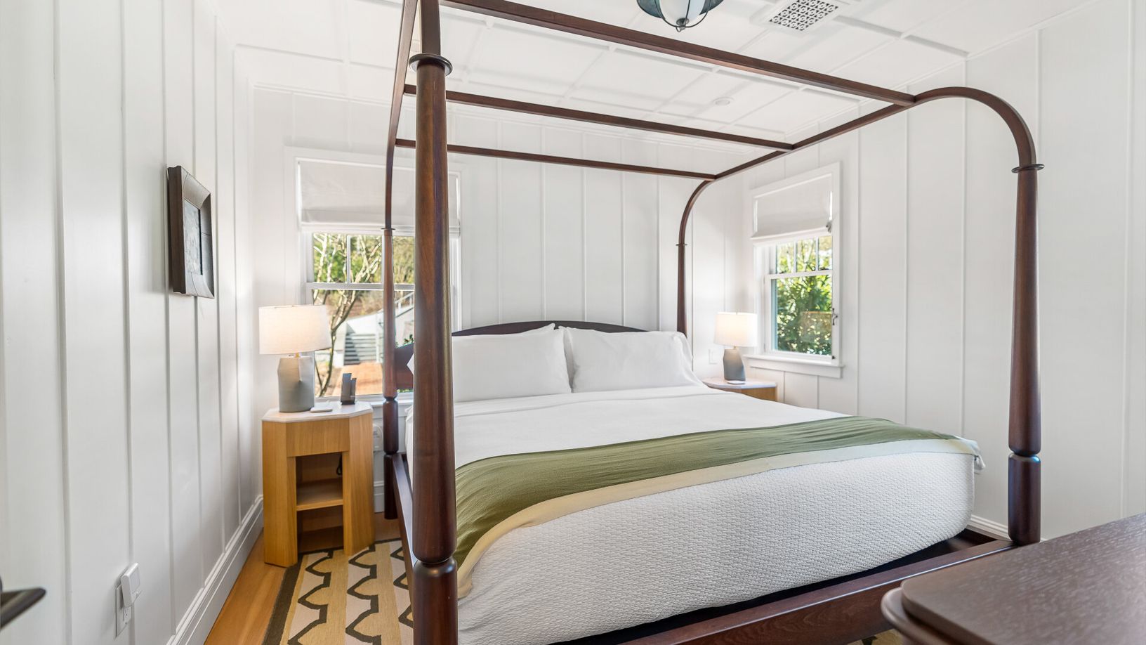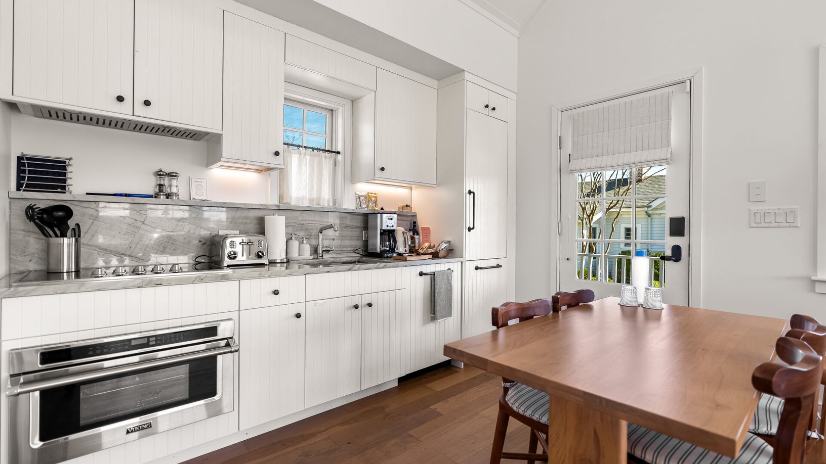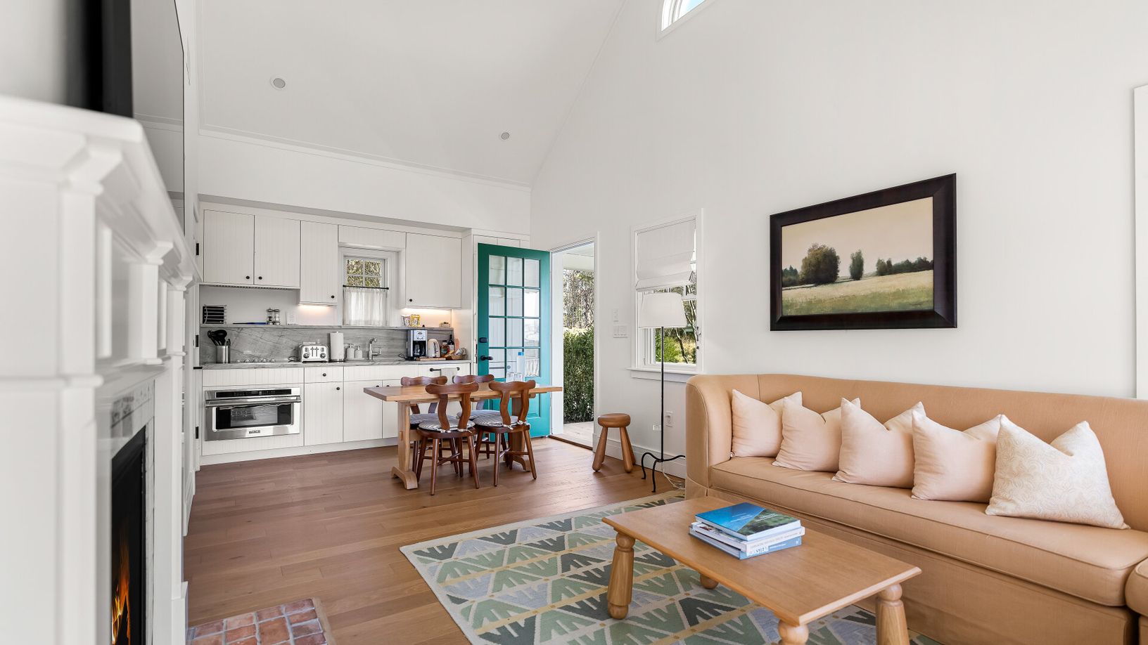 This standalone, 2-Bedroom Cottage at Canoe Place Inn, features 2 king-size bedrooms, a living room with an electric fireplace, a full kitchen, laundry facility, and 2 bathrooms with stand-alone showers. The 820-square foot Cottage offers private parking for guests as well as a private patio with an ou