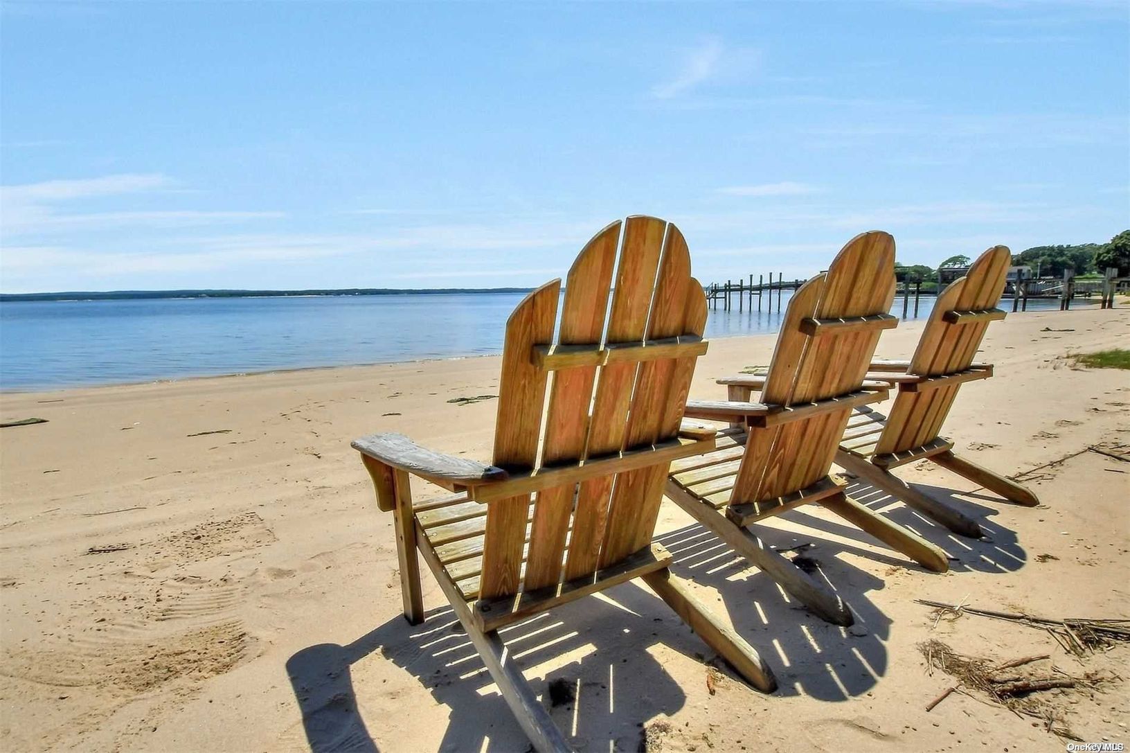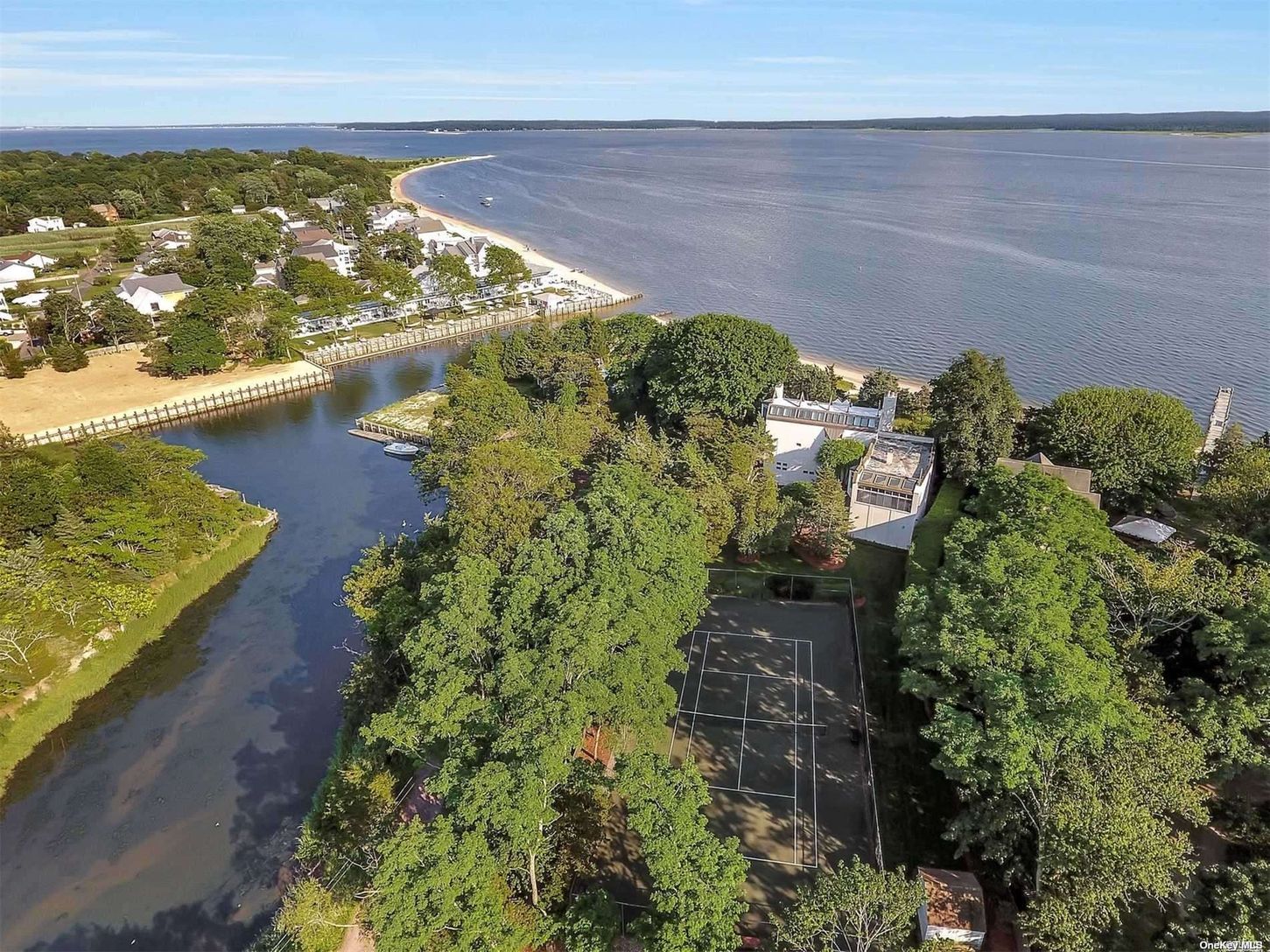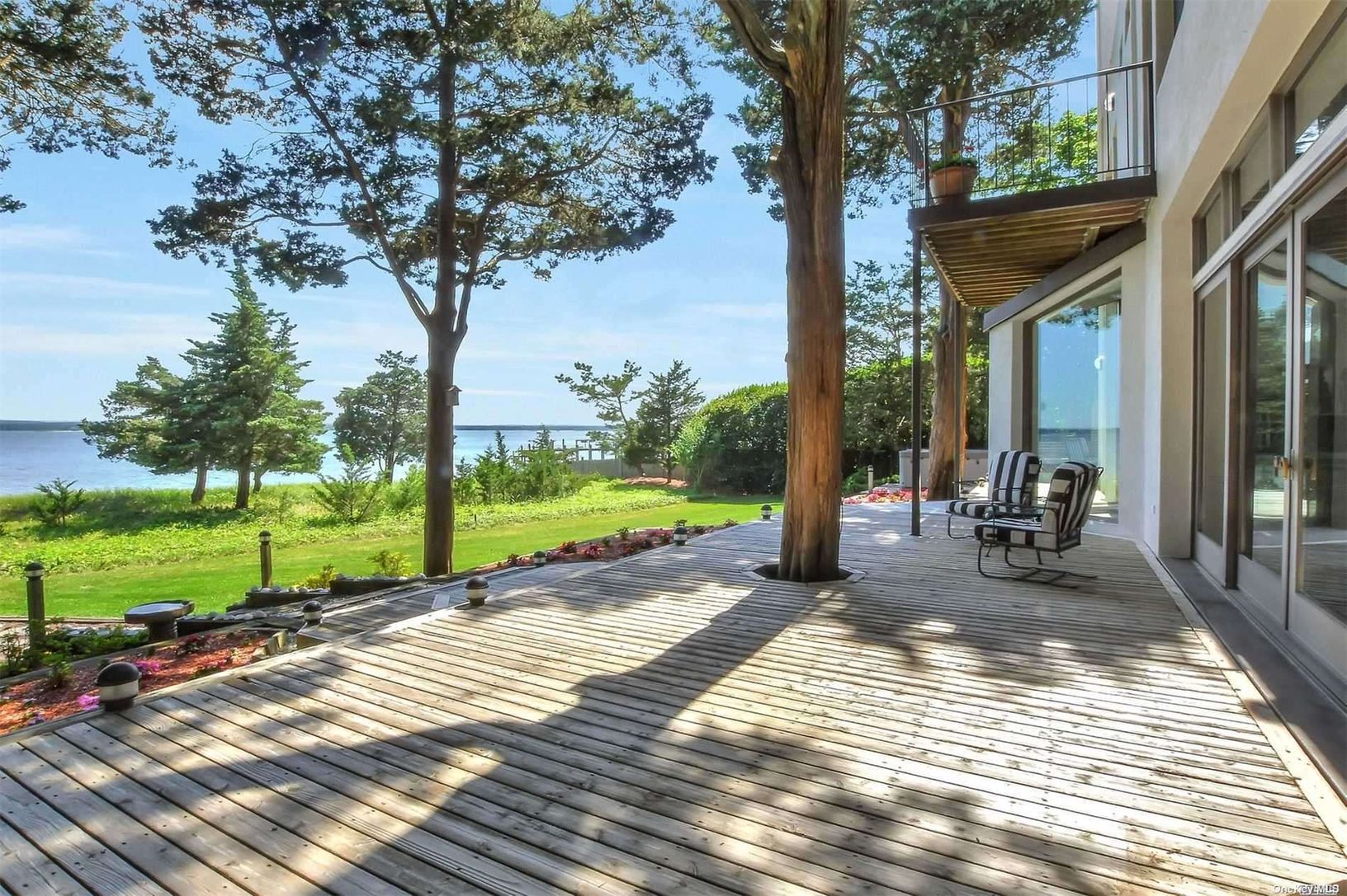 Looking for private, waterfront bliss? Enjoy 120' pristine private beach front tucked between the flavors of the North Fork and the busy Hamptons yet only 75 miles from the Midtown tunnel this 7-bedroom contemporary Mediterranean home on 1.3 acres is built to entertain with a view. From the wraparound deck it's an easy pathway with no steep steps to your own expanse of soft sand beach on the Peconic Bay. The home has two wings, each with livin
