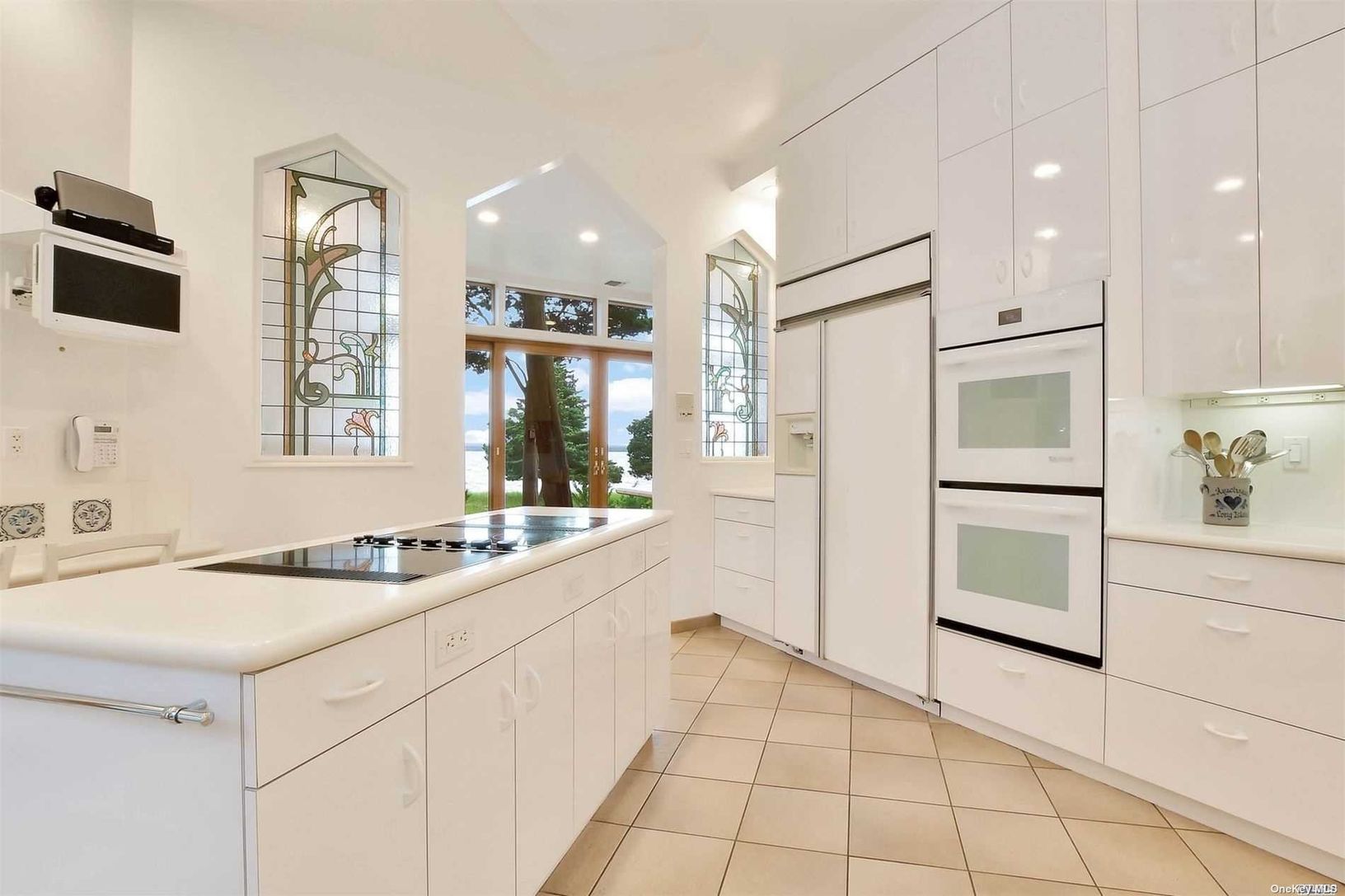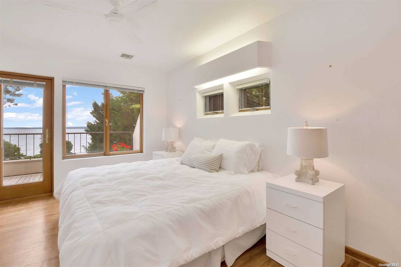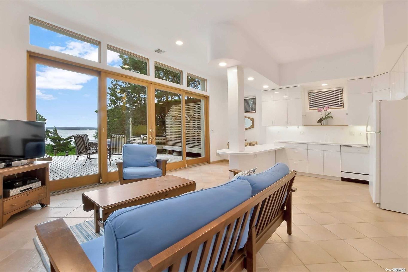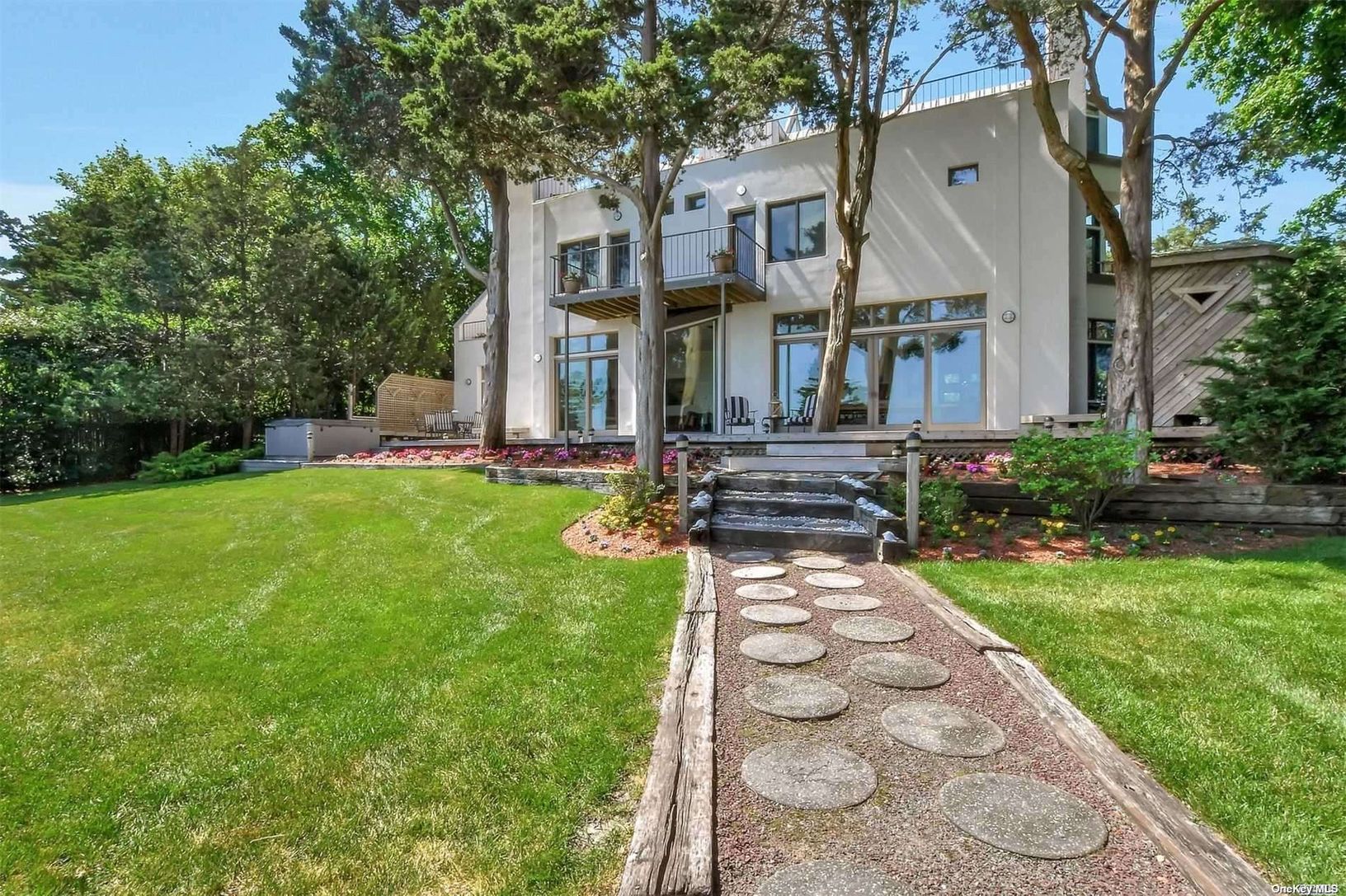 Looking for private, waterfront bliss? Enjoy 120' pristine private beach front tucked between the flavors of the North Fork and the busy Hamptons yet only 75 miles from the Midtown tunnel this 7-bedroom contemporary Mediterranean home on 1.3 acres is built to entertain with a view. From the wraparound deck it's an easy pathway with no steep steps to your own expanse of soft sand beach on the Peconic Bay. The home has two wings, each with livin