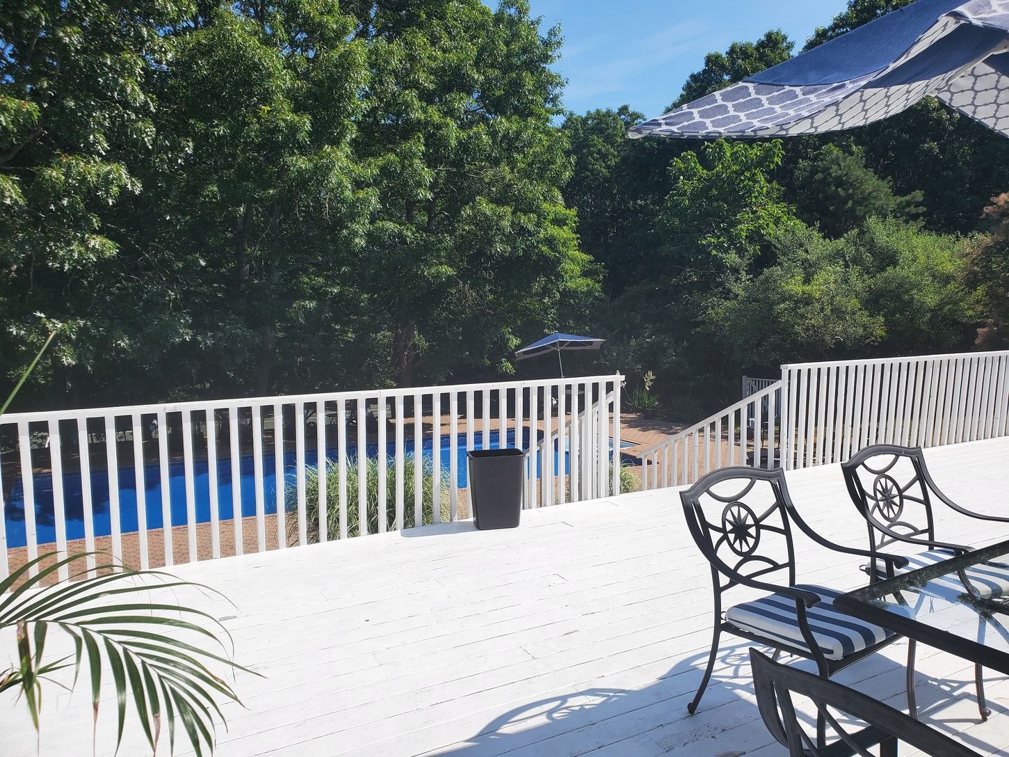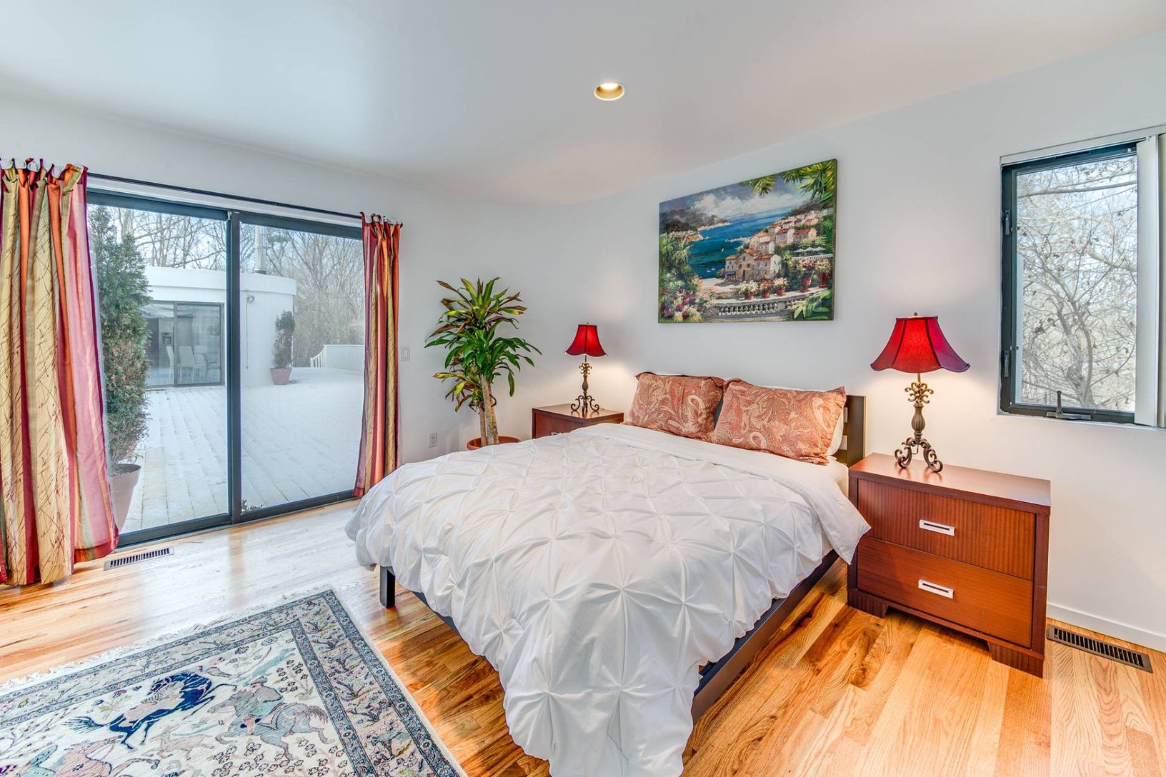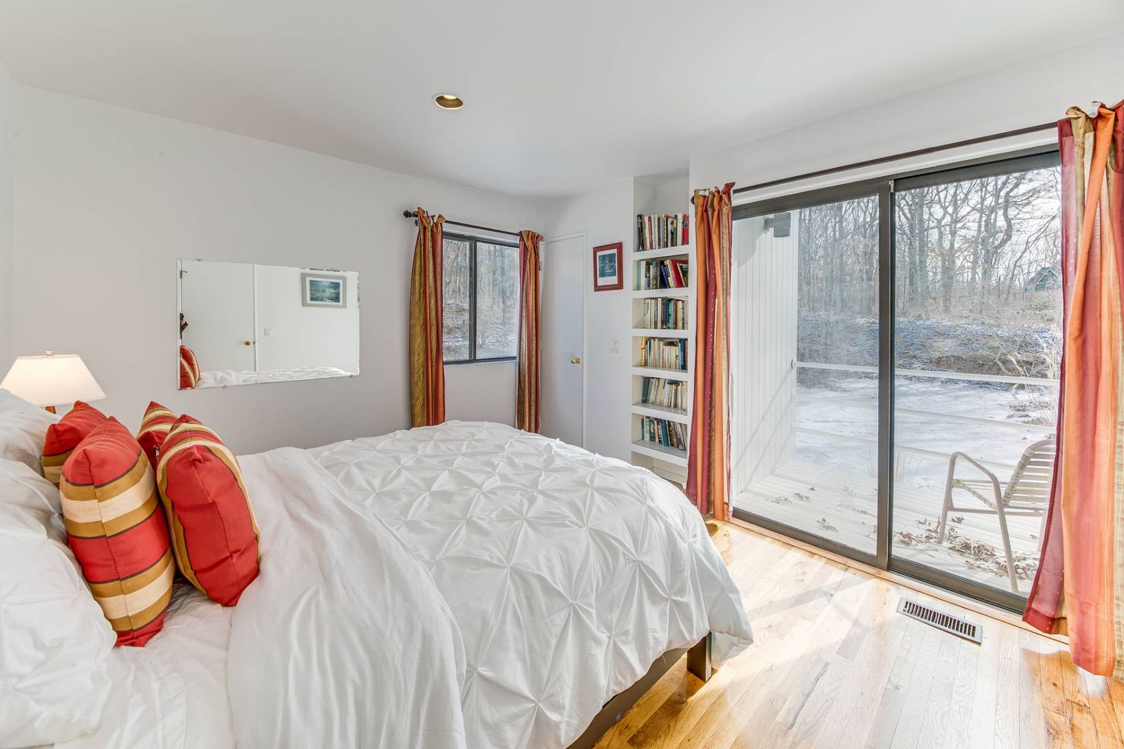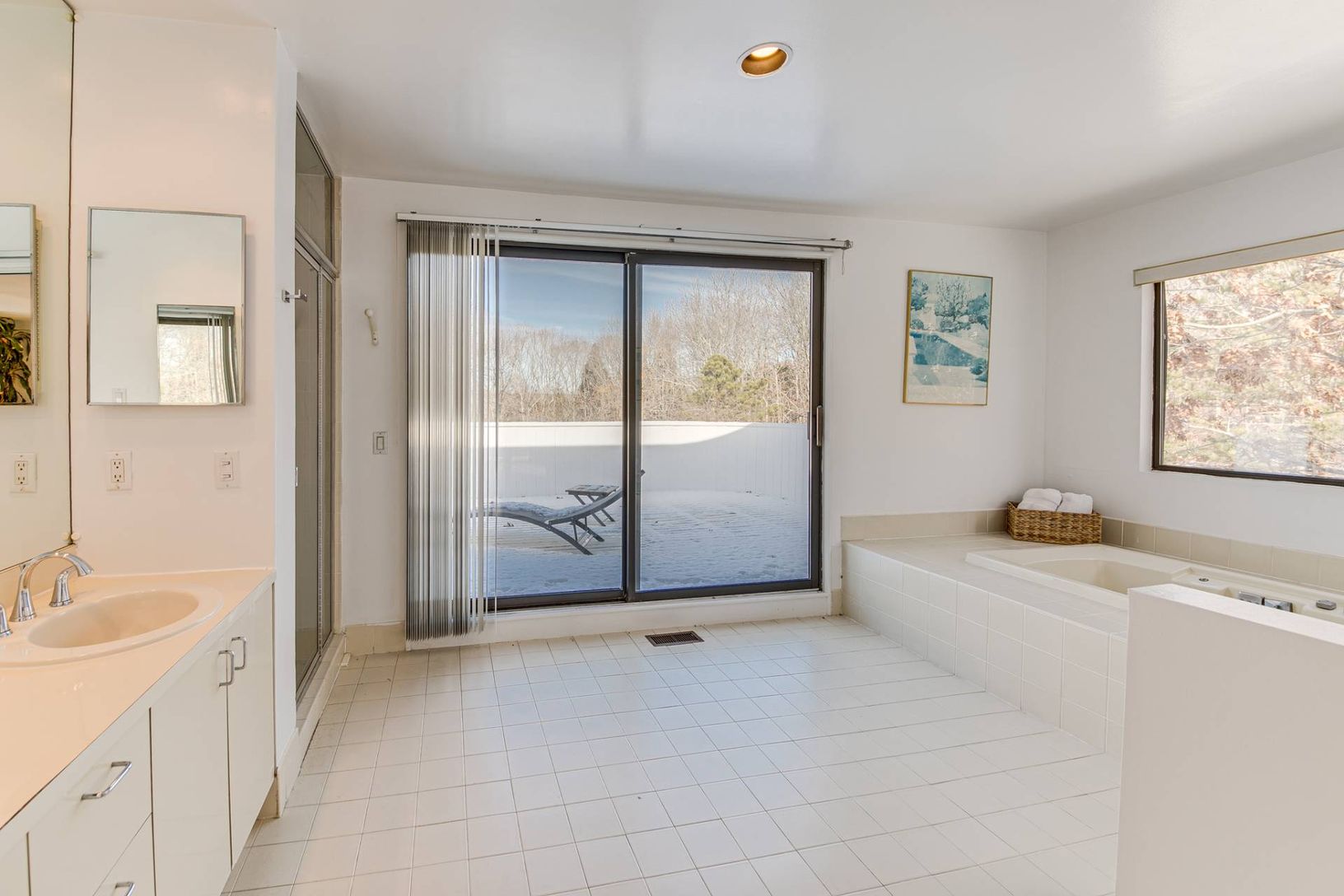 Tucked away down a long driveway, this spacious 5 bedroom, 4 bath contemporary, just shy of 4,000 sq. ft., sits on 1.8 acres with resort style amenities including an expansive deck overlooking the heated pool and sunken all-weather tennis court. This secluded location is centrally located, in easy reach of Southampton, Water Mill, Bridgehampton and Sag Harbor, as well as bay and ocean beaches. Enter the front doors to the spacious double heigh