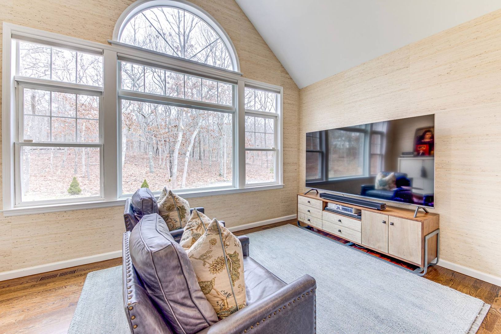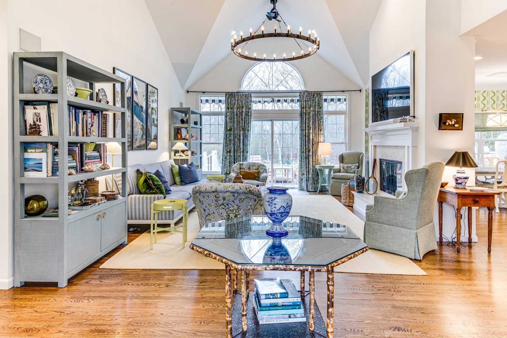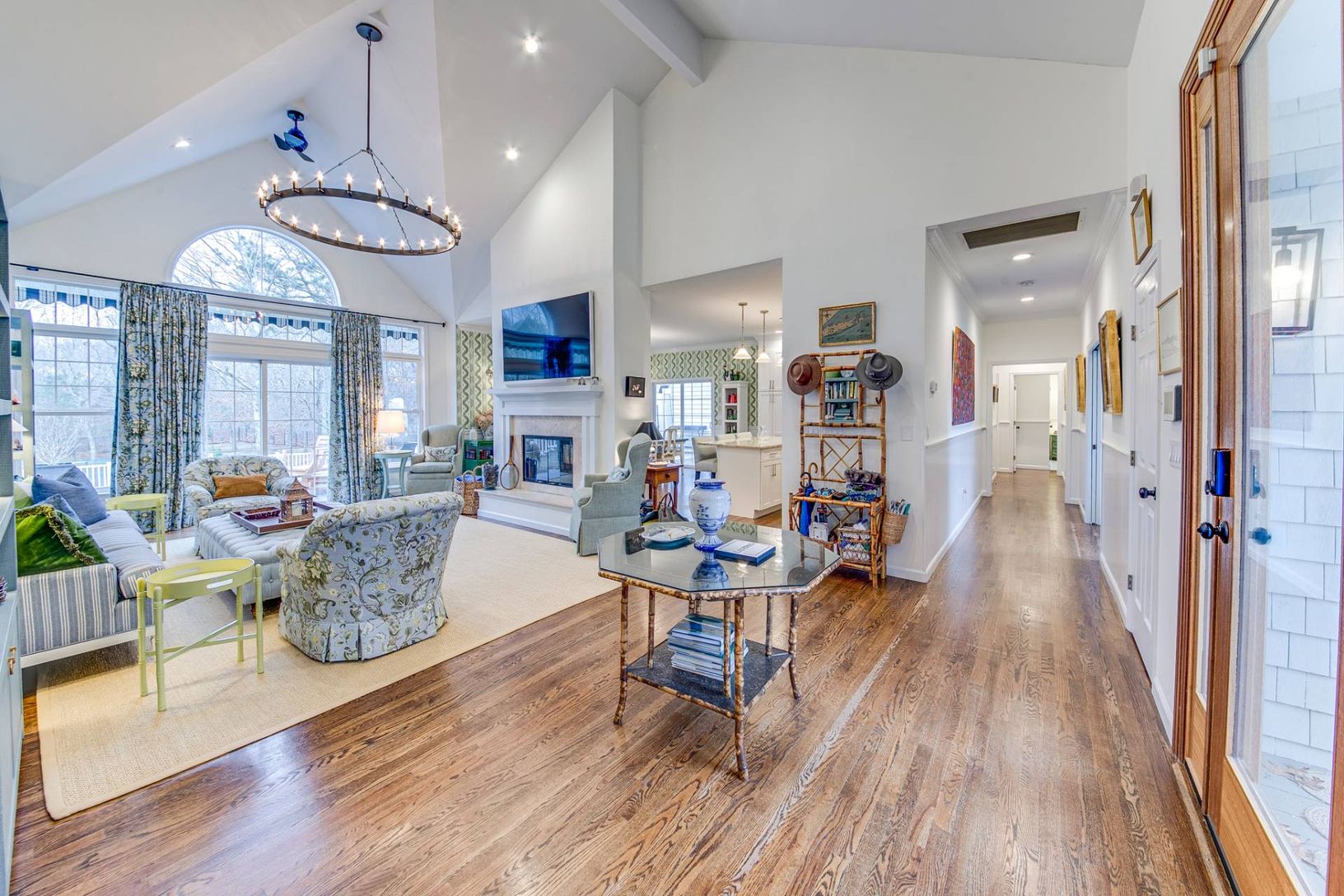 On a deep flag lot between Sag Harbor and East Hampton Villages, this exciting new offering is nestled upon a shy 4 acres of beautiful property. Behind a privacy gate, follow the lighted driveway to this serene spot that feels like a true getaway, but is quite centrally located. Expertly updated by the current owners, this 4+ bedroom single story home is designer chic and completely move in ready. Enter to the great room, bathed in natural lig
