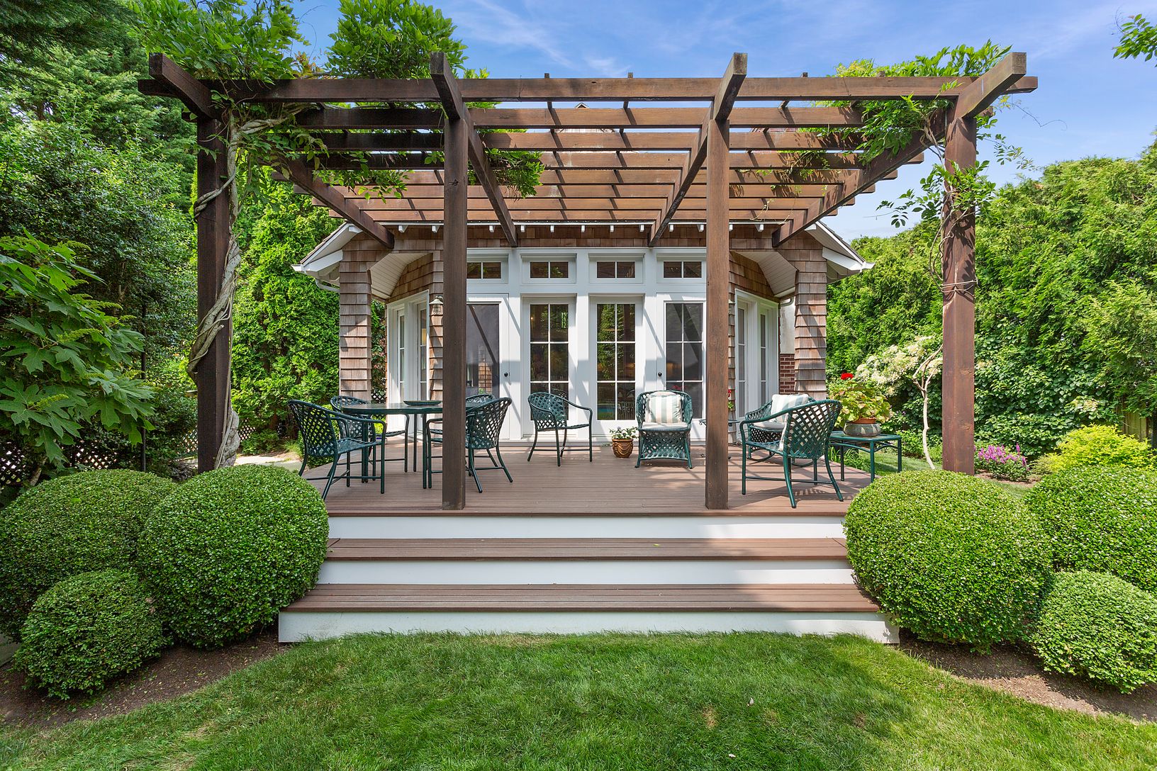 Nestled among beautifully established landscaping in the lanes of East Hampton Village, a stone's throw from fine dining and the charms of main street, this idyllic 3 bedroom custom built shingled cottage offers serene outdoor spaces and a heated, salt water, gunite pool. Set on a deep 0.45 acre lot, the rear dining deck overlooks the peacefully secluded pool and the covered porch overlooks the front gardens. A stone path under a magnificent e