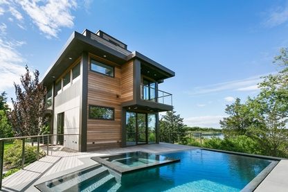 Completed in 2017 this Modern home has it all. Buy the epitome of elegance and good taste sitting on a west-viewing waterfront lot in Sag Harbor. Nothing else on the market compares to this four-bedroom, five-bathroom modern house with a saline mirrored-edge pool and spa, two fireplaces, roof deck with kitchenette and brand new deep-water dock. Complete Poggenpohl cabinetry throughout the house, including the kitchen with Wolf, Sub-Zero and Mi