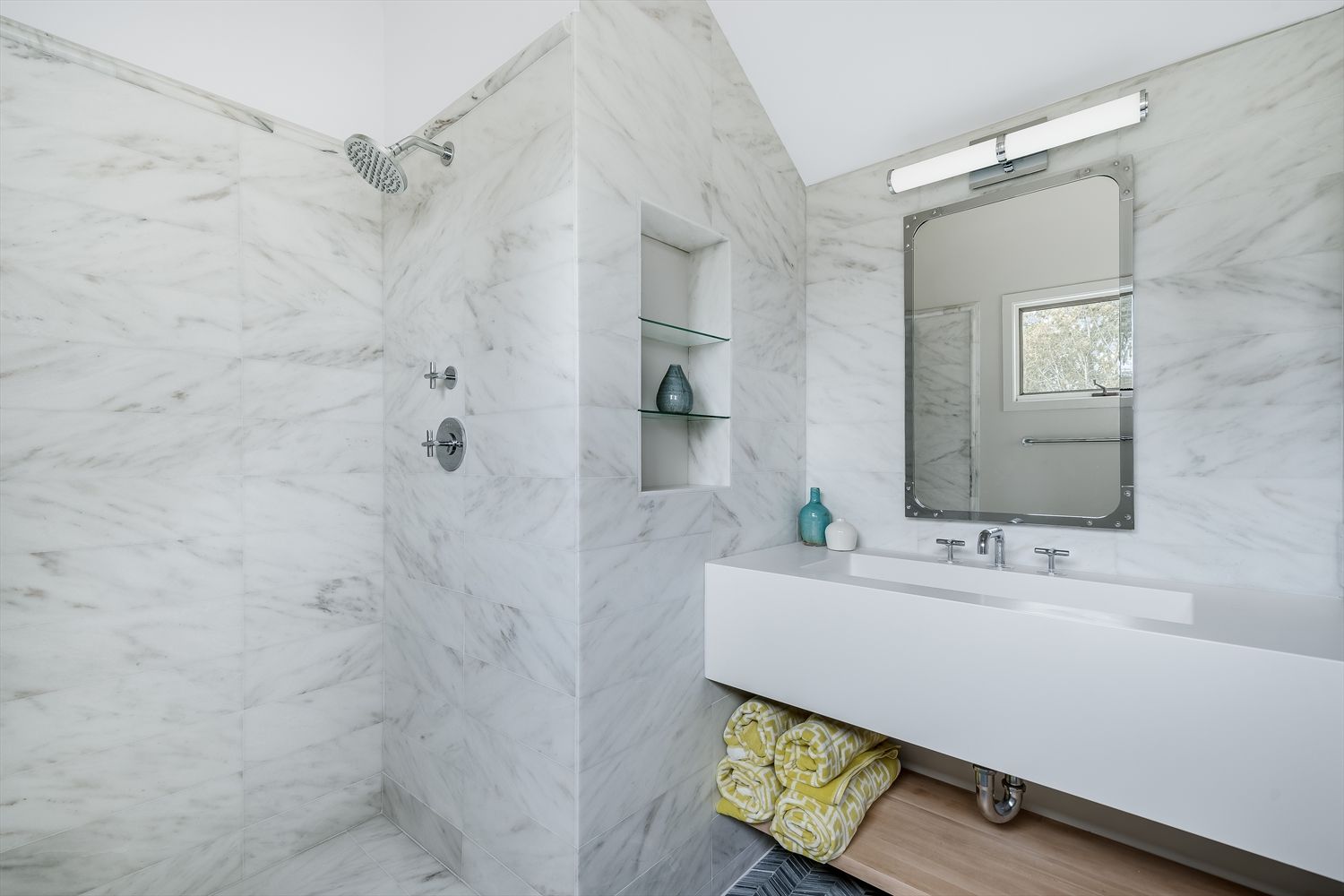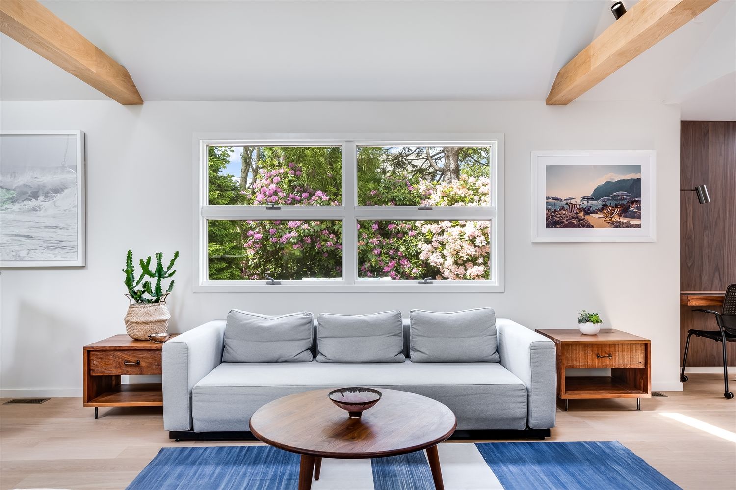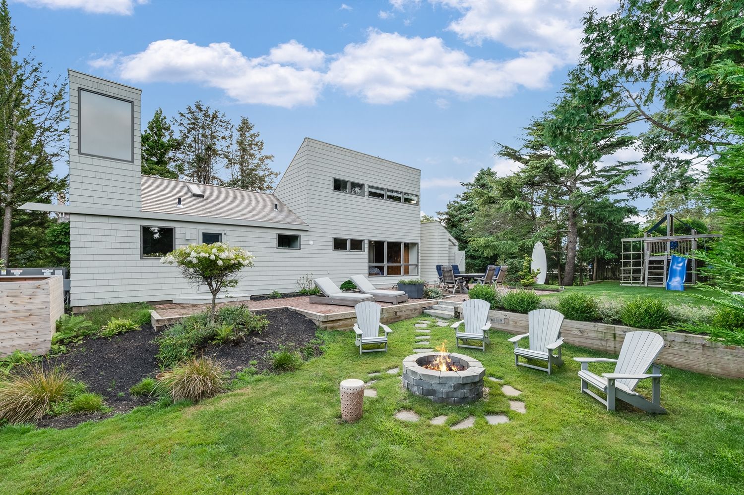 New to market- Architecturally acclaimed beach house with brand new stylish, modern update on rare beach access road in the coveted Beachampton Dunes area. Located on a corner lot, the teak entry gate offering rare Dunes privacy, enters an oasis of mature landscaping surrounded by grassy yard with multiple patios. The entry foyer features a HenryBuilt customizeable opencase system offering architectural elegance and functionality / storage and