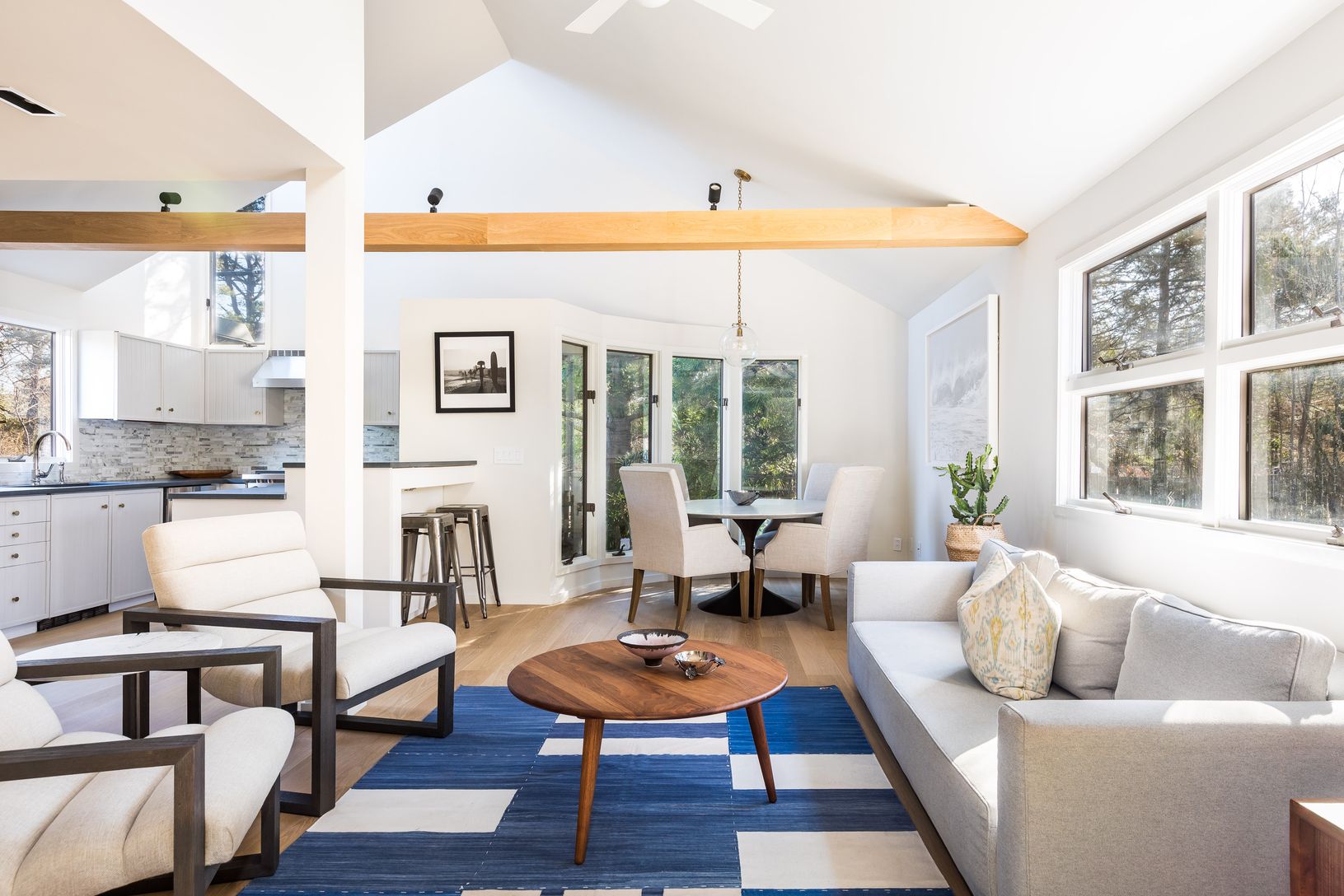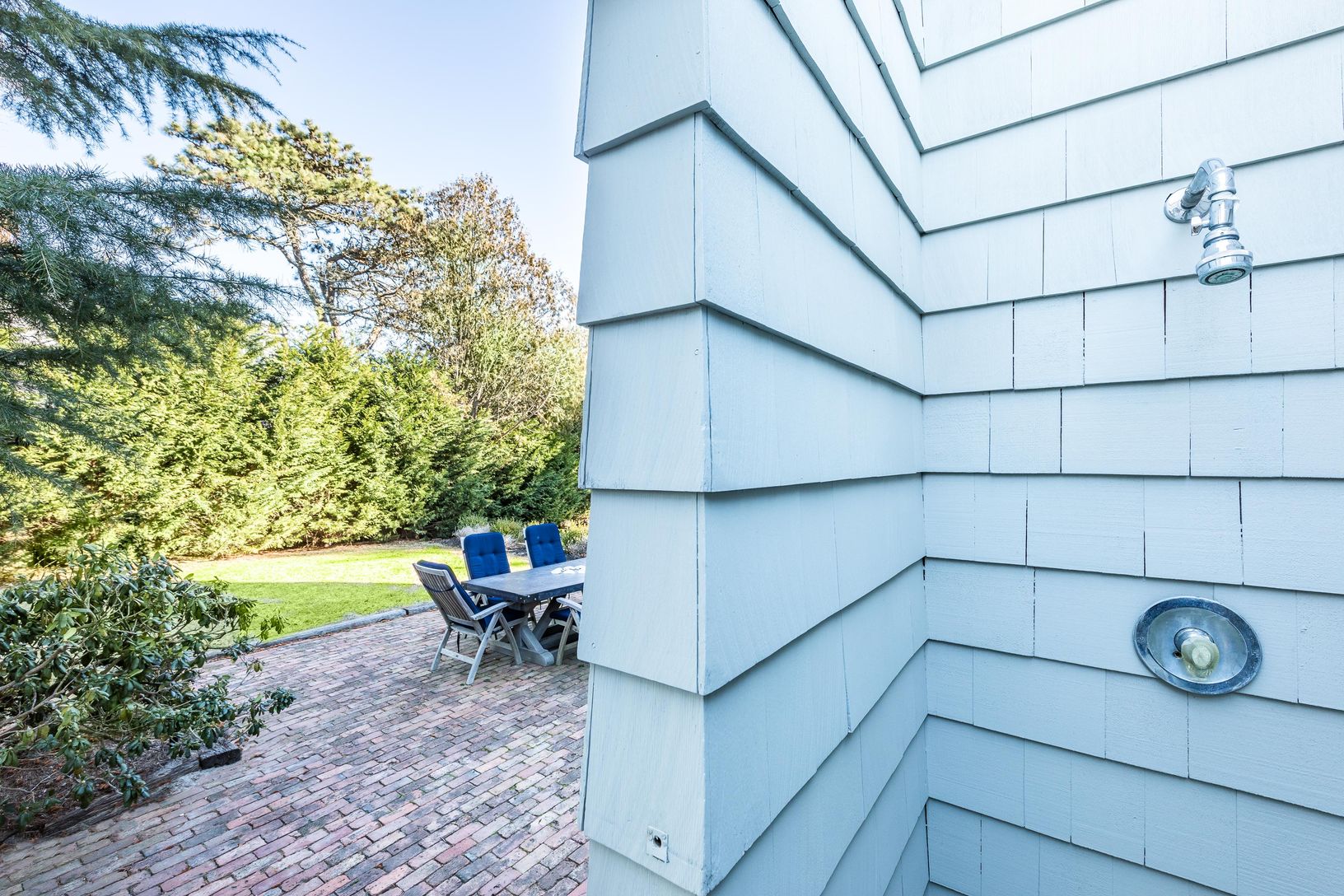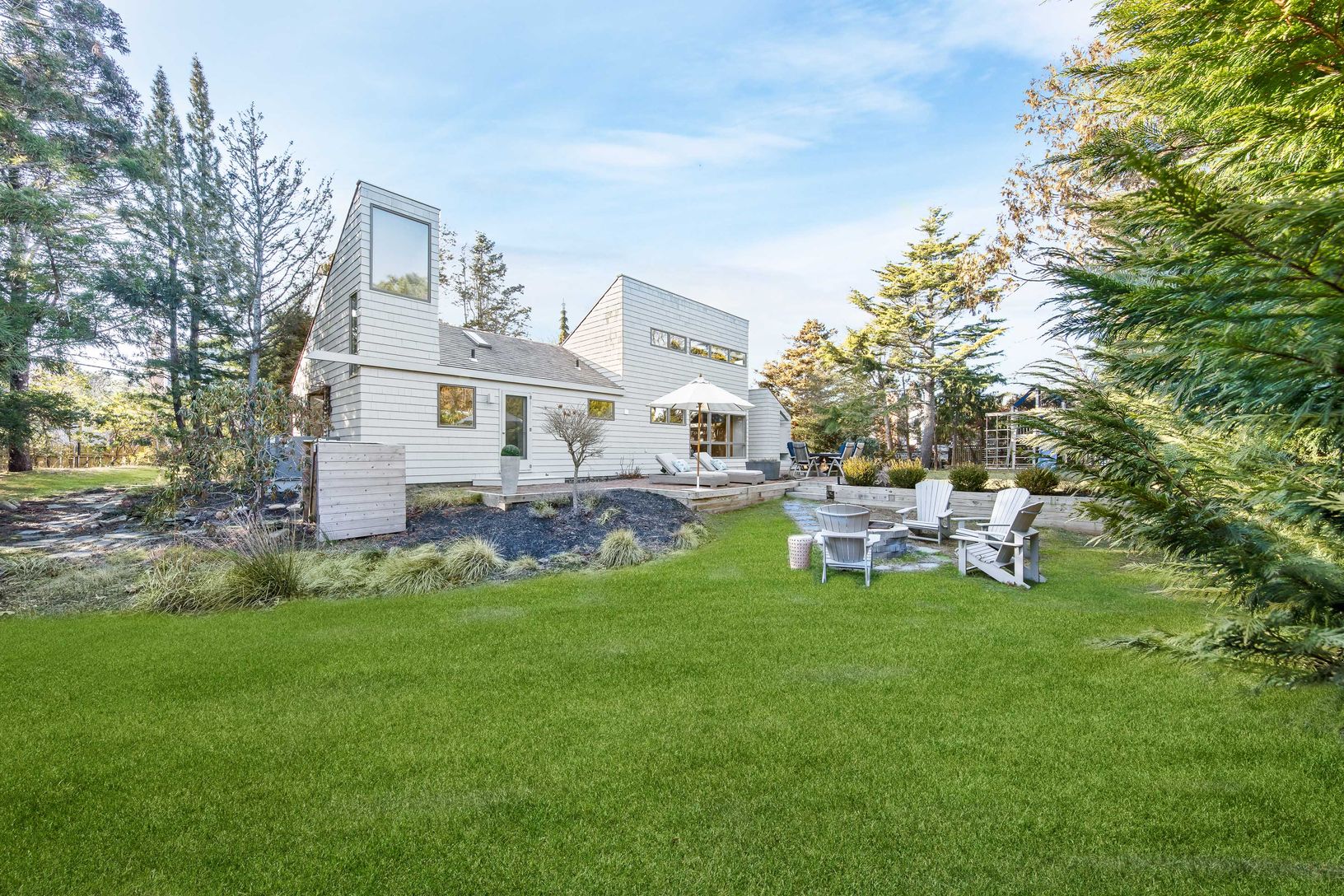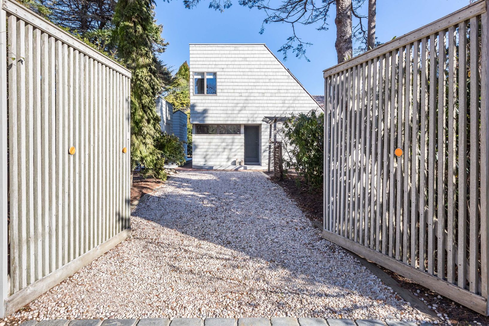 The ultimate chic beach retreat on a private road just one block from the ocean with its own neighborhood beach access. This 1500 square foot, 4-bedroom 2 full bath recently renovated home is bright and airy with ample outdoor entertaining space including a stone fire pit, terraced dining areas and shaded lounge. Mature blooming rhododendrons and evergreens add color and privacy to the teak gated .23 acre property on a corner lot. A first-floo
