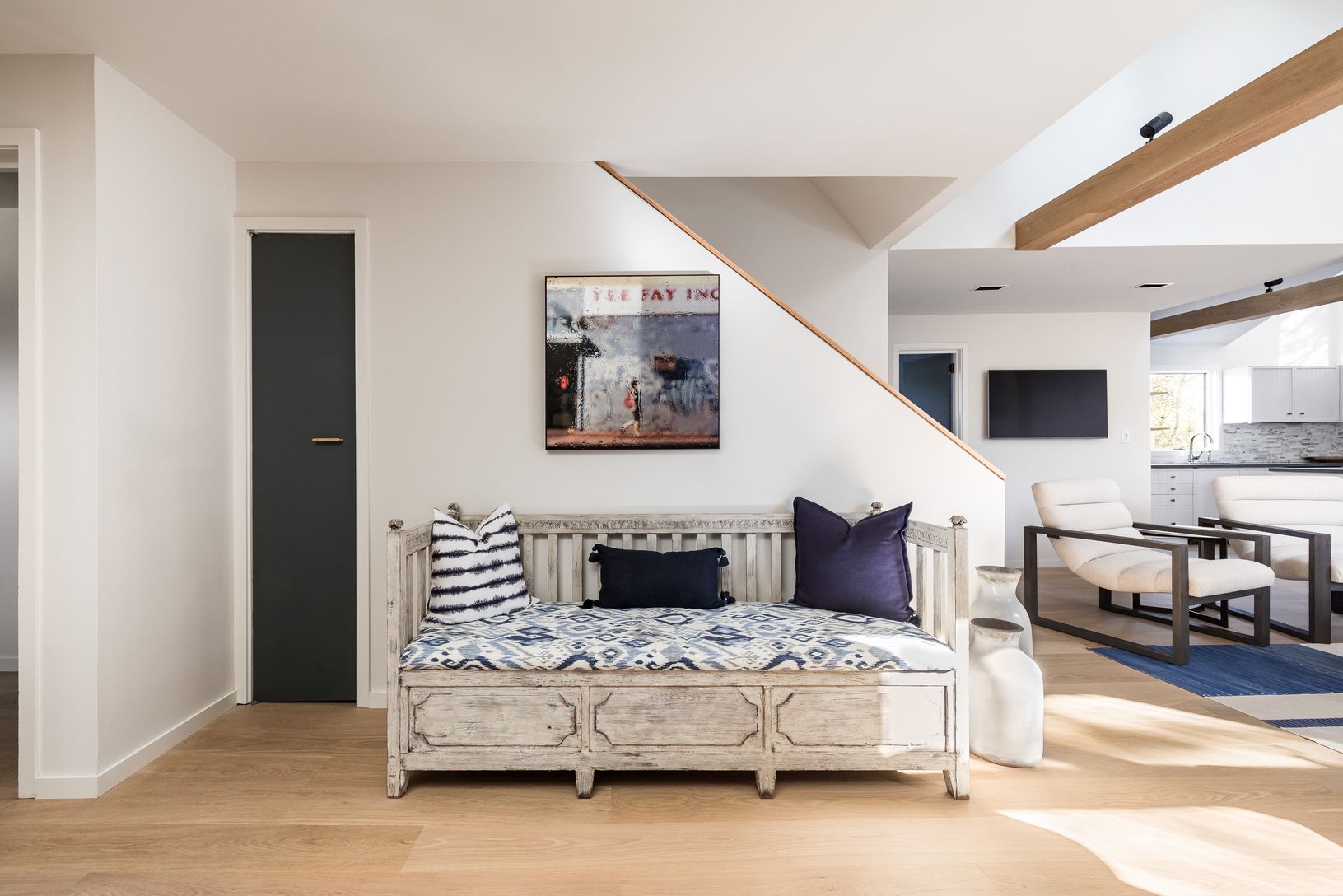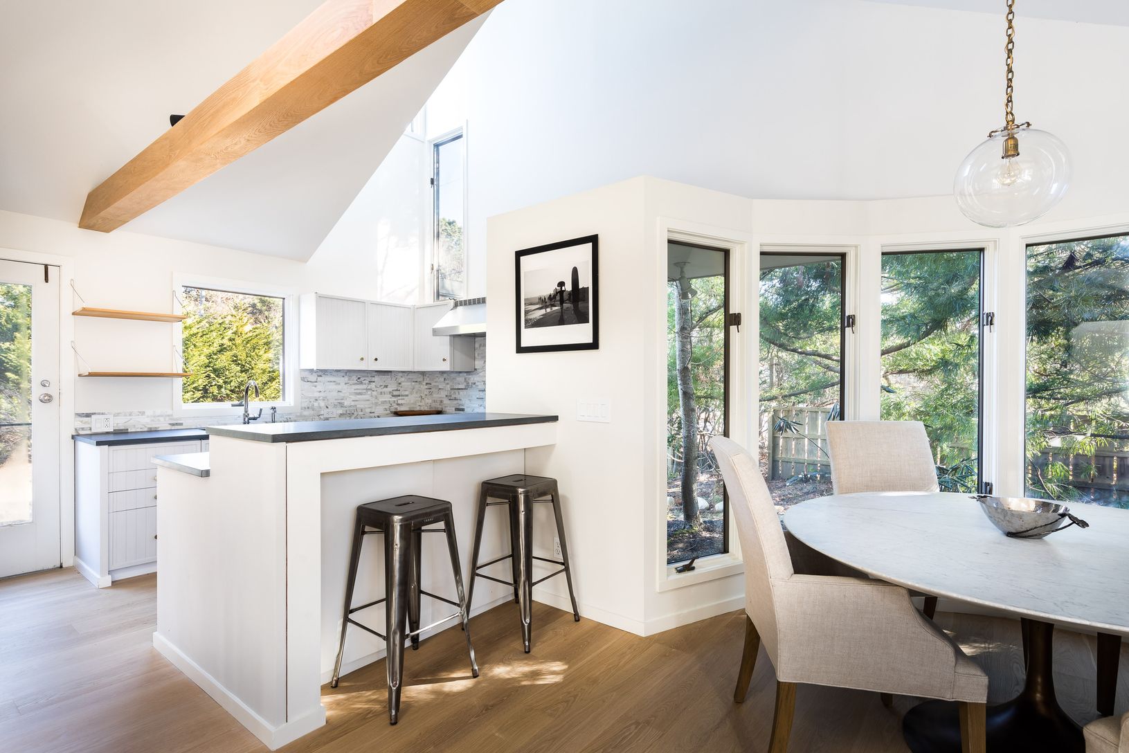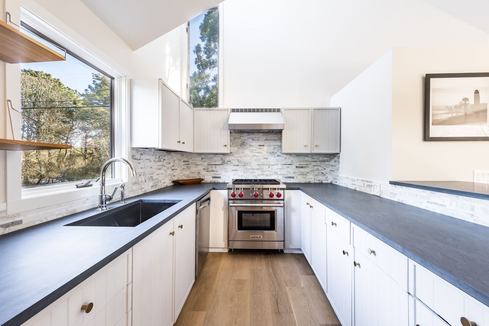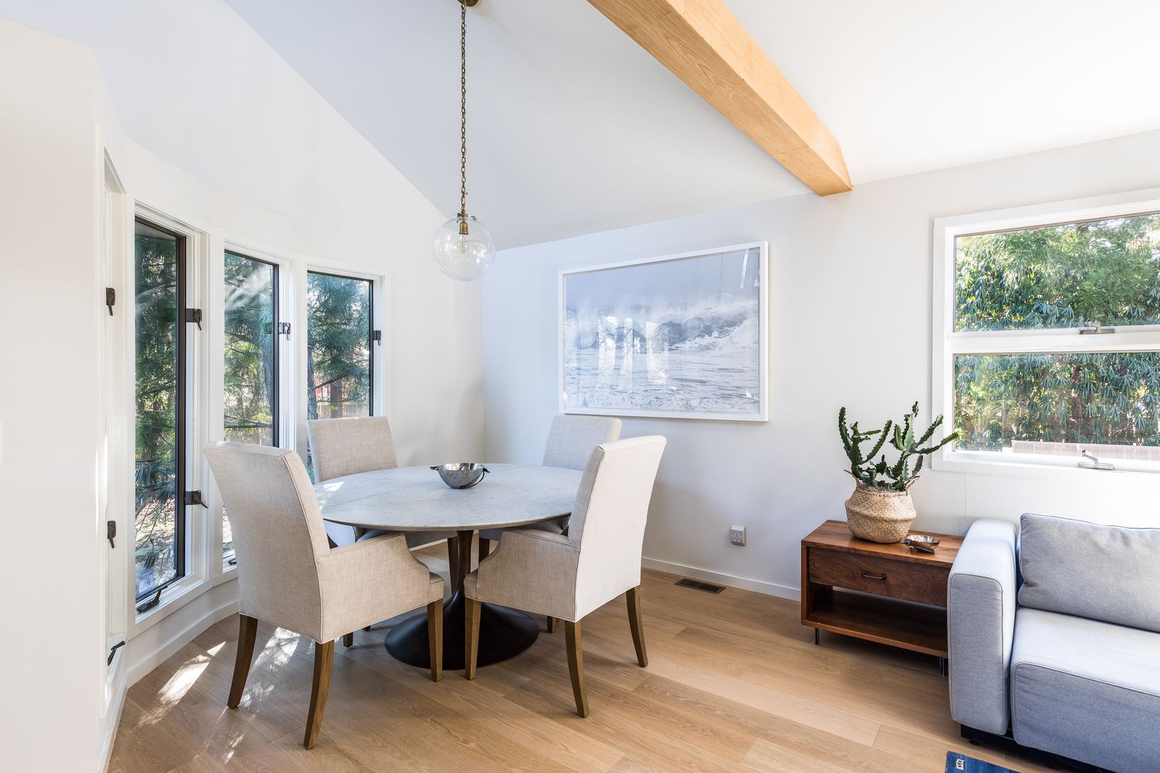 The ultimate chic beach retreat on a private road just one block from the ocean with its own neighborhood beach access. This 1500 square foot, 4-bedroom 2 full bath recently renovated home is bright and airy with ample outdoor entertaining space including a stone fire pit, terraced dining areas and shaded lounge. Mature blooming rhododendrons and evergreens add color and privacy to the teak gated .23 acre property on a corner lot. A first-floo