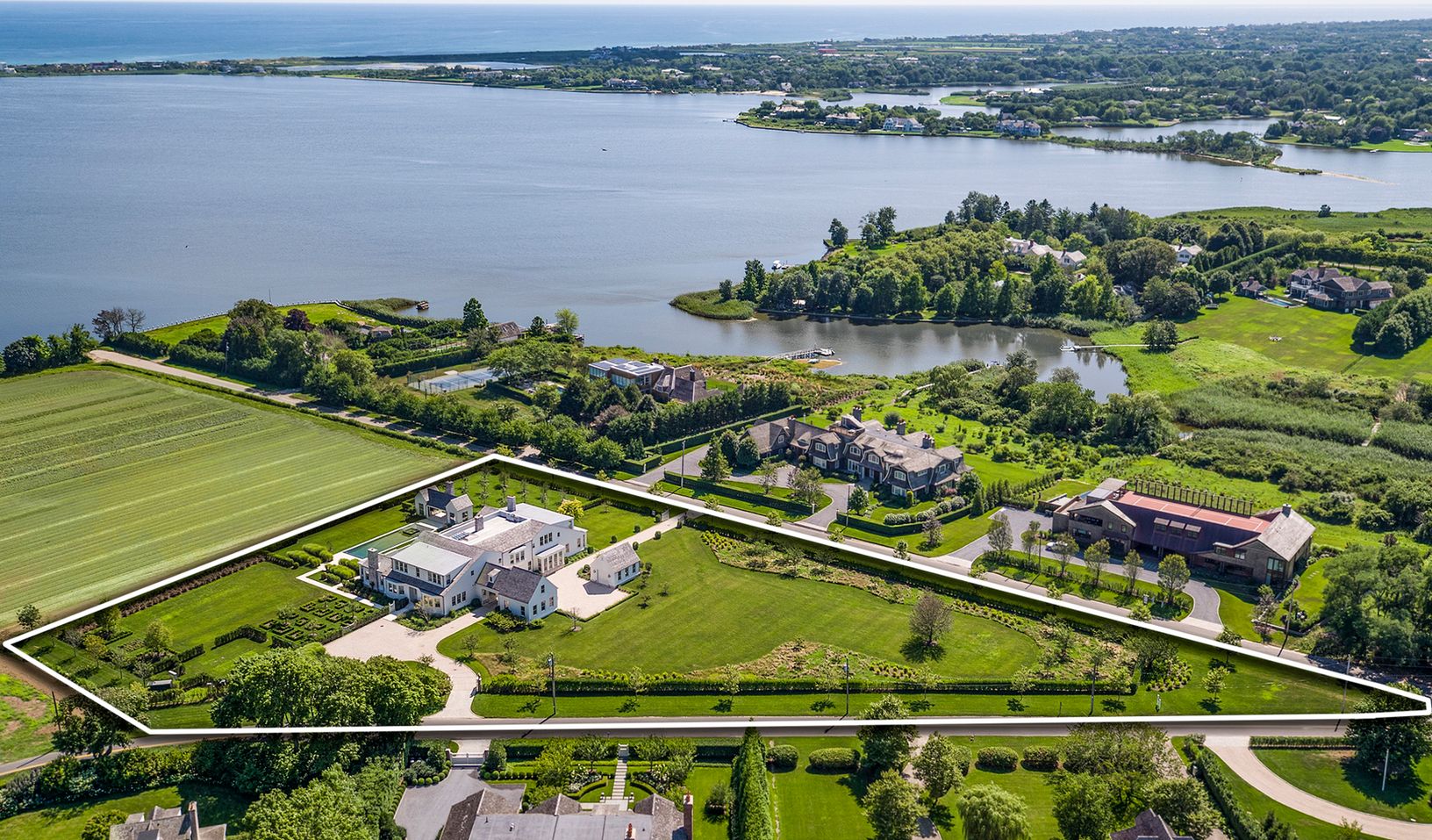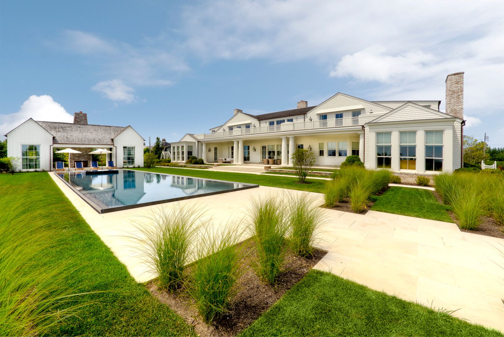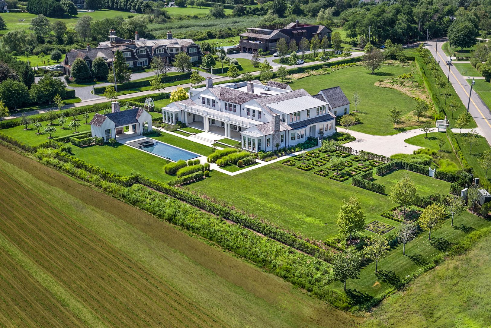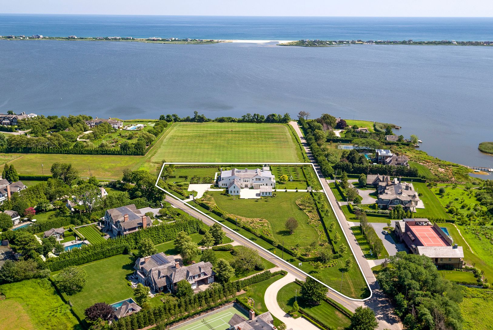 This south of the highway mansion in Water Mill with bay and ocean views, created by the 2014 HC&G Innovation in Design Award winner James Michael Howard, has it all. It features 12,000+/- sq ft of living space, architecture by Peter Block, and sits on a vast 3+/- acre parcel approximately 200 yards from the water. The grand foyer has wonderful inlaid stone patterned floors which lead into the Stair Hall with a custom staircase in a two-st