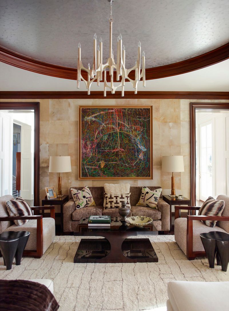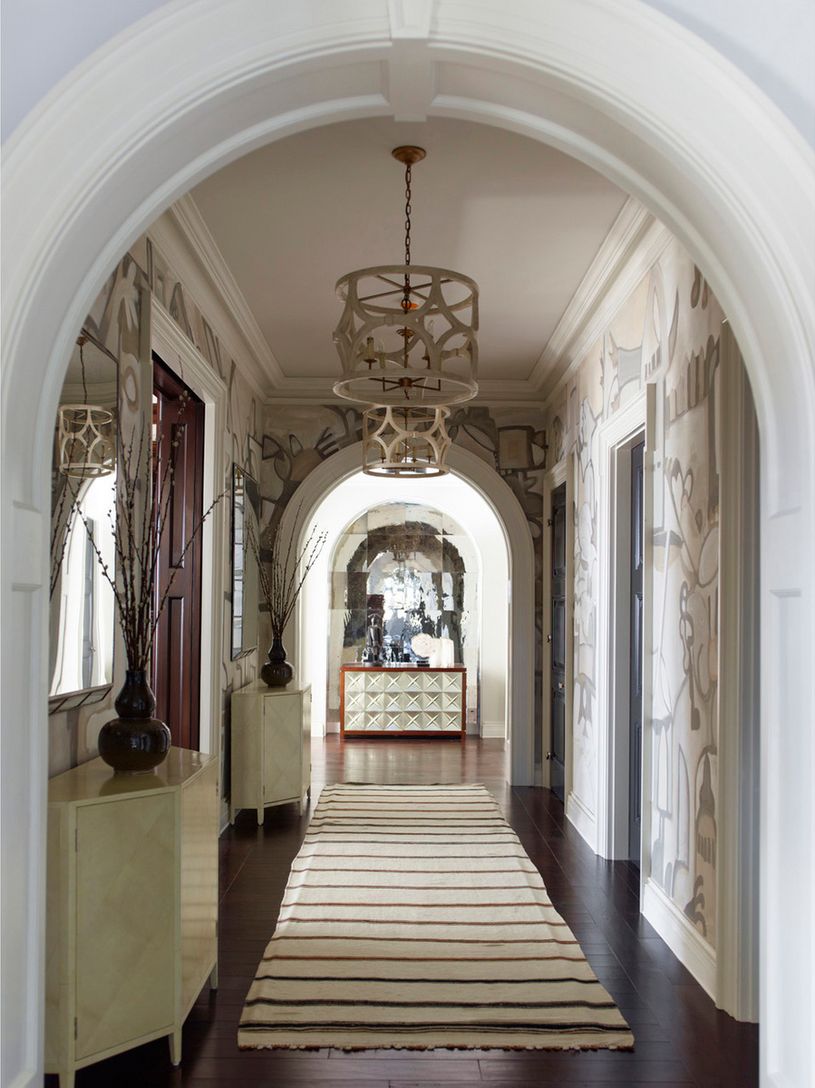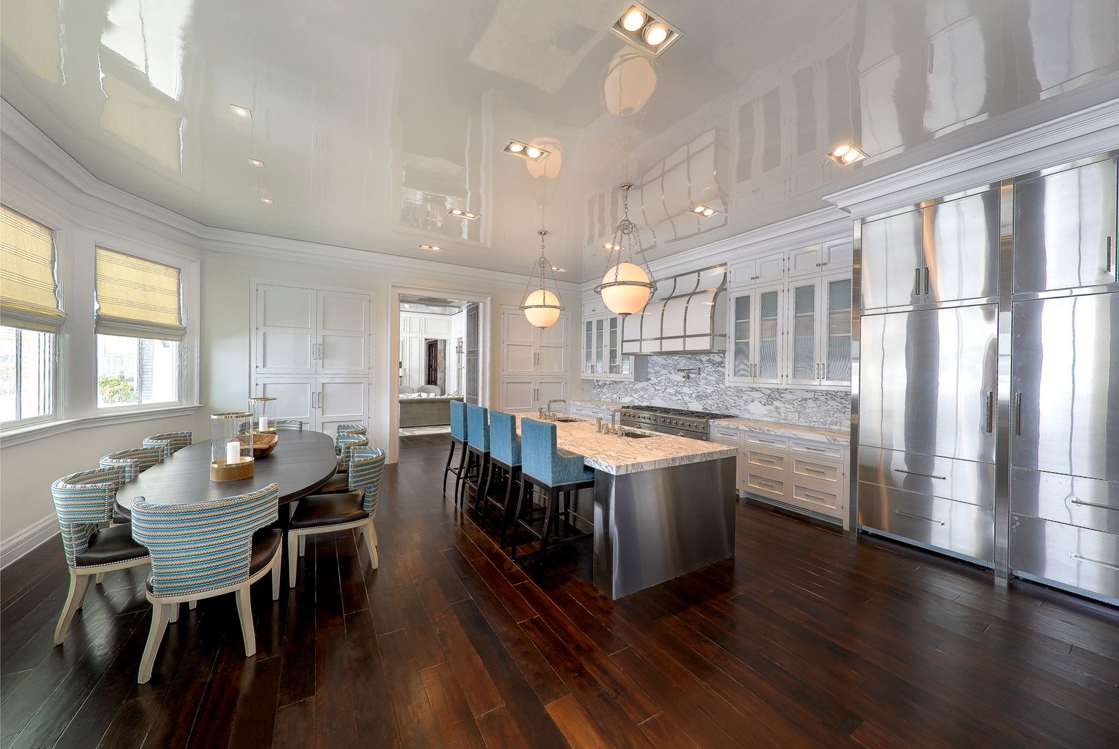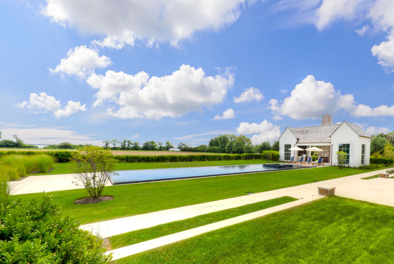This south of the highway mansion in Water Mill with bay and ocean views, created by the 2014 HC&G Innovation in Design Award winner James Michael Howard, has it all. It features 12,000+/- sq ft of living space, architecture by Peter Block, and sits on a vast 3+/- acre parcel approximately 200 yards from the water. The grand foyer has wonderful inlaid stone patterned floors which lead into the Stair Hall with a custom staircase in a two-st