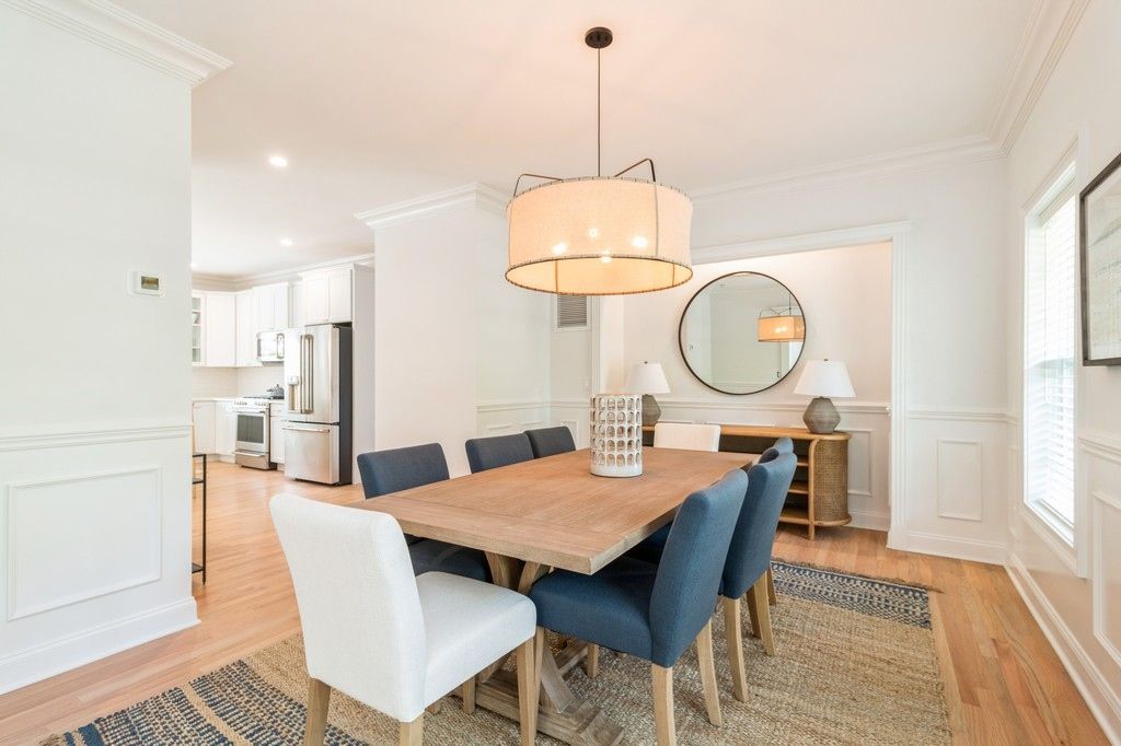This beautiful newly completed traditional home is now available for a year-round inhabitant. Located in the center of the Hamptons, close to shopping, restaurants, and the ocean, the house presents a great opportunity for anyone looking to enjoy the east end throughout all four seasons. There is a bright and airy feel to the house, which receives excellent exposure to sunlight throughout the day. On the first floor the kitchen is open to a