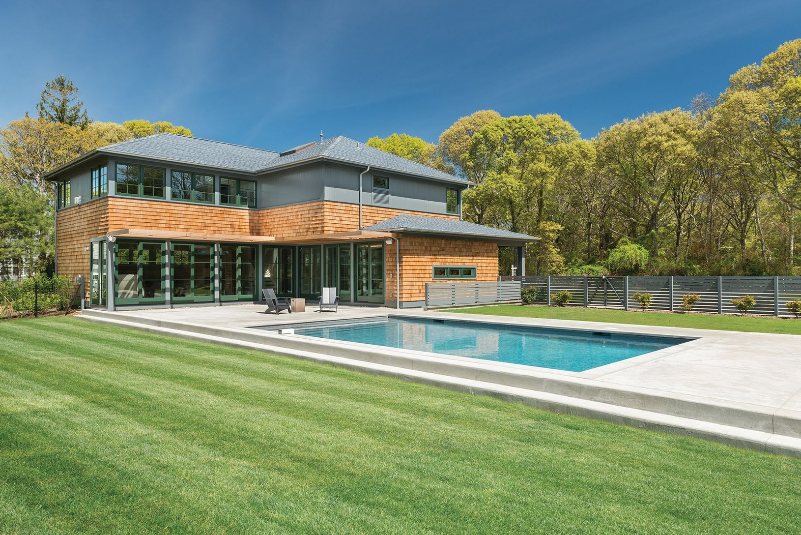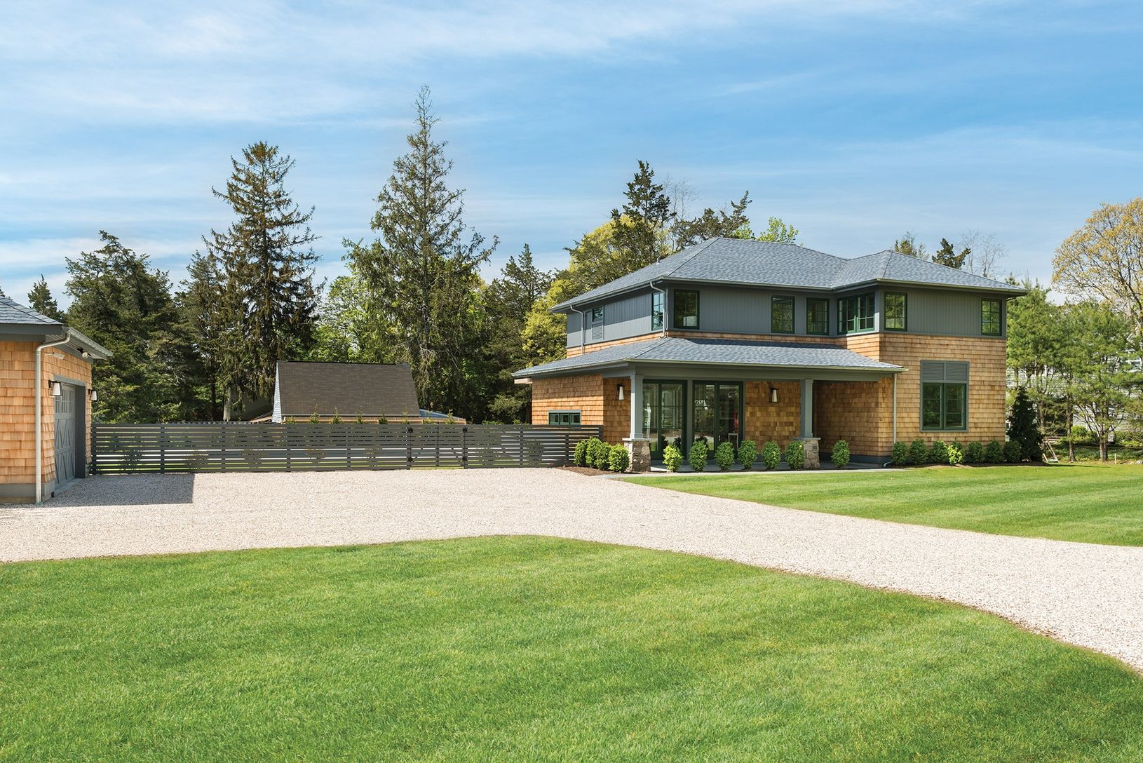 This newly completed five bedroom, four bath residence created by the renowned team of Jeff Gardner Construction and CCS Architecture is just 500 feet from beach access to the gentle waters, barrier islands and natural beauty of the Towd Point estuary. Set on a cleared and open half-acre, the home is an attractive modern interpretation of the Arts and Crafts style, with cedar shingle exteriors, generous eave overhangs and welcoming porches. In
