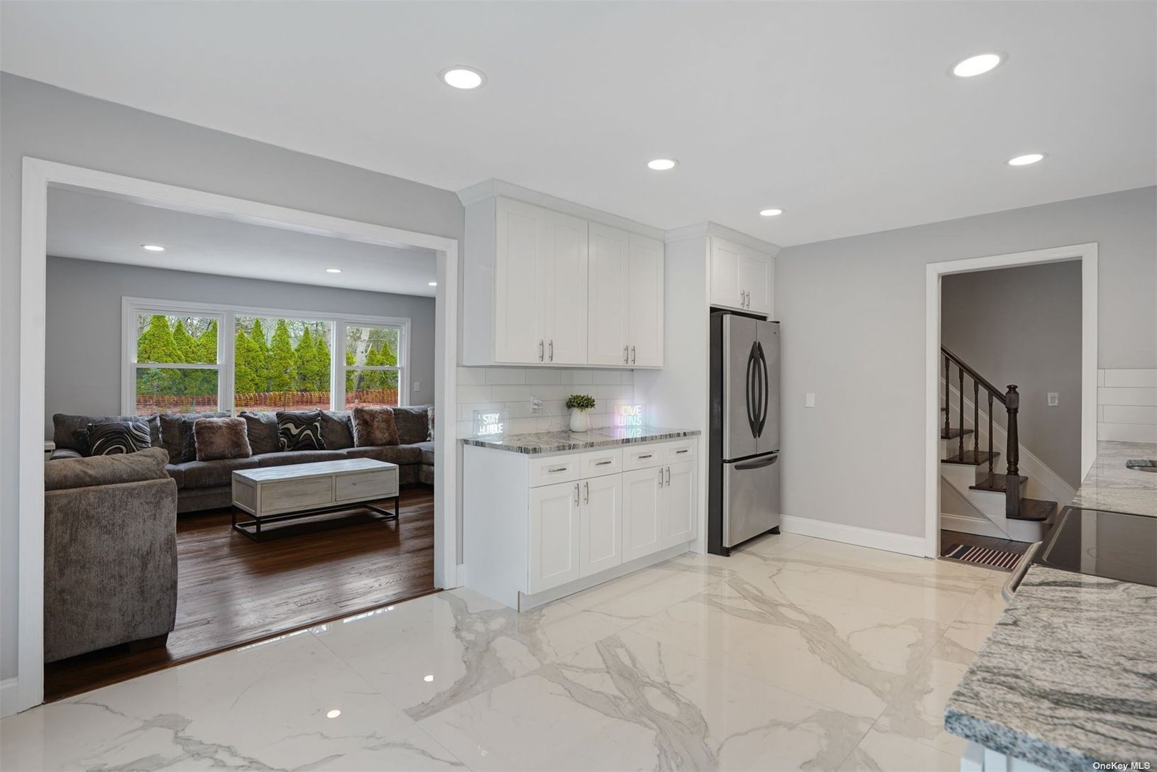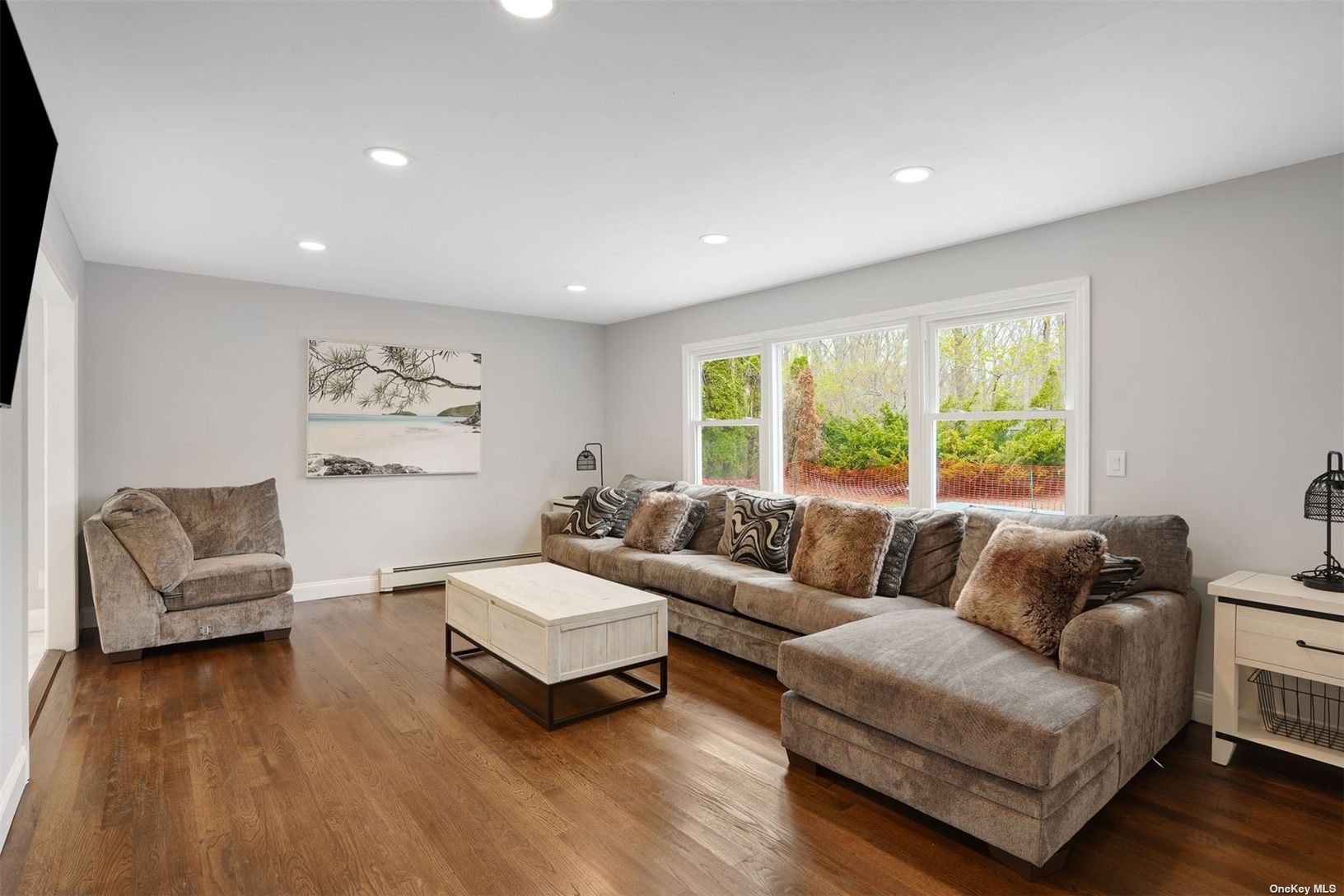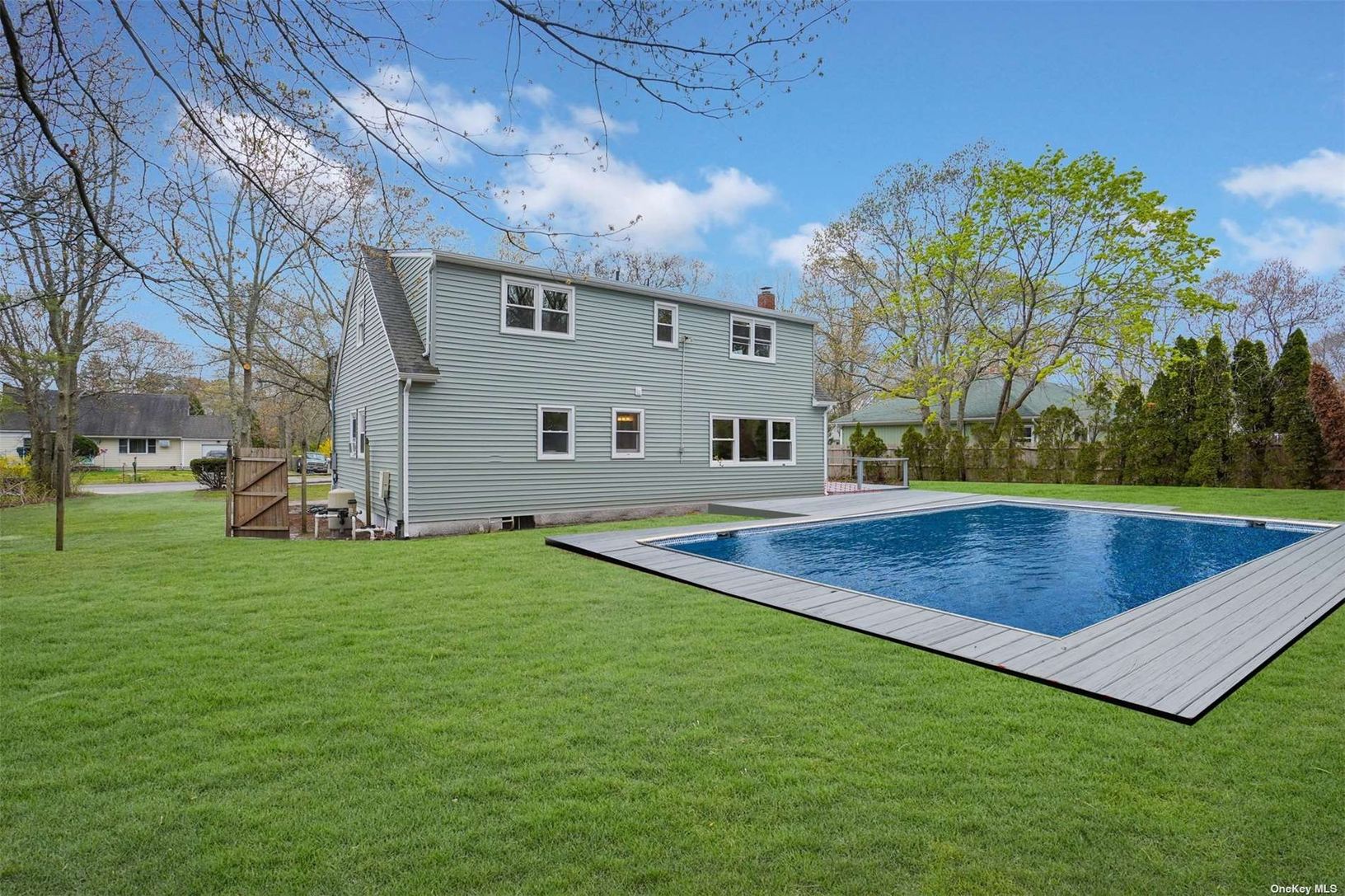 Looking for an updated designer two story ranch home that sits a close distance to Shinnecock Bay and it's storybook views? You are in the right place! Inside, the main level boasts two large bedrooms, full bathroom, a brand new kitchen, living room/ dinning room, two car garage and sliders leading to a gorgeous in-ground pool with a brand new liner and filter system. Upstairs has two more bedrooms including the master with another full bathro