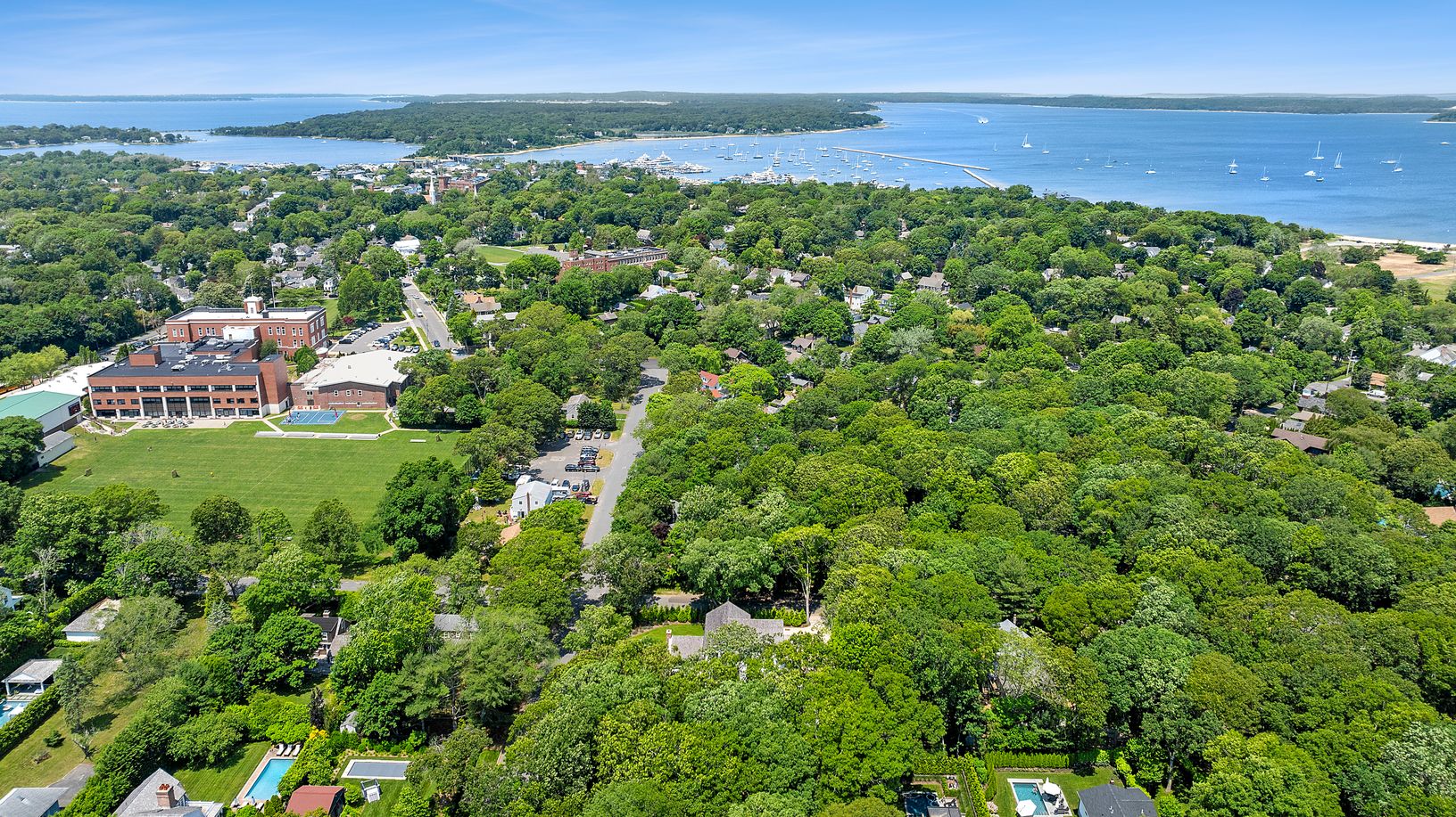 A newly completed modern farmhouse in the heart of Sag Harbor Village, this exceptional residence offers approximately 5,500 square feet of thoughtfully designed living space. Set on over half an acre on a desirable corner lot with rare, level topography, the property presents remarkable flexibility for indoor and outdoor living. The home features five bedrooms and seven bathrooms, complemented by a two-car attached garage, a heated Gunite poo