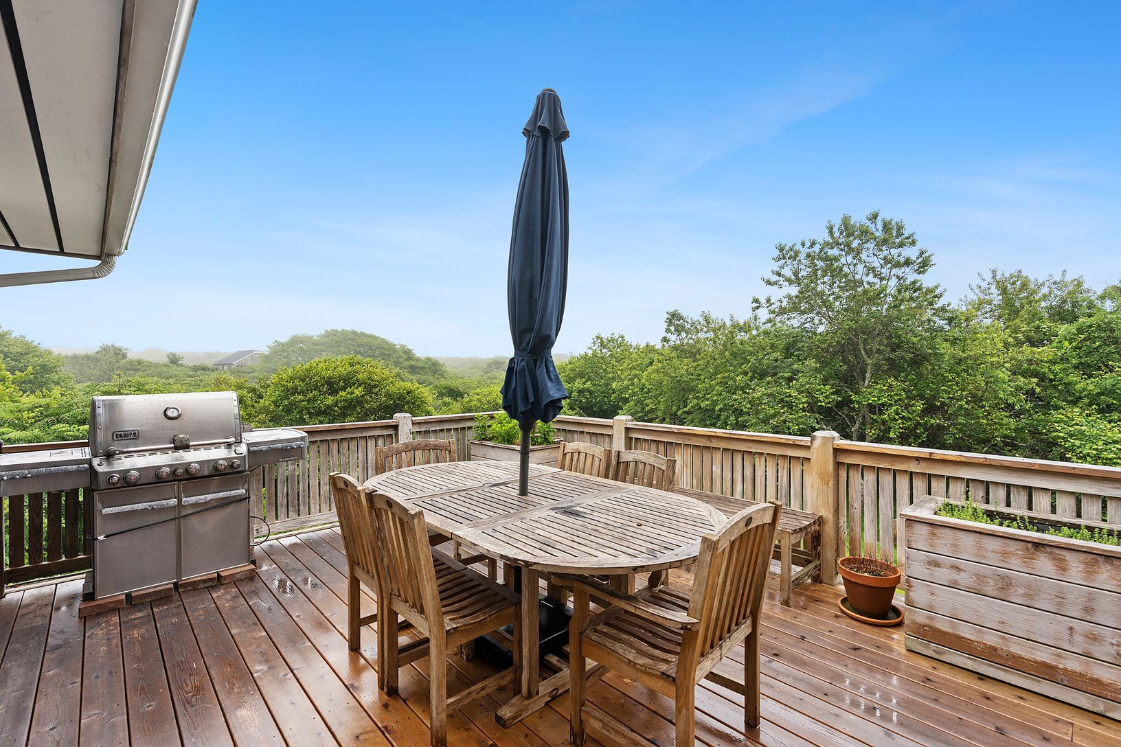 Just over a quarter of a mile from beach access and minutes from Montauk's vibrant town center, this home offers exceptional living in a prime coastal location. Thoughtfully designed with an upside-down layout, the upper level features a bright and spacious living area with a cozy wood-burning stove, seamlessly flowing into an open-concept kitchen and dining space-perfect for entertaining. This floor also includes a den, a powder room, and a d