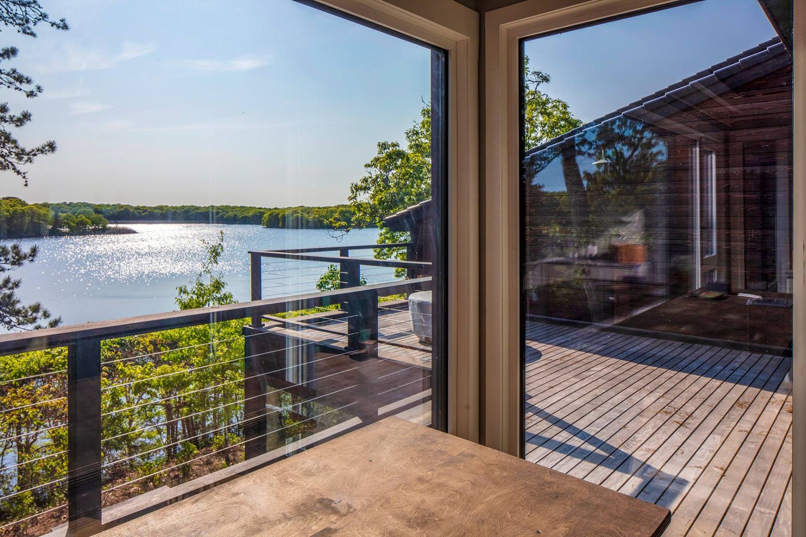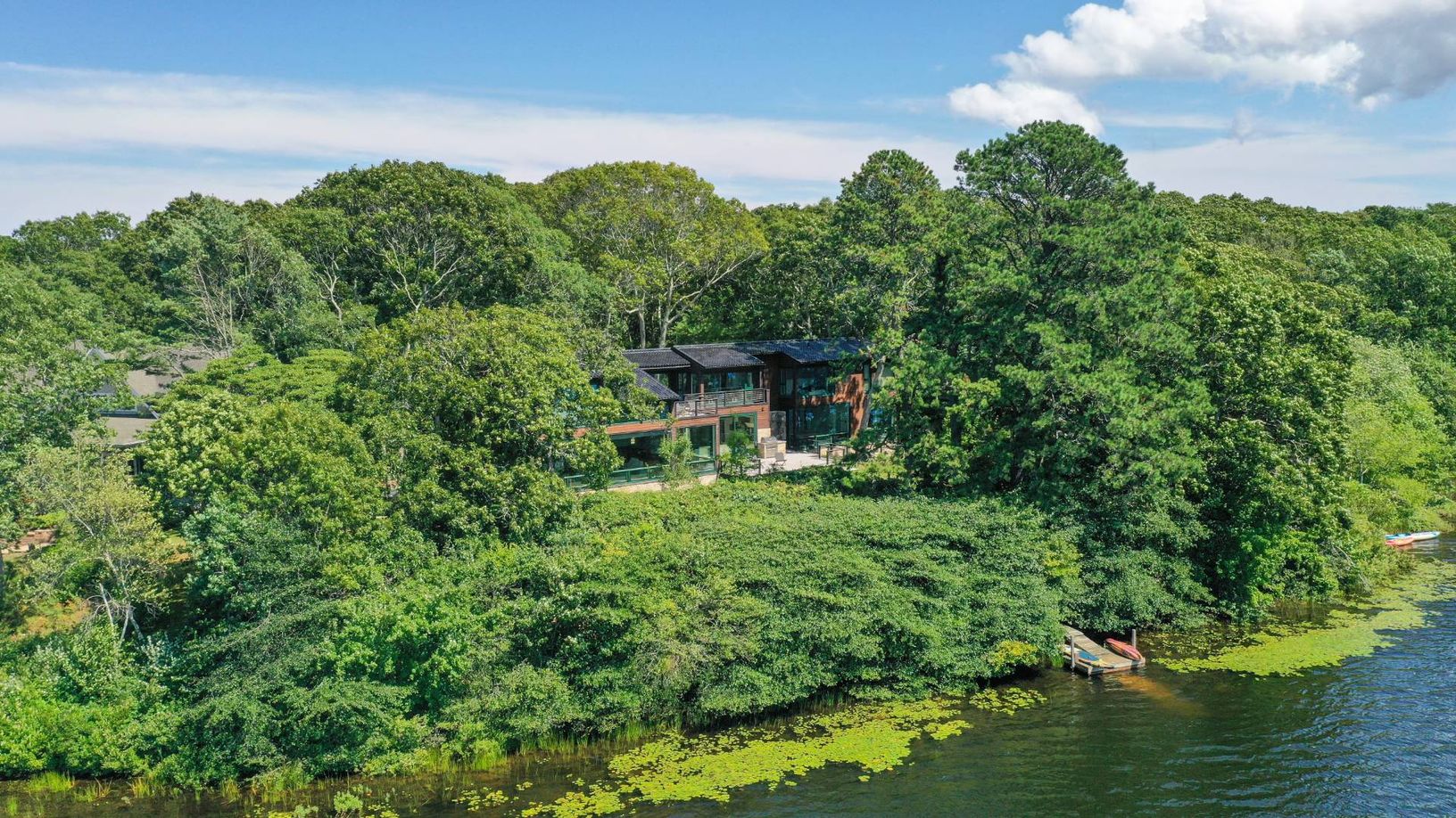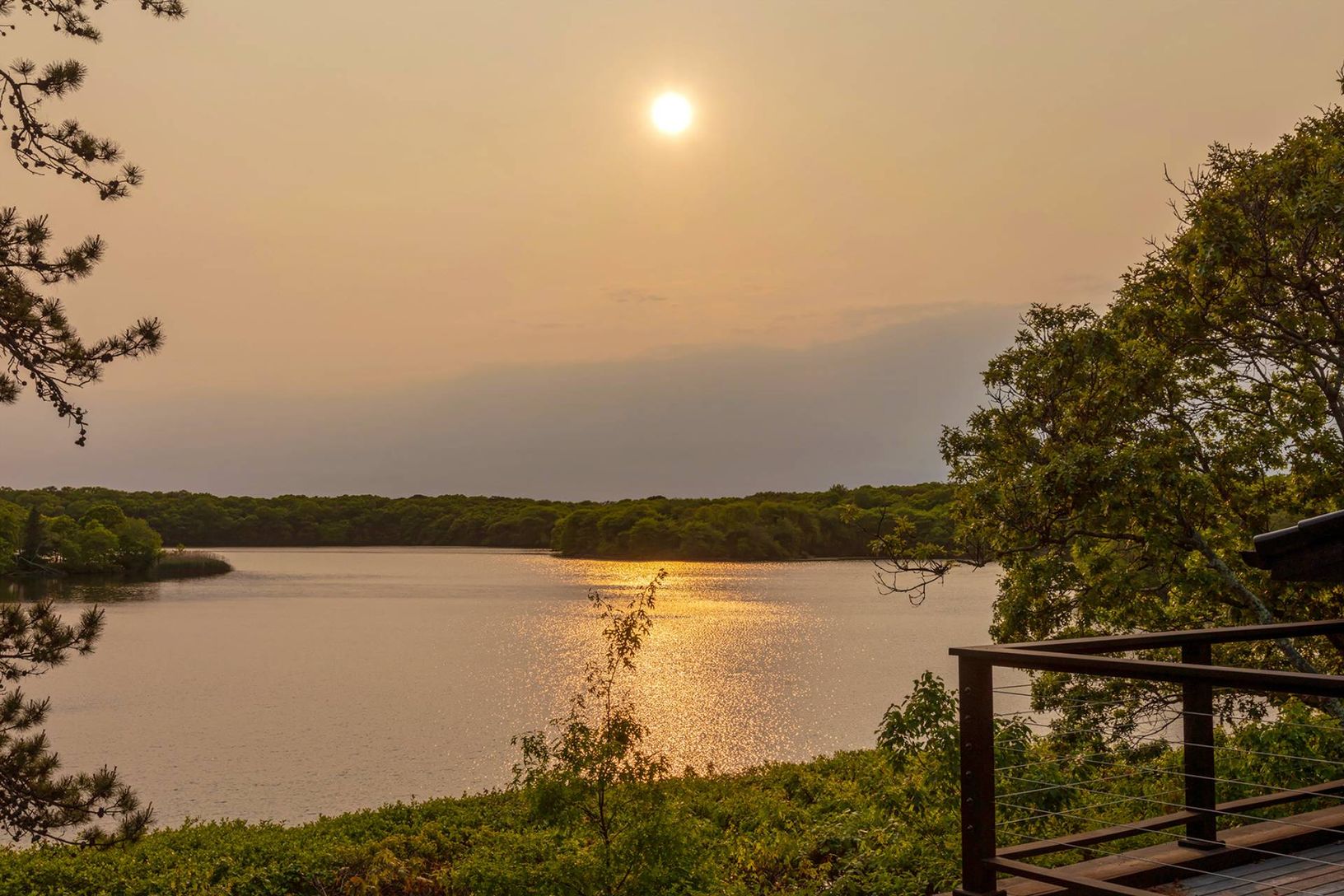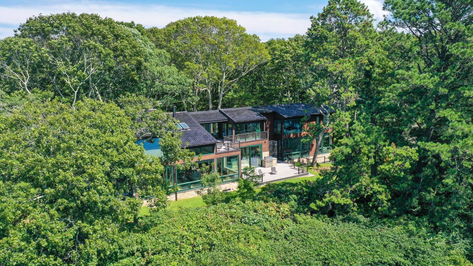 Architecturally stunning and exceptionally private, this unique Hamptons home abutts over 200 acres of pristine nature in your backyard, including the 85-acre Big Fresh Pond and 135-acre reserve, the property offers direct access to swimming, kayaking, fishing, and hiking. The home spans 6,000 +/- sq. ft. of sophisticated living space across three levels, all accessible via a convenient passenger elevator. Privacy, peace, and sweeping sunset v