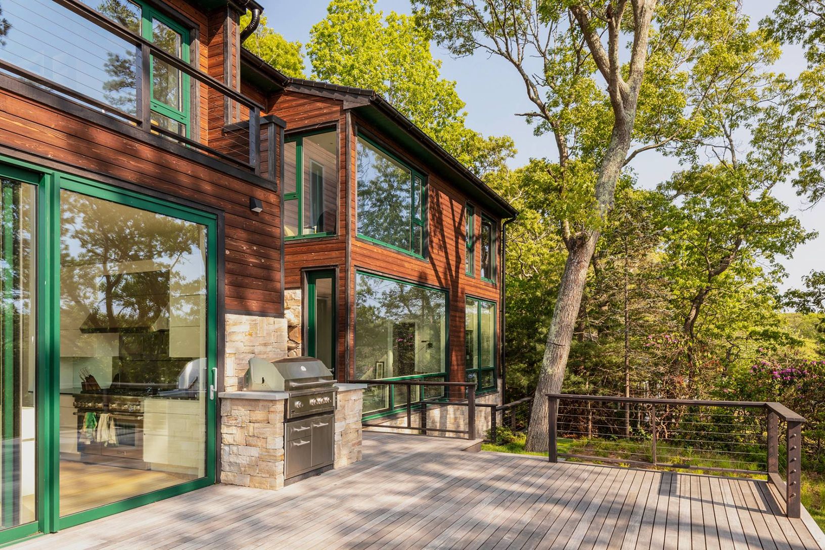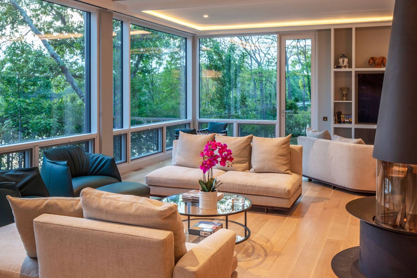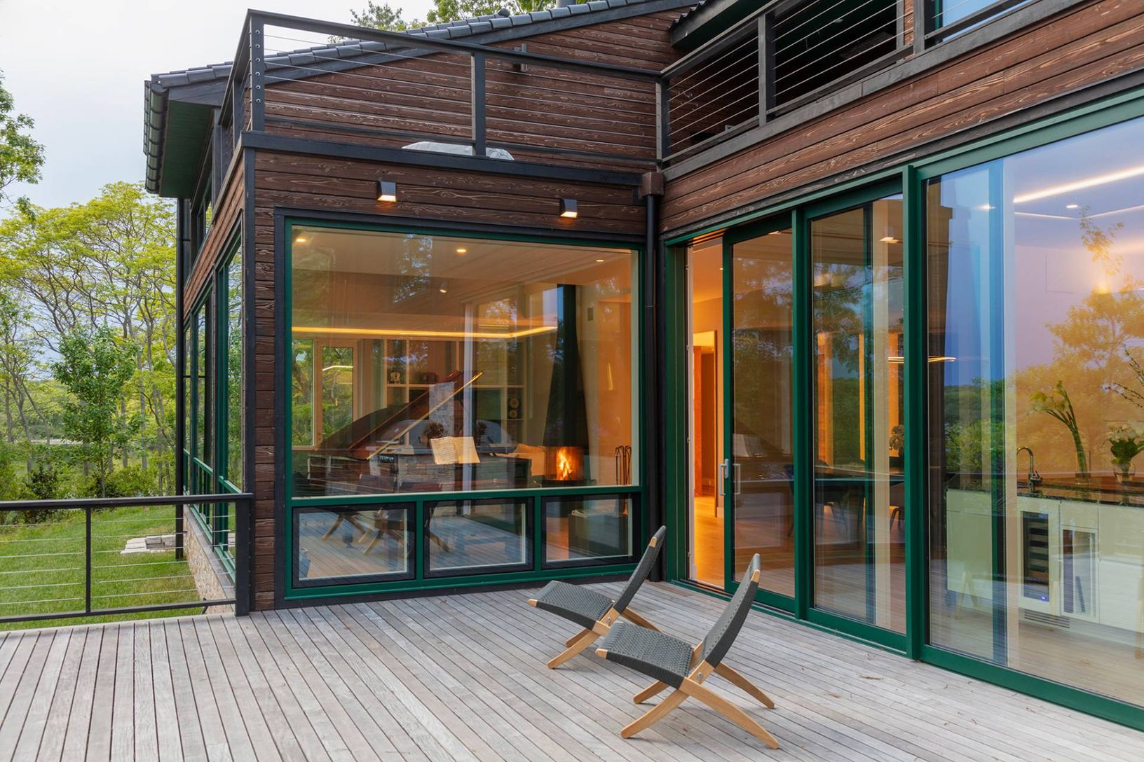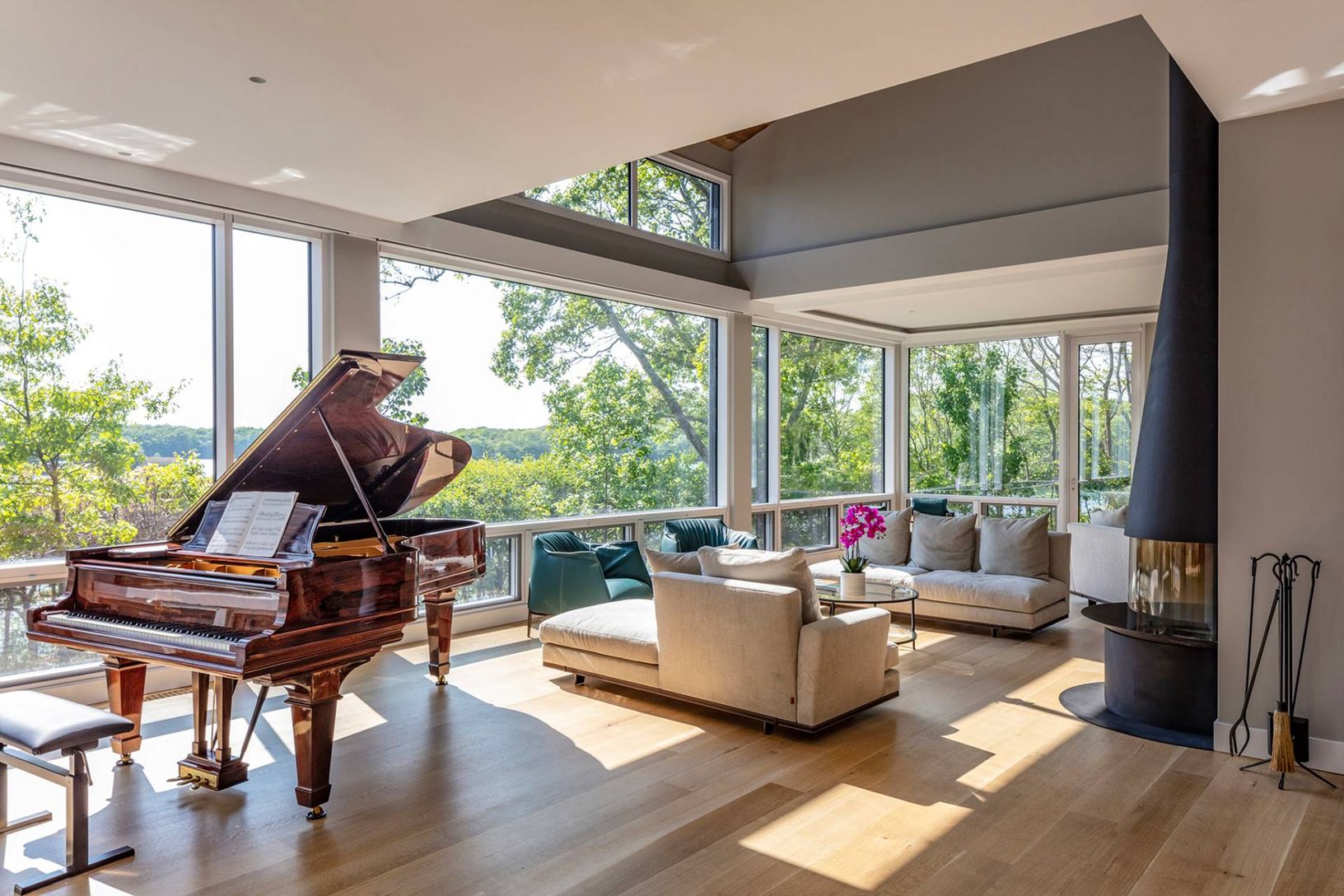 Architecturally stunning and exceptionally private, this unique Hamptons home abutts over 200 acres of pristine nature in your backyard, including the 85-acre Big Fresh Pond and 135-acre reserve, the property offers direct access to swimming, kayaking, fishing, and hiking. The home spans 6,000 +/- sq. ft. of sophisticated living space across three levels, all accessible via a convenient passenger elevator. Privacy, peace, and sweeping sunset v