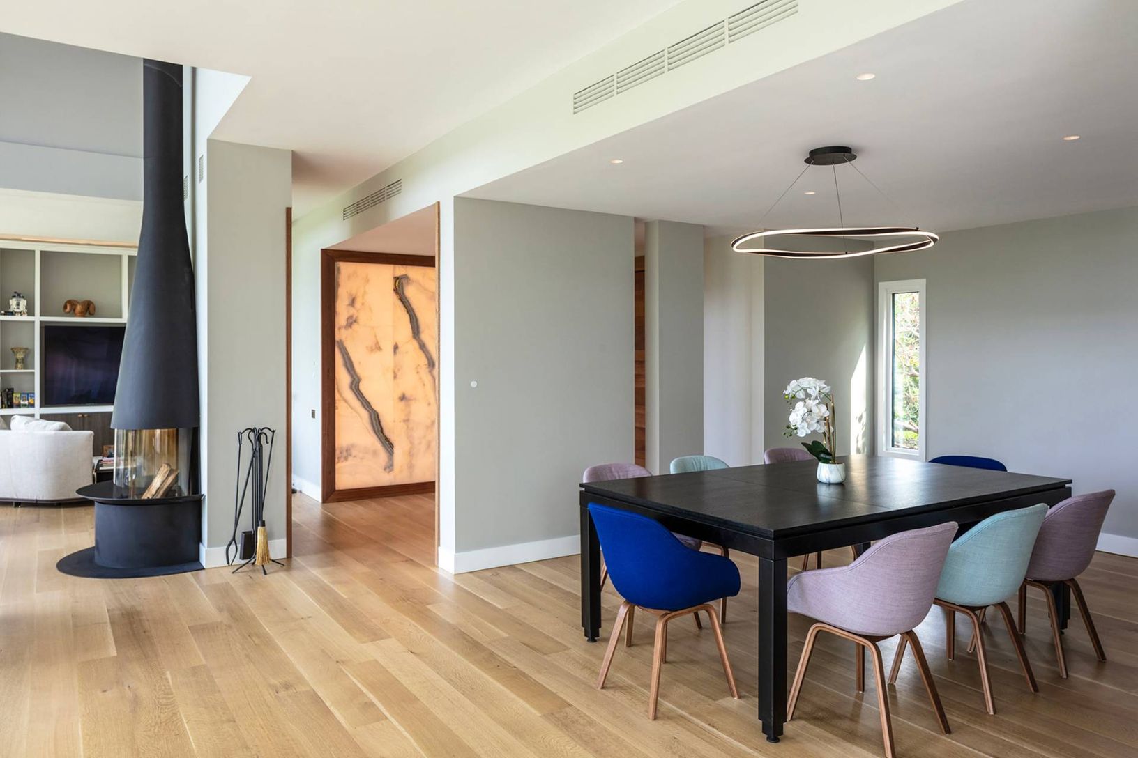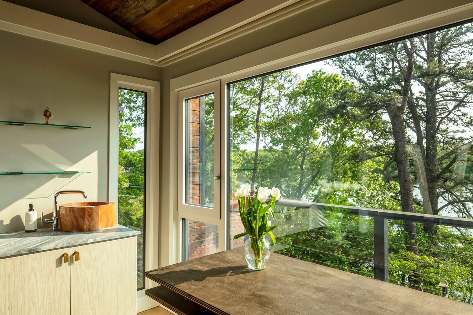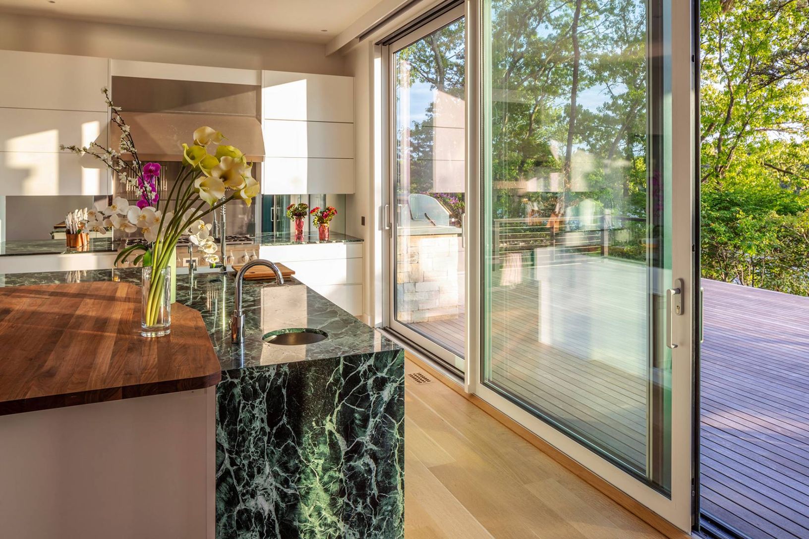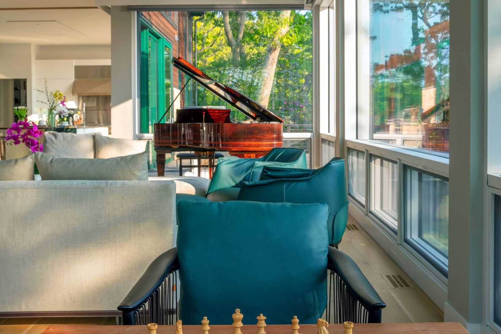Architecturally stunning and exceptionally private, this unique Hamptons home abutts over 200 acres of pristine nature in your backyard, including the 85-acre Big Fresh Pond and 135-acre reserve, the property offers direct access to swimming, kayaking, fishing, and hiking. The home spans 6,000 +/- sq. ft. of sophisticated living space across three levels, all accessible via a convenient passenger elevator. Privacy, peace, and sweeping sunset v