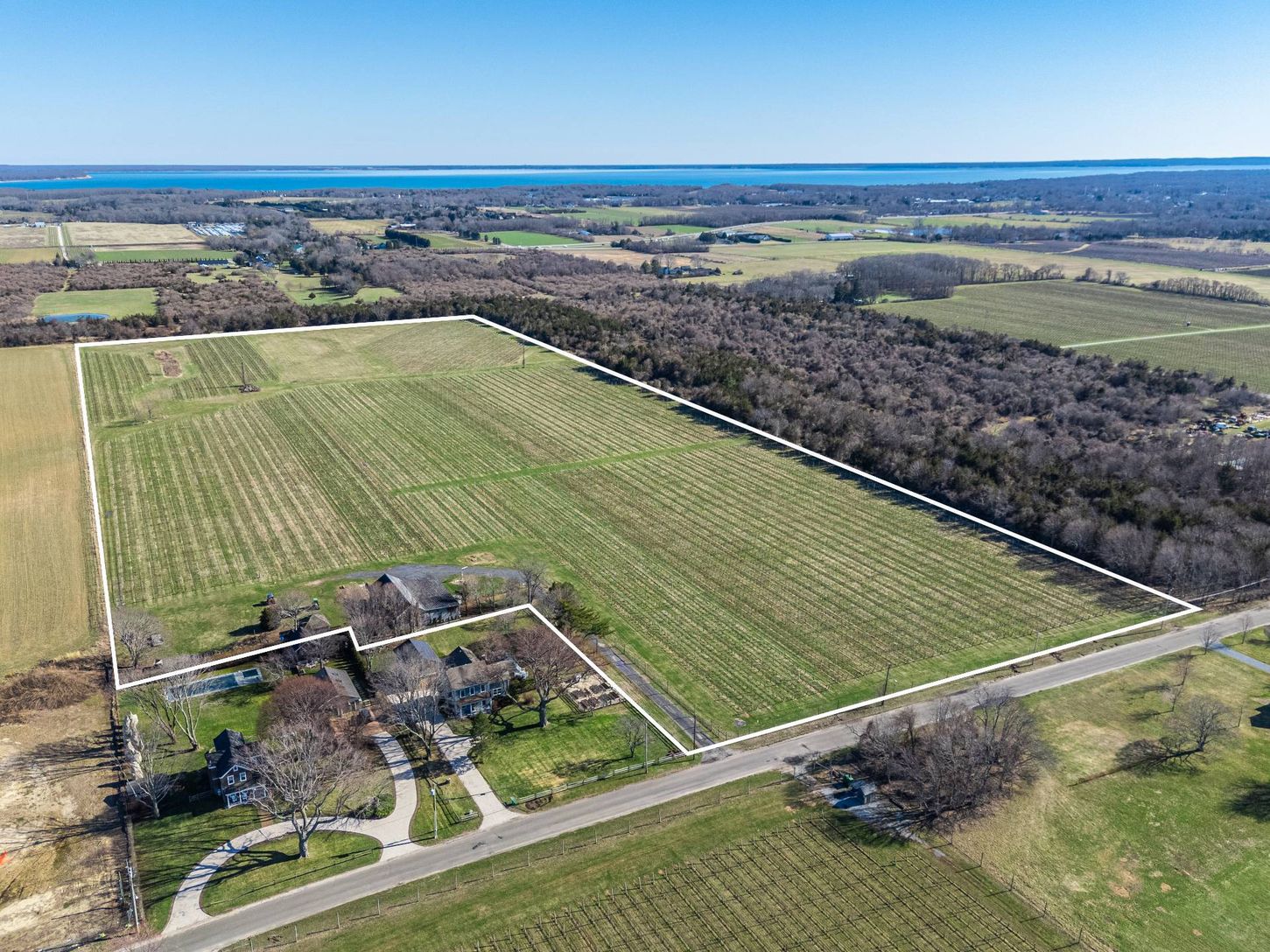 An exceptional North Fork opportunity with scale, pedigree, and a clear path forward. 4100 Oregon Road spans approximately 33 acres in the heart of Cutchogue, combining established viticulture with a rare, rights-retained parcel on a prime stretch of Oregon Road. The estate includes approximately 31 acres with development rights sold to the Town of Southold (preserved), plus 2 acres with retained rights. The rights-retained parcel measures app