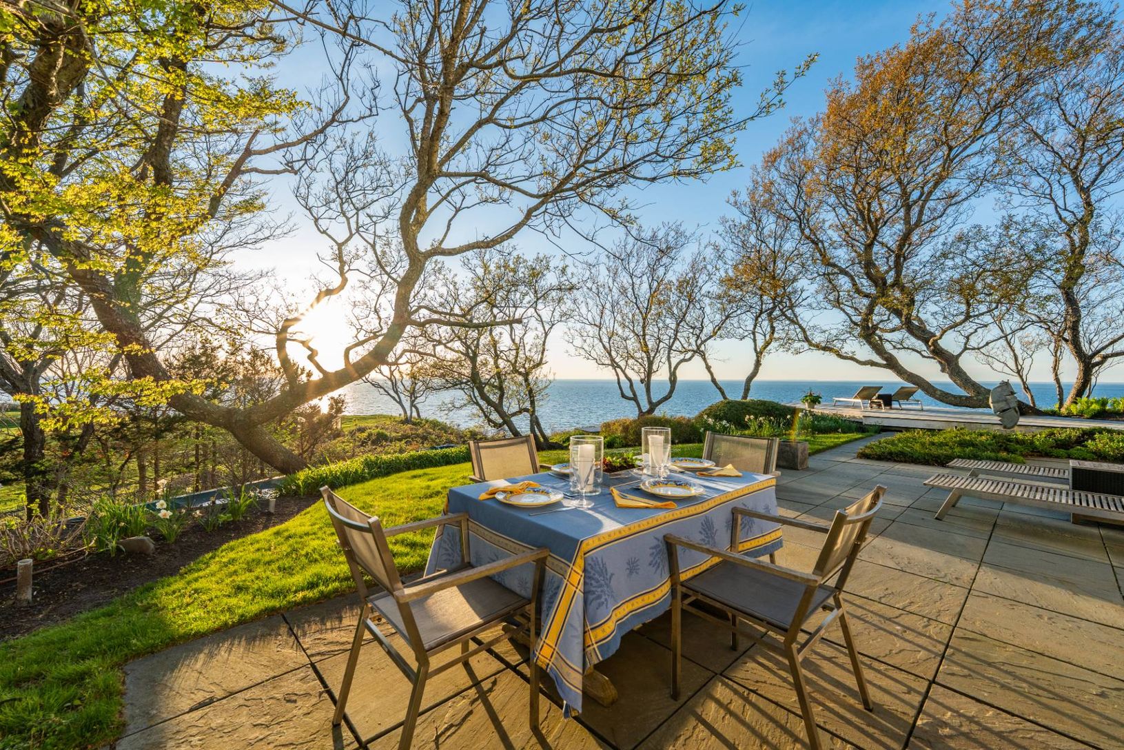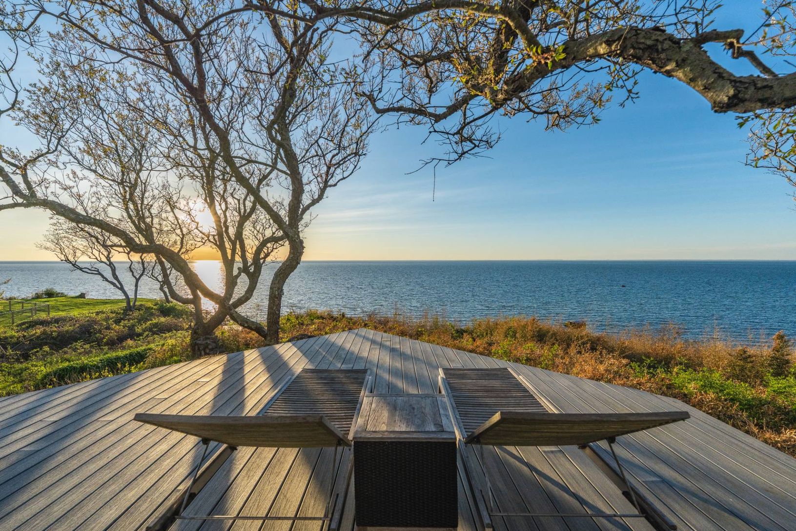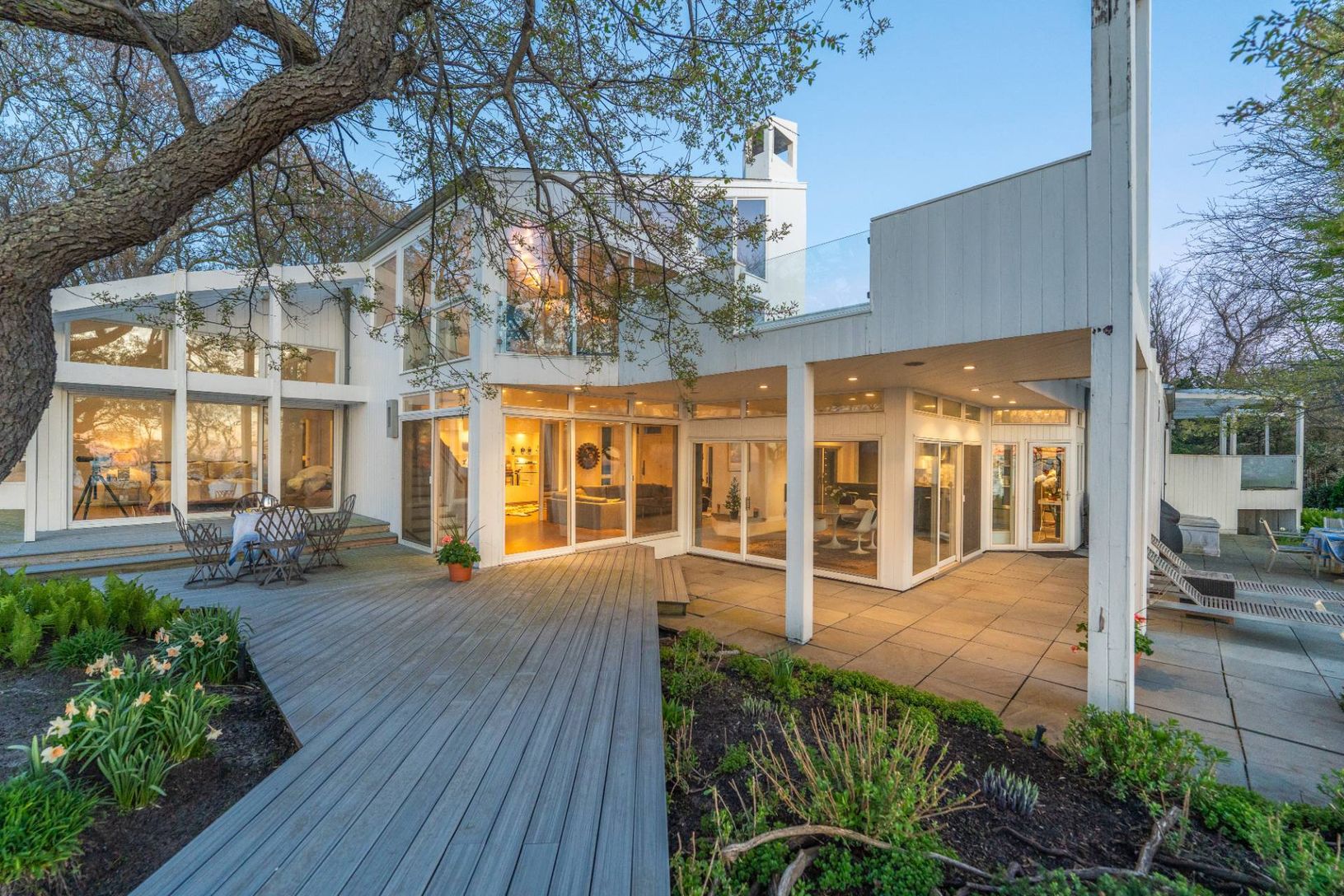 Perched on a 100-foot-high bluff with commanding views of Long Island Sound, this exceptional 3 + bedroom, 5 bath contemporary home is a rare fusion of design, privacy, and natural beauty. Originally designed and built in 1986 by architect Sanford Hanuer for his own use, the 3,348 sq ft residence was completely reimagined in 2011, preserving its architectural integrity while introducing luxurious modern updates. Set on 2.45 acres with 190 feet