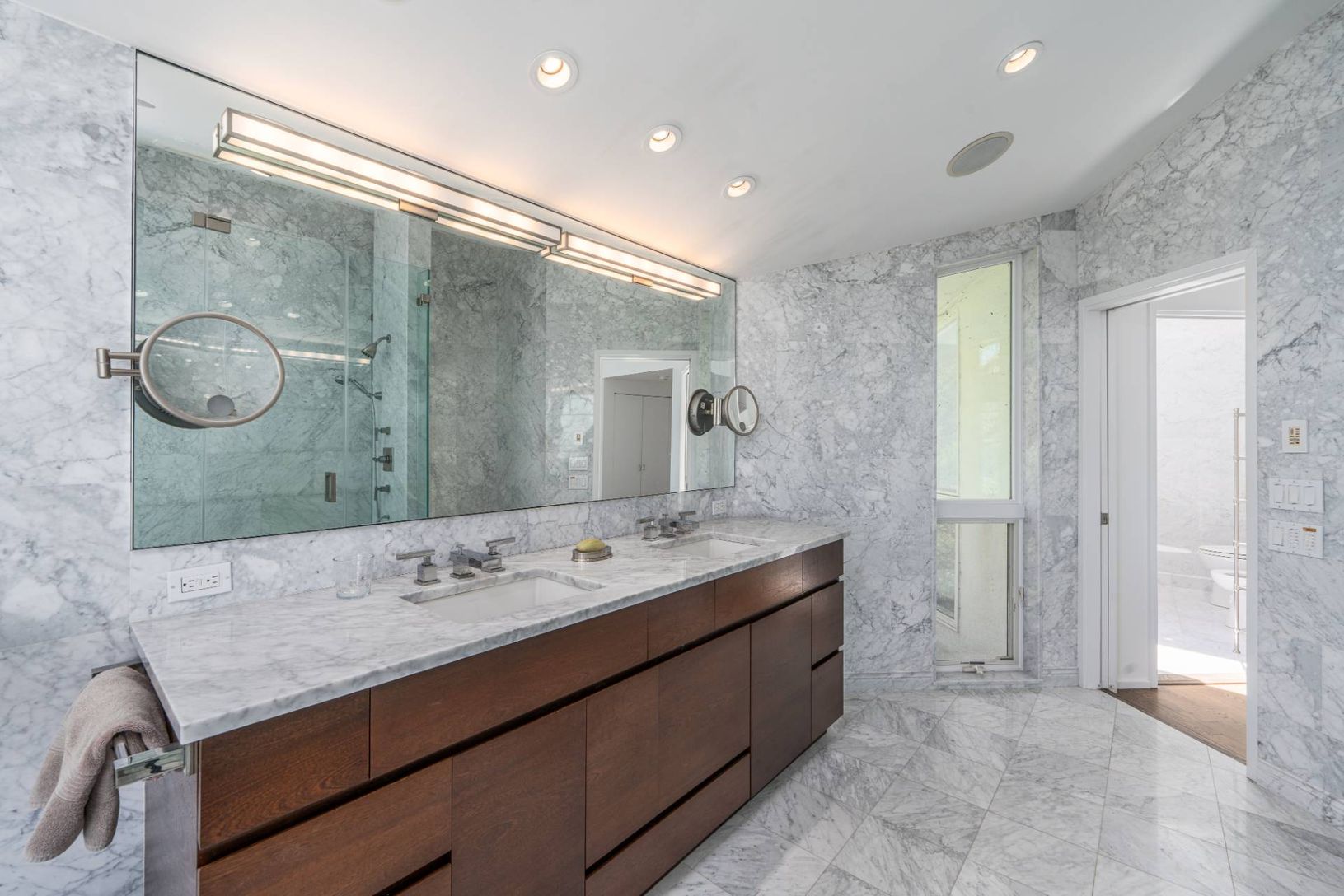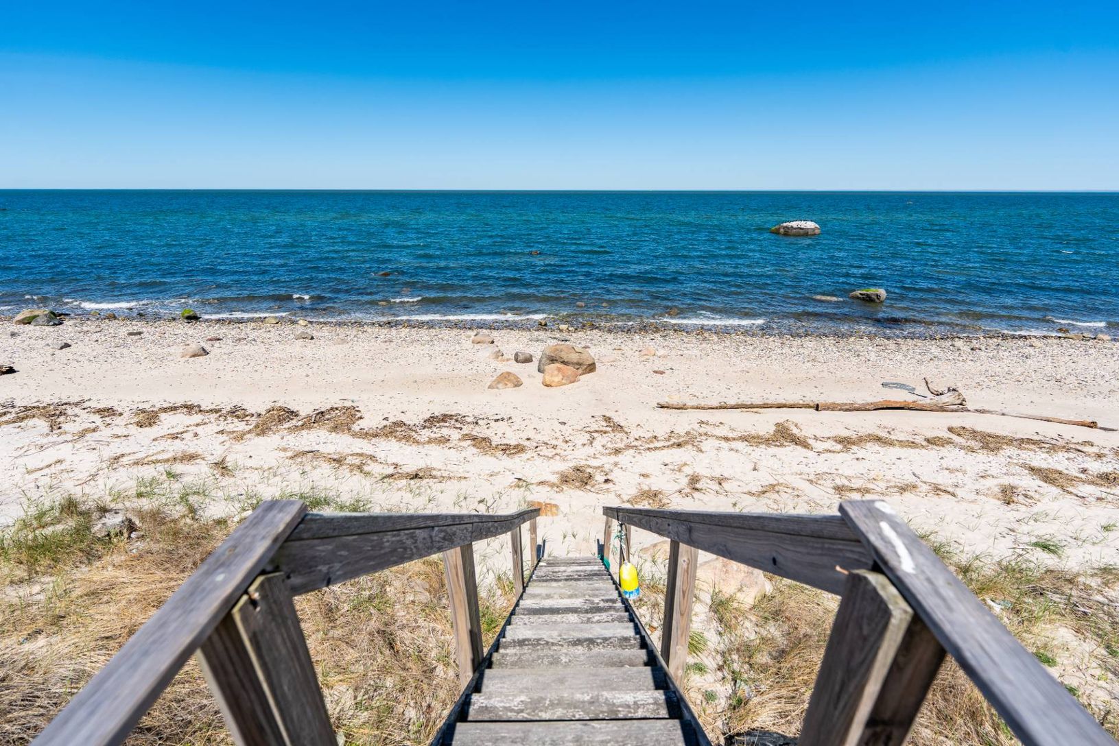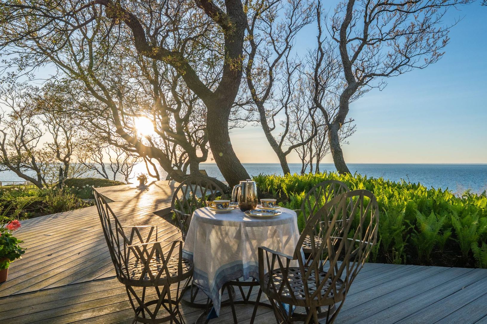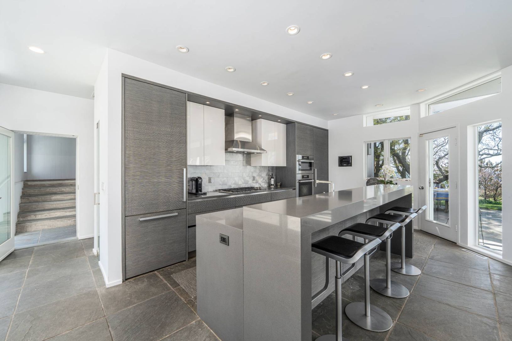 Perched on a 100-foot-high bluff with commanding views of Long Island Sound, this exceptional 3 + bedroom, 5 bath contemporary home is a rare fusion of design, privacy, and natural beauty. Originally designed and built in 1986 by architect Sanford Hanuer for his own use, the 3,348 sq ft residence was completely reimagined in 2011, preserving its architectural integrity while introducing luxurious modern updates. Set on 2.45 acres with 190 feet