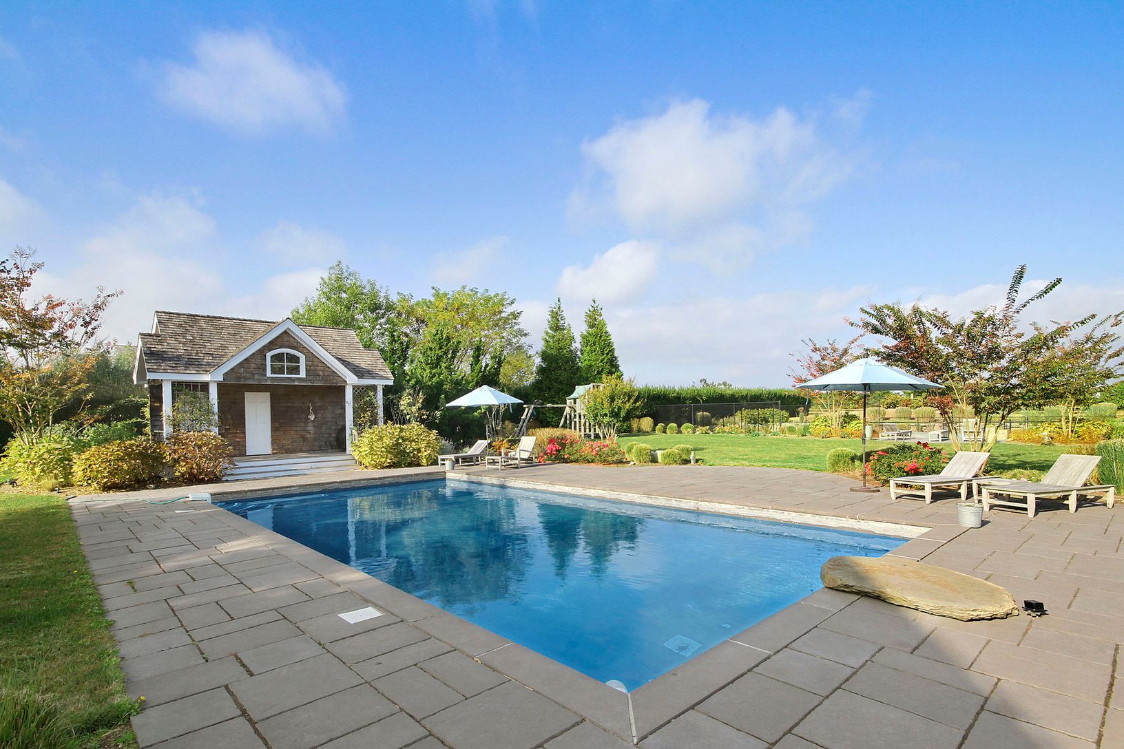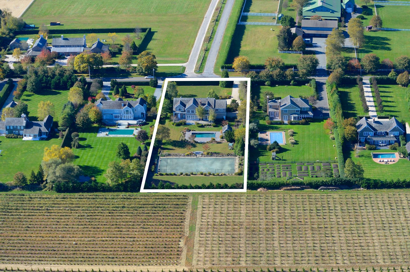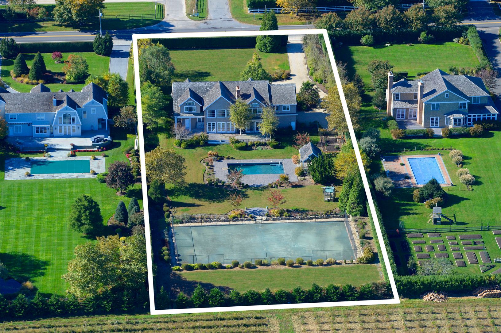 Overlooking a 32-acre reserve, on prestigious Mitchells Lane, resides this 6-bedroom Traditional with a heated Gunite pool, pool house and sunken Har-Tru tennis court. Built in 2000, the 5,500 sf Hamptons home features a double-height great room with fireplace, formal dining, gourmet kitchen with Viking appliances and breakfast area, master suite with fireplace, 5.5 baths, den, office, finished basement, and a 2-car attached garage. Outdoors,