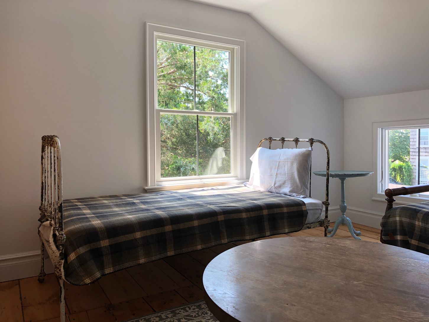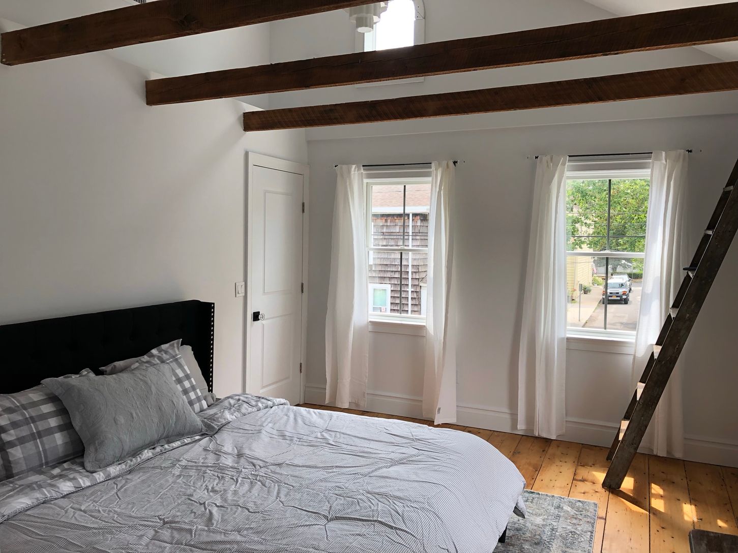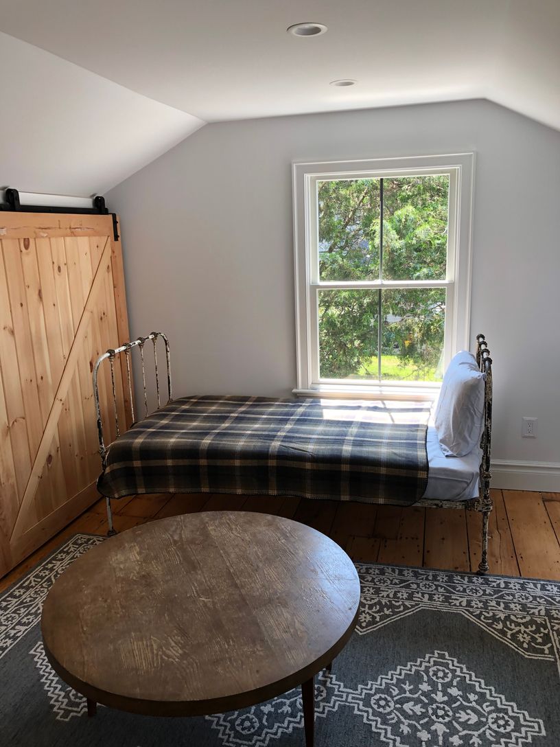 This loft like 2 bedroom 2 bath on the second floor of a newly renovated farmhouse is filled with sunlight. Apartment features spacious bedrooms, high ceilings, original details and a private entrance with foyer. Tucked away in the treetops of Greenport village close to LIRR, Hampton Jitney, and off street parking. Enjoy reading a book on the terrace and evenings dining outside overlooking the garden.