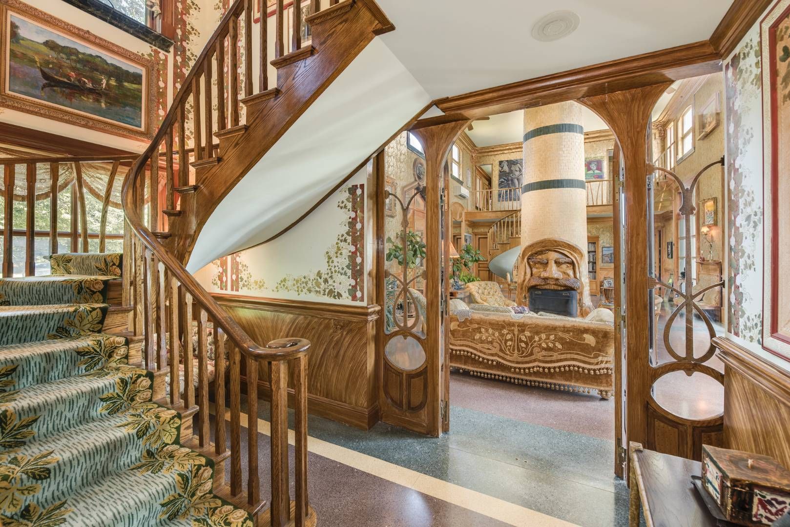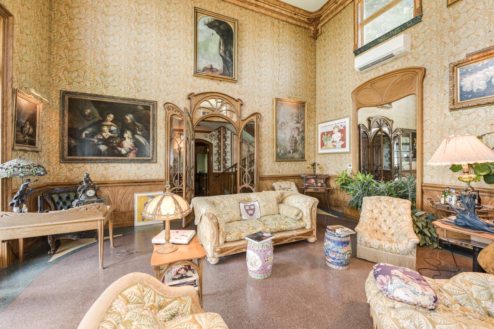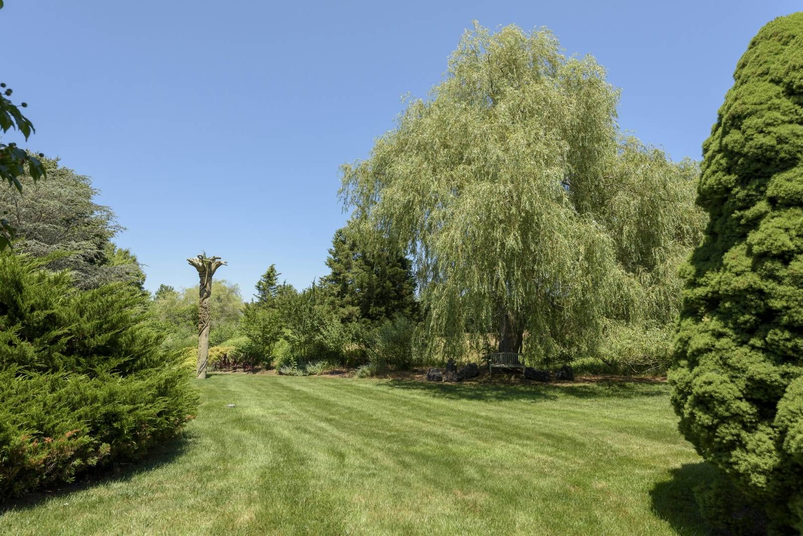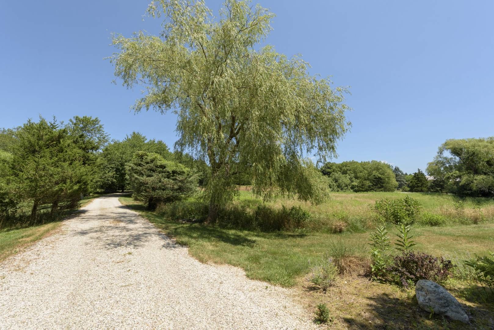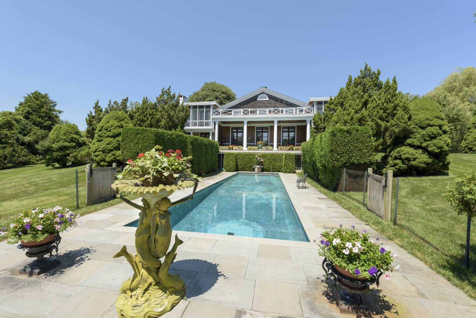 In a very private setting down a long driveway this just-shy 6 acre property in Bridgehampton's horse country presents a compelling opportunity. The property is far off the road, and enjoys wide open vistas, endless sky and views of a pond. Currently located here is an extraordinary home with classic Palladian exterior and sumptuous interiors in a romantic art nouveau French chateau style. The existing two story 3,944+/- sq. ft. home has five