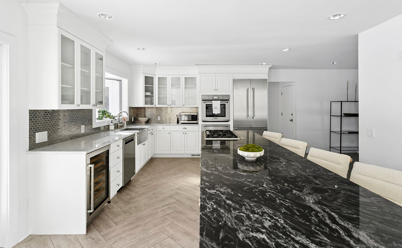 This fully renovated 5 bedroom, 6.5 bathroom contemporary residence is a Southampton showplace ready for effortless relaxation and lively entertaining on a private, nearly 1 acre lot. Enjoy plenty of room for friends and family in this 4,000-square-foot home featuring sleek modern design, magnificent natural light and lush outdoor views. The double-height foyer makes a dramatic first impression, while ahead, the spectacular great room features