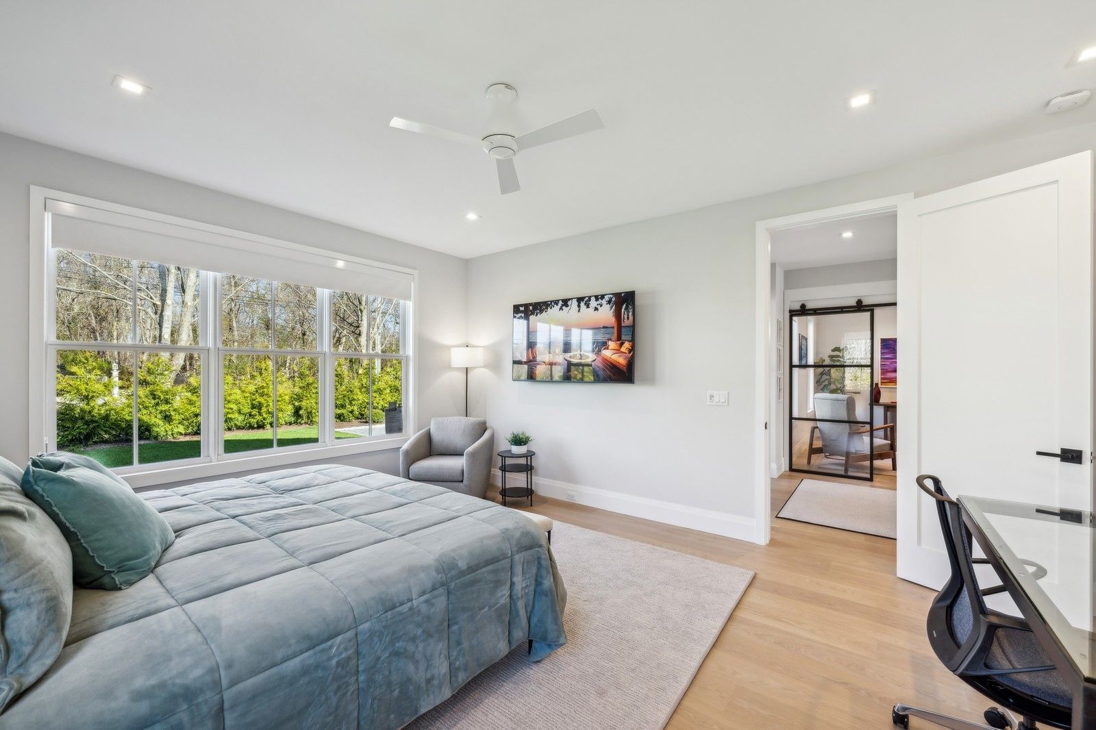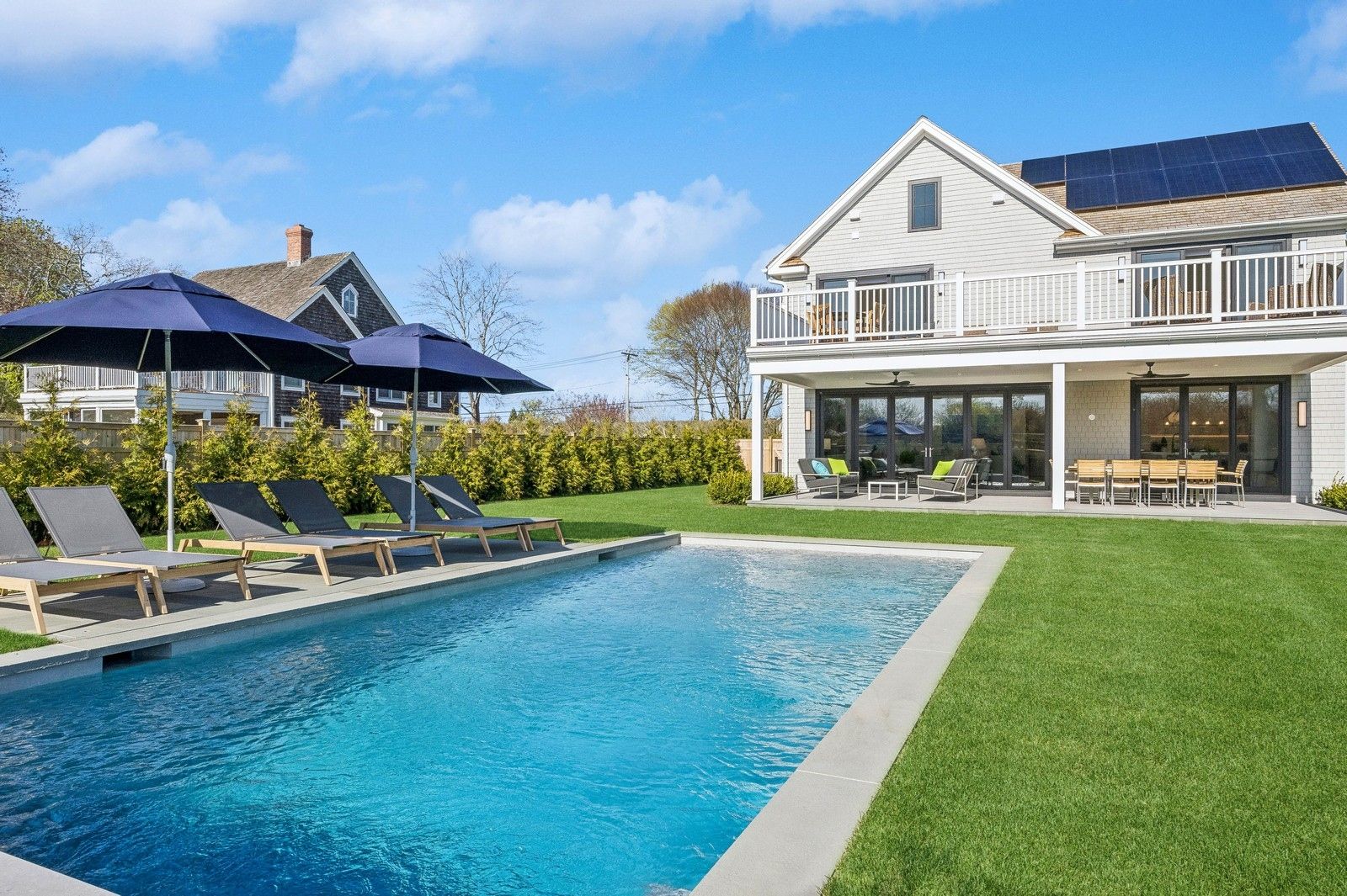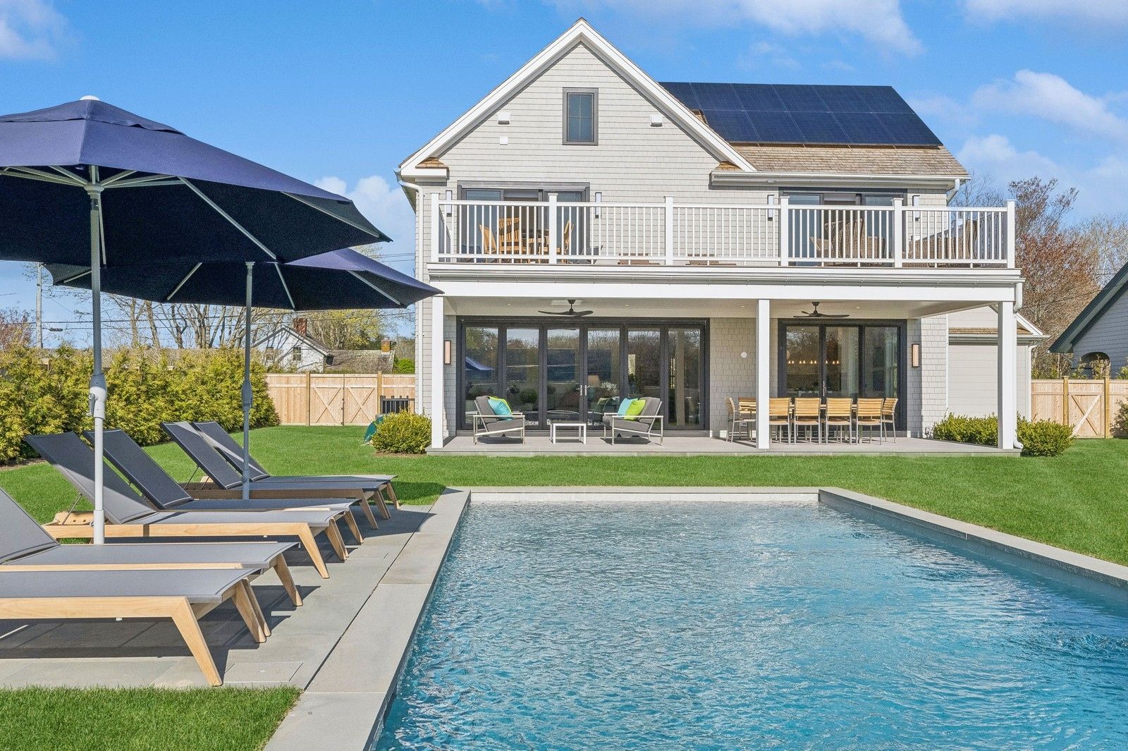 Welcome to this exquisite new construction home in Bridgehampton, NY, seamlessly blending modern and traditional styles. Boasting 6 bedrooms with en-suite baths, a den, open living spaces, and a finished basement with entertainment options, this home offers luxury at every turn. Outdoors, enjoy a bright backyard with a heated gunite pool and a spacious covered patio. Upstairs, find a giant deck off the primary suite and another guest suite, ea