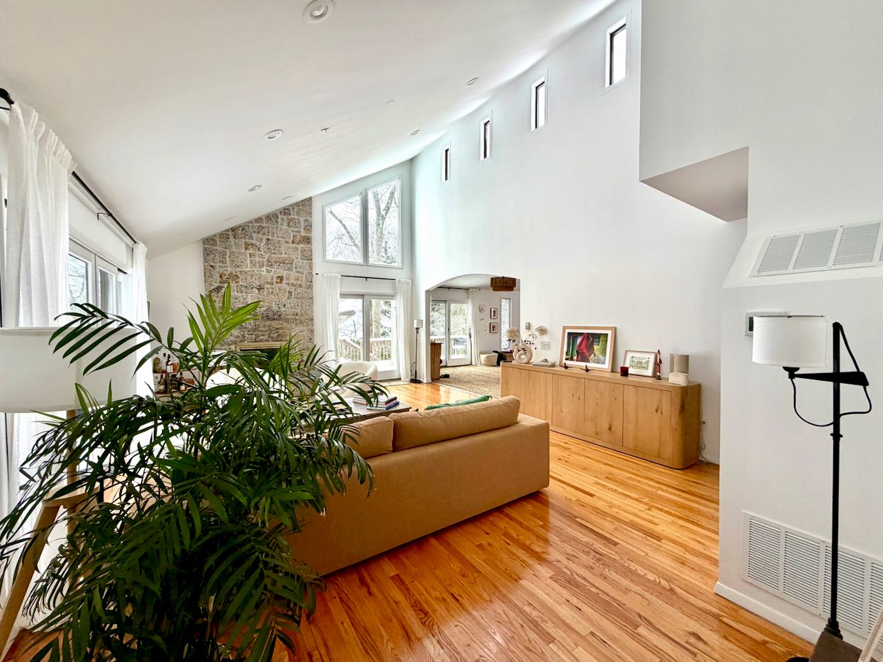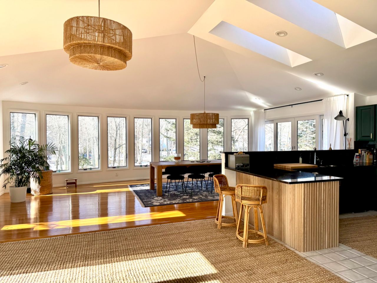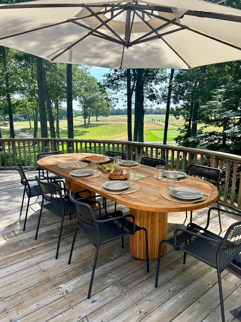 This lovely home is situated on almost and acre of land overlooking the fairways of Gardiner’s Bay Country Club. Four bedrooms, 3 full baths, 30’ x 15’ swimming pool, and expansive decks. A chef’s kitchen with stone countertops that opens to a large light filled dining and family room. The living room has a vaulted ceiling with a stone fireplace. The lower level has an ensuite bedroom and living space with private walk out. Close to public bea