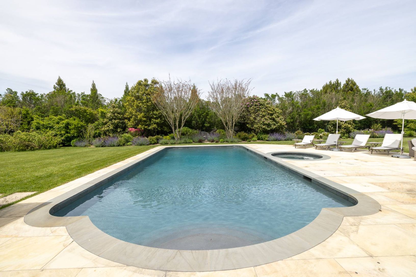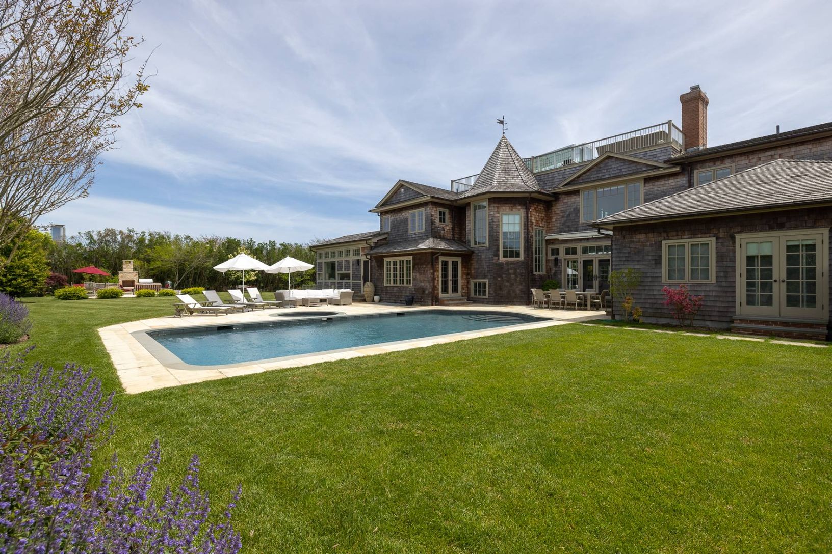 Be the first to rent this Designers own completely renovated residence in Sagaponack south, just steps to the finest ocean beaches. Spacious and light filled with seven en-suite bedrooms, seven full and two half bathrooms sited on.94+/- acre and boasts incredible ocean views, farmfield views and glorious gardens. There is living room with fireplace, formal dining room, chefs kitchen with Taj Mahal Quartzite island and countertops, Gaggenau app