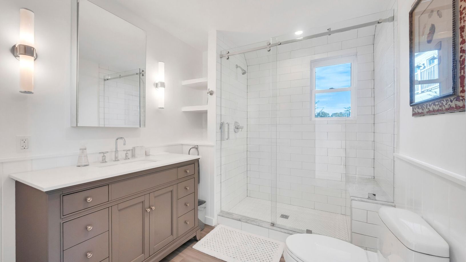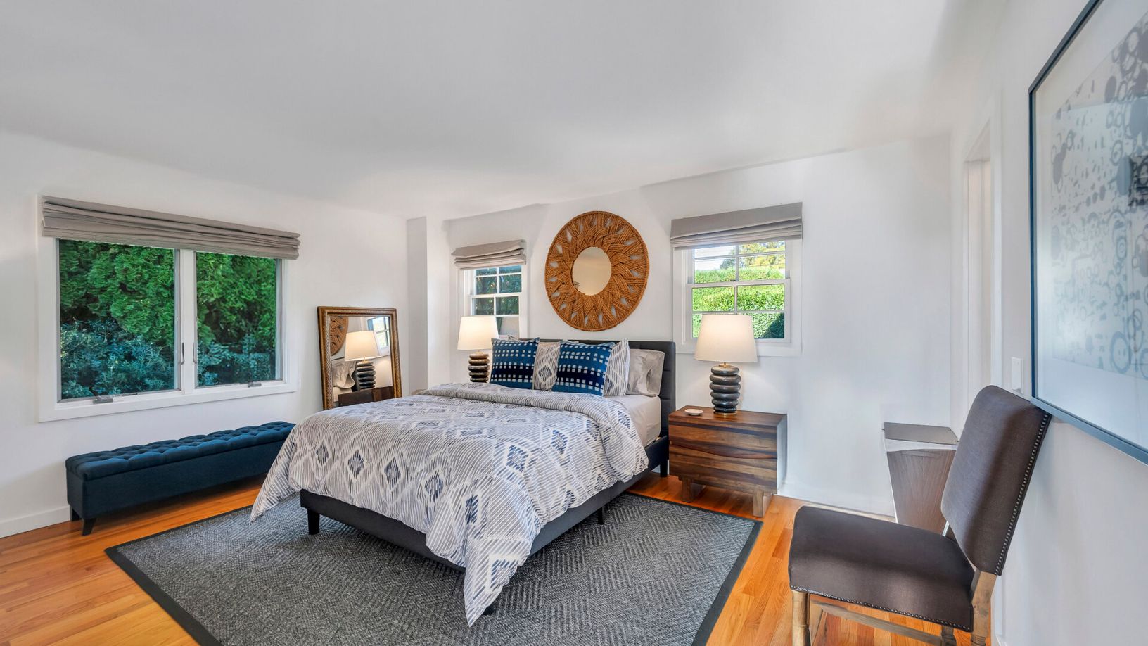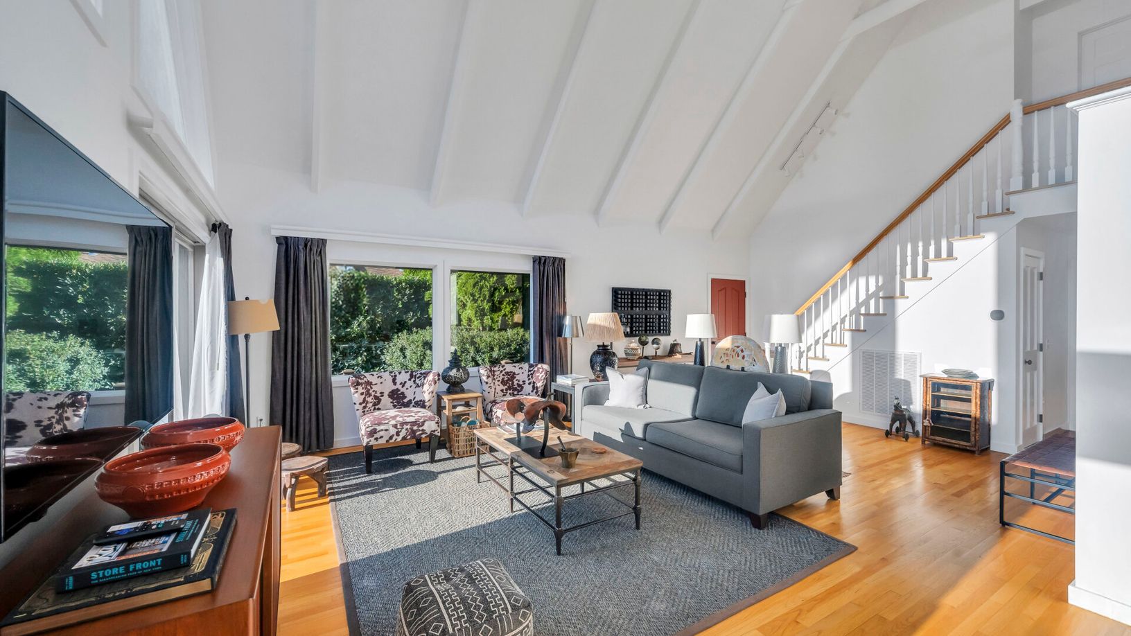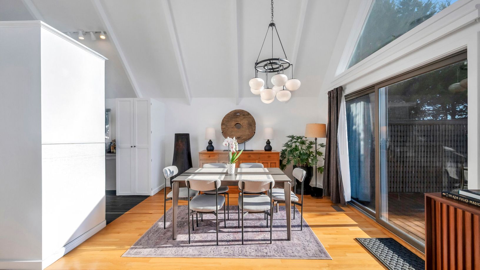 South of the highway, nestled along quiet serene shores , this newly renovated 2-bedroom, 2-bathroom cottage offers an unparalleled blend of modern luxury and quaint charm. With its soaring vaulted ceilings, expansive waterfront windows, and chic curated int