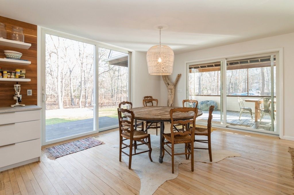 Conveniently located half a mile to Fresh Pond Beach in Amagansett and just minutes to shops and restaurants in the village, this home checks many boxes and is being offered to rent for the first time. This contemporary four bedroom home has been newly renovated with an open layout and plenty of natural light. The first floor features an expansive living room, fully equipped chefs kitchen, den or office space with TV and wood burning fireplace