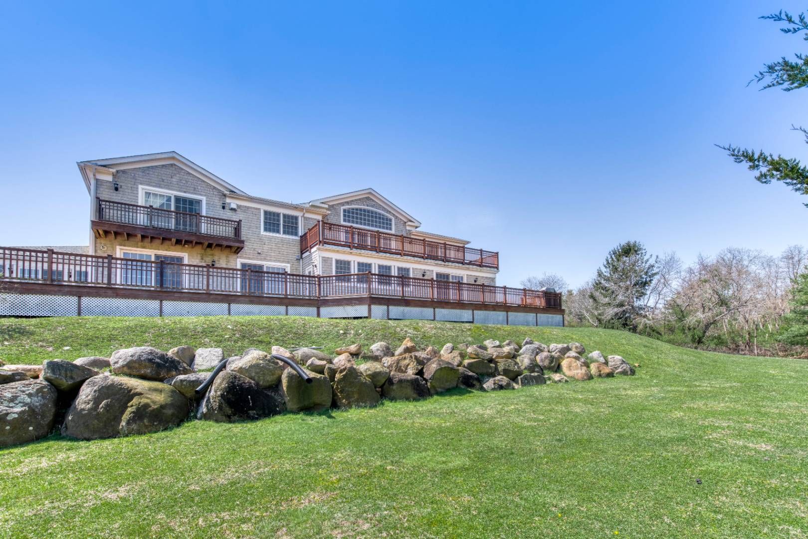 Breathtaking views abound from this beautiful custom 6,700+/- SF postmodern cedar shingled home. Masterful construction includes a grand entrance foyer with sweeping staircase that flows into the gracious living room, dining room with fireplace and custom kitchen. The first floor also has a library, adjoining office/game room, two en-suite bedrooms, one extra bathroom and a powder room. The second floor includes a master suite with private dec