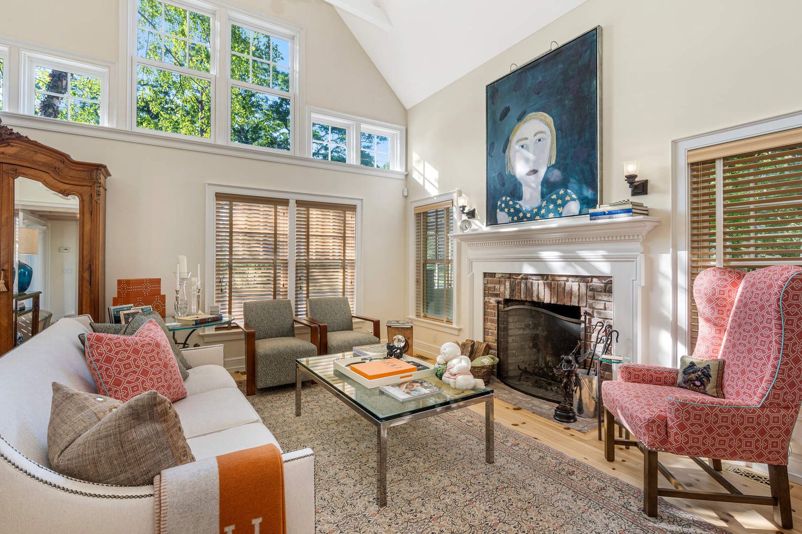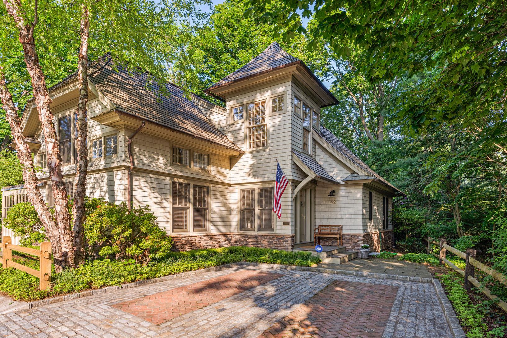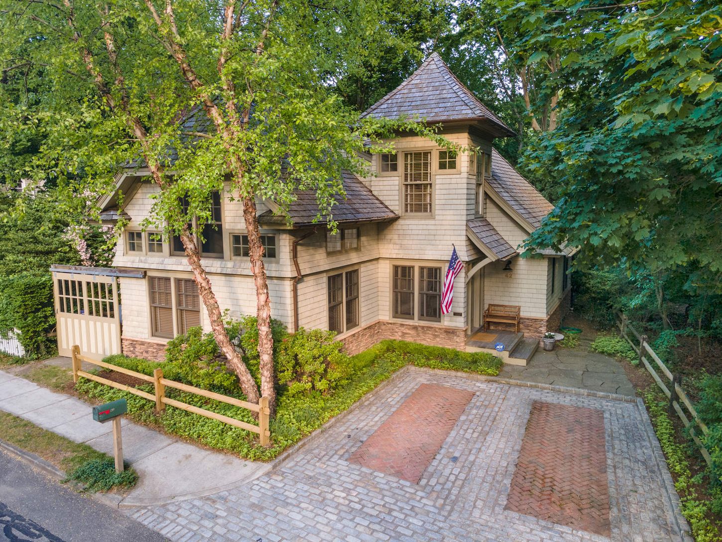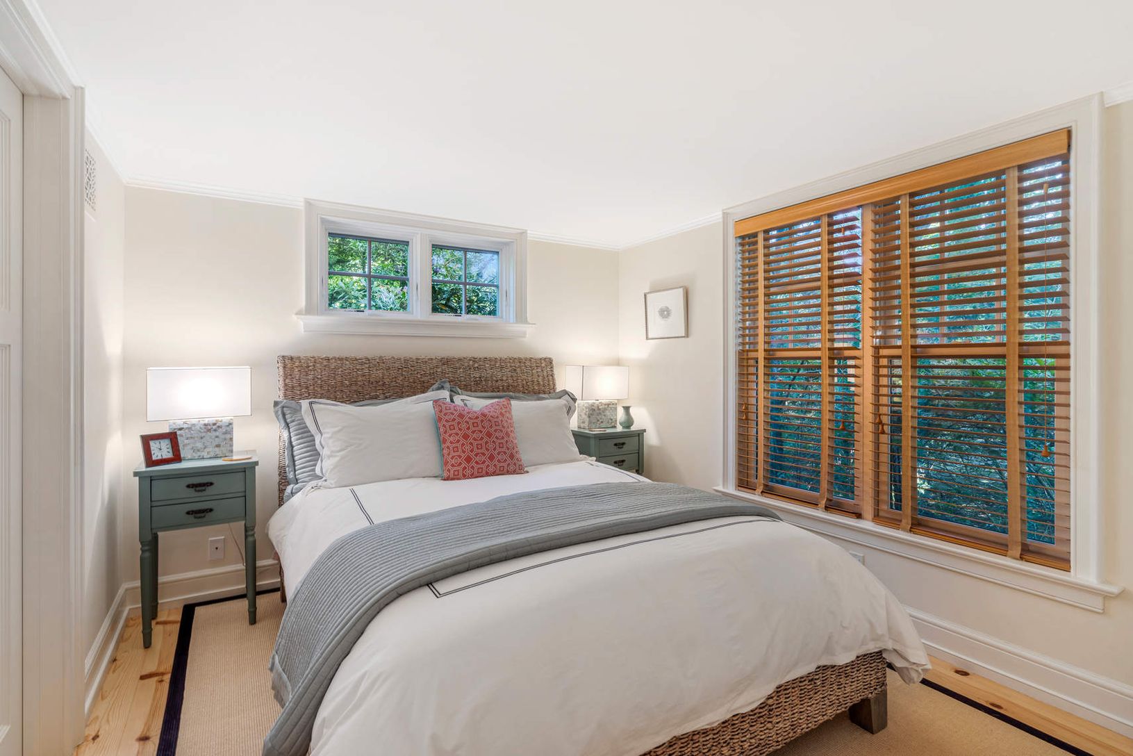 Charming Otter Pond Cottage!! Built in 2009, this Francis Fleetwood designed charming stacked stone and shingle cottage is situated across the street from Sag Harbor's Otter Pond and Park with serene water views. The house with built-in cabinetry: pantry, closets, dressers--nautically inspired with a possibility of a pool. Proper entry hall opens to a double-height cathedral ceiling living room with clear cedar plank and beam details, and fire