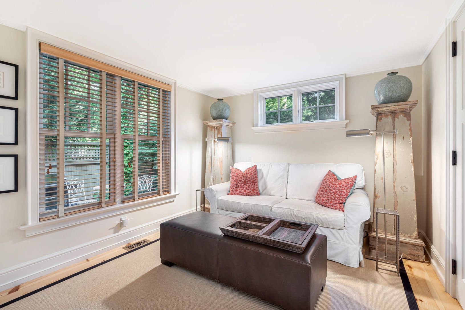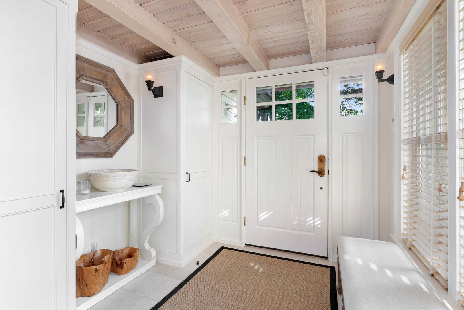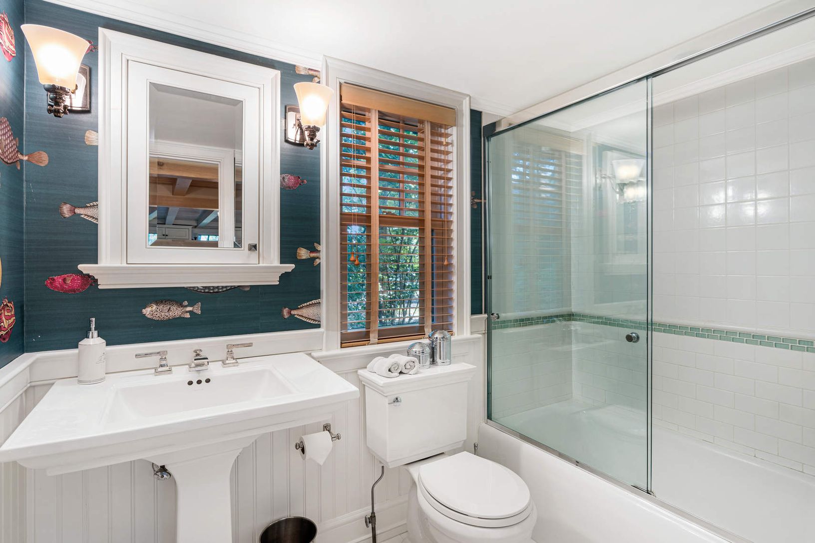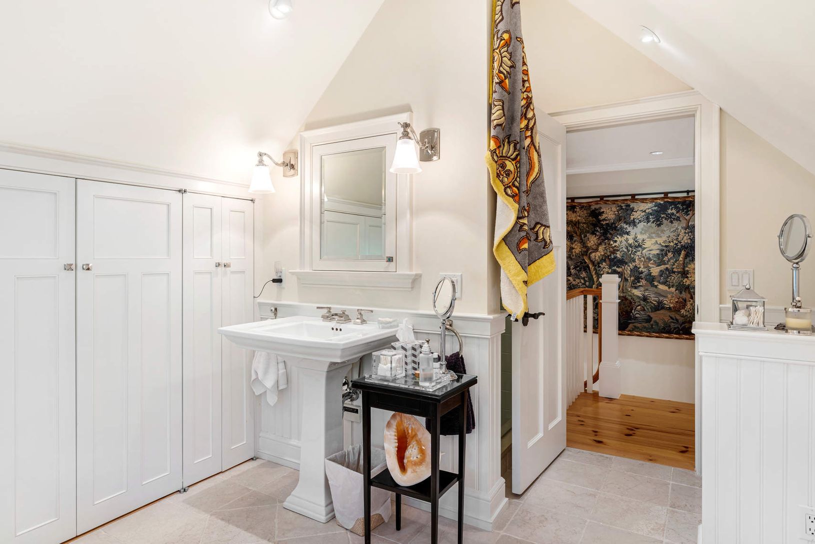 Charming Otter Pond Cottage!! Built in 2009, this Francis Fleetwood designed charming stacked stone and shingle cottage is situated across the street from Sag Harbor's Otter Pond and Park with serene water views. The house with built-in cabinetry: pantry, closets, dressers--nautically inspired with a possibility of a pool. Proper entry hall opens to a double-height cathedral ceiling living room with clear cedar plank and beam details, and fire