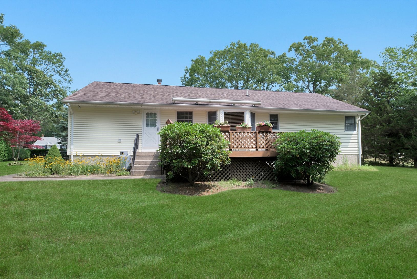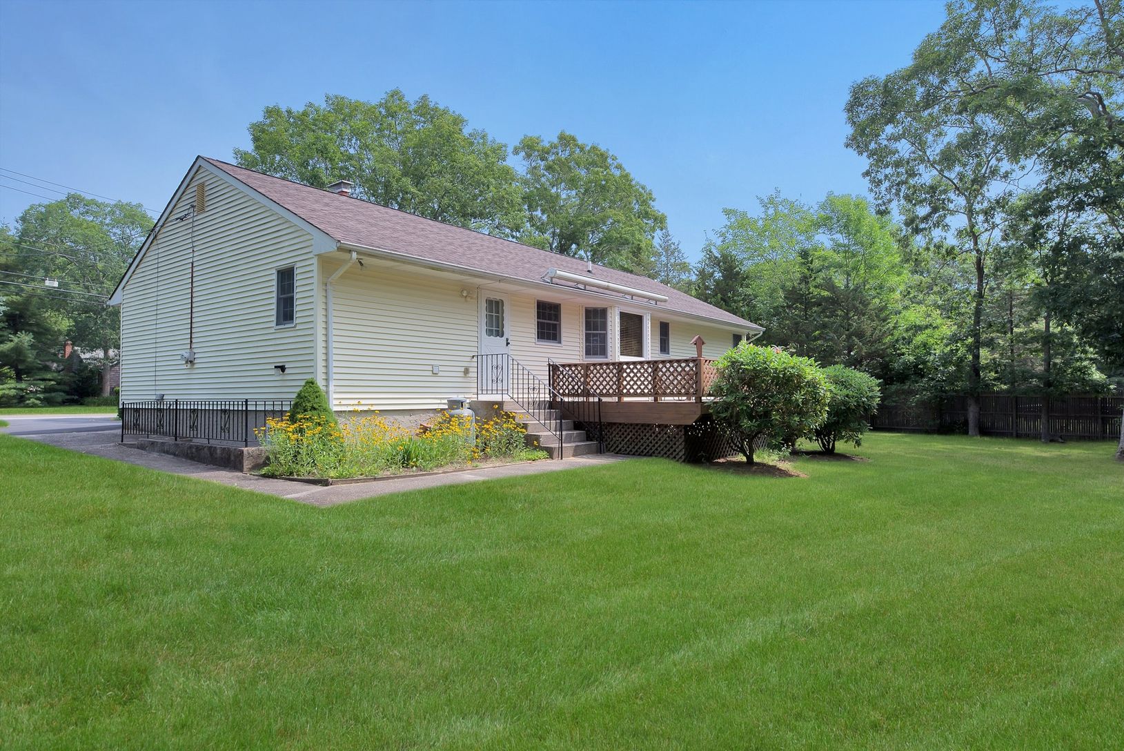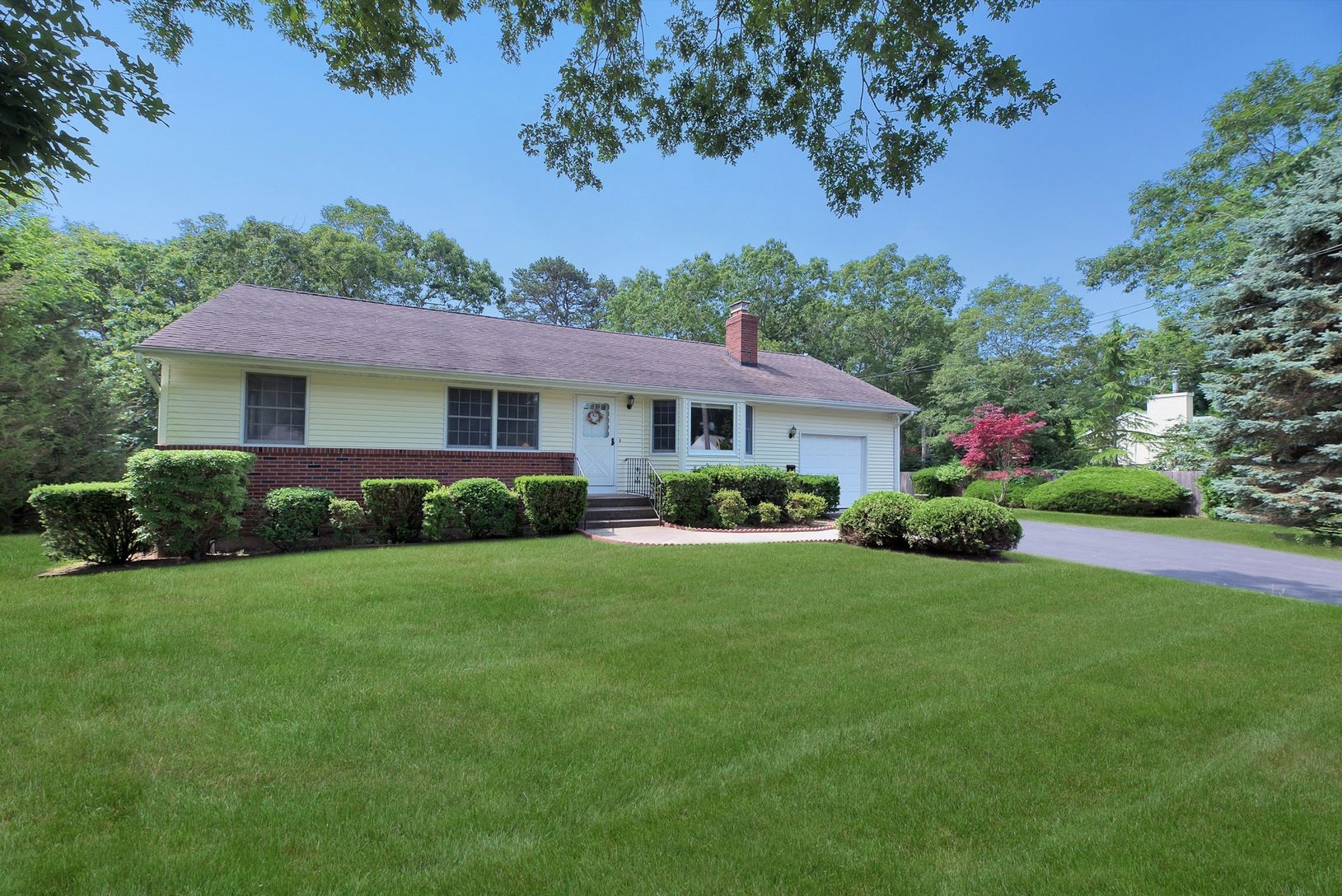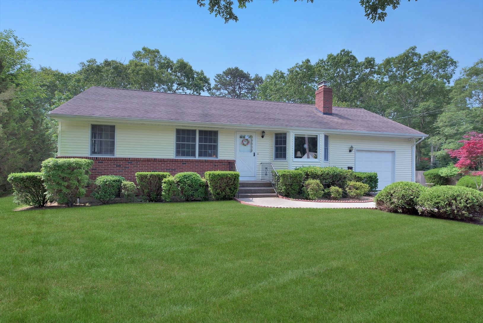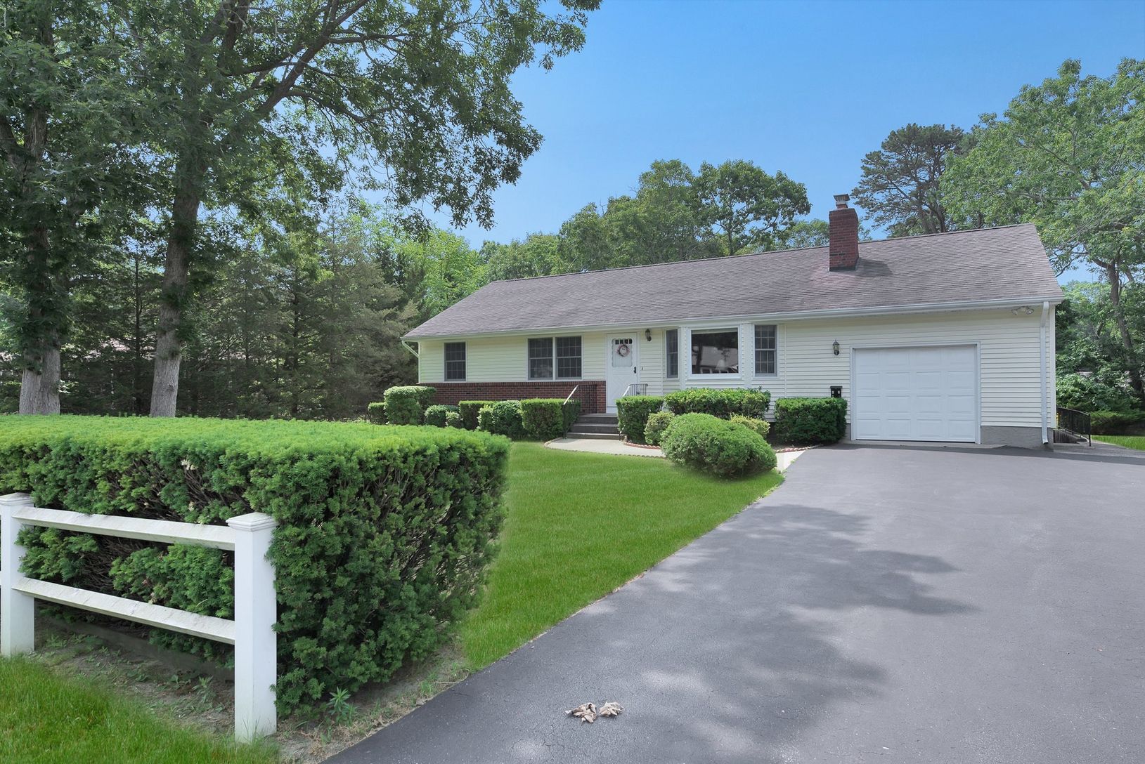 Well Kept updated Ranch, south of the highway, with up to date kitchen and open floor plan.Back deck with motorized retractable awning looks out to a spacious yard with room for a pool. Full Basement and garage gives this property all the right basics for year round or seasonal living. Very private setting with convenient location for beaches, shopping, transportation and schools